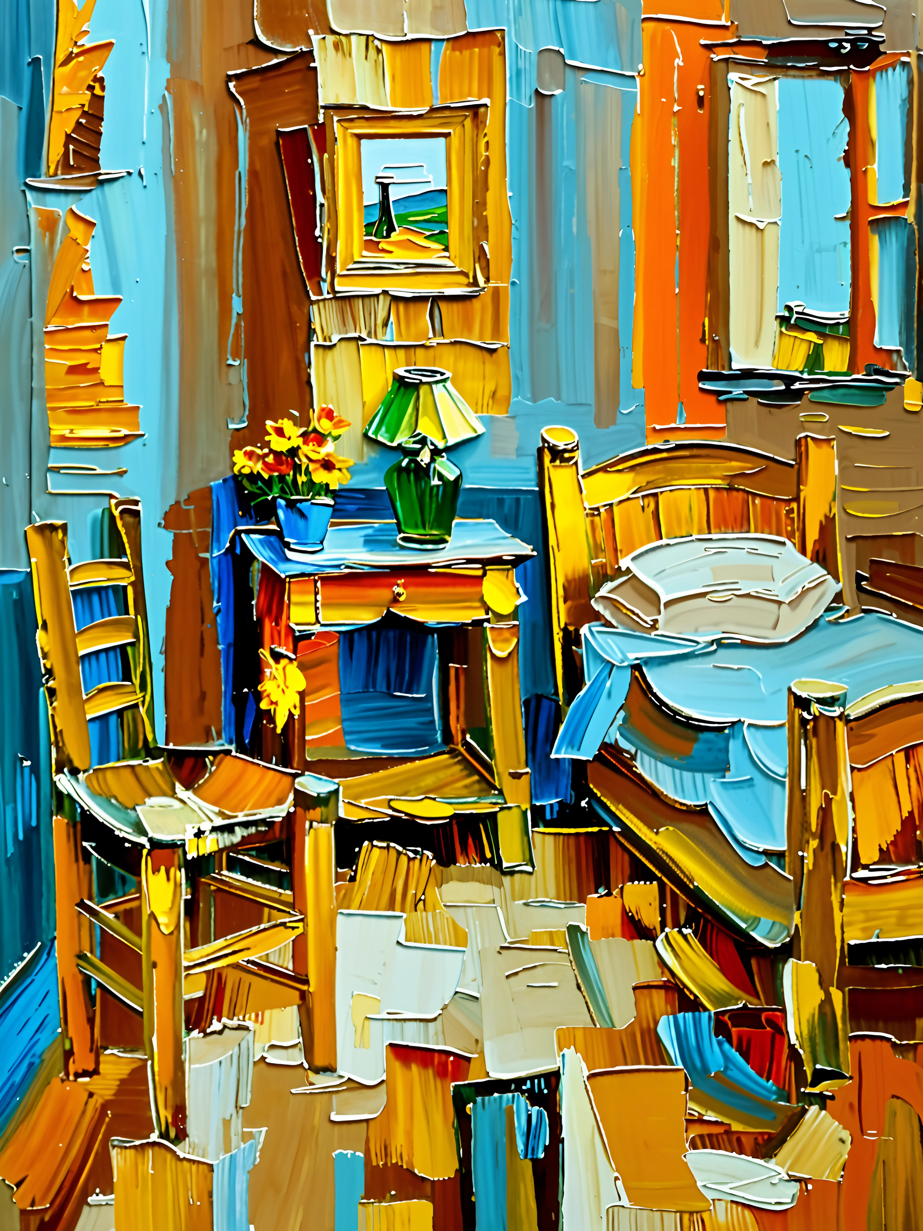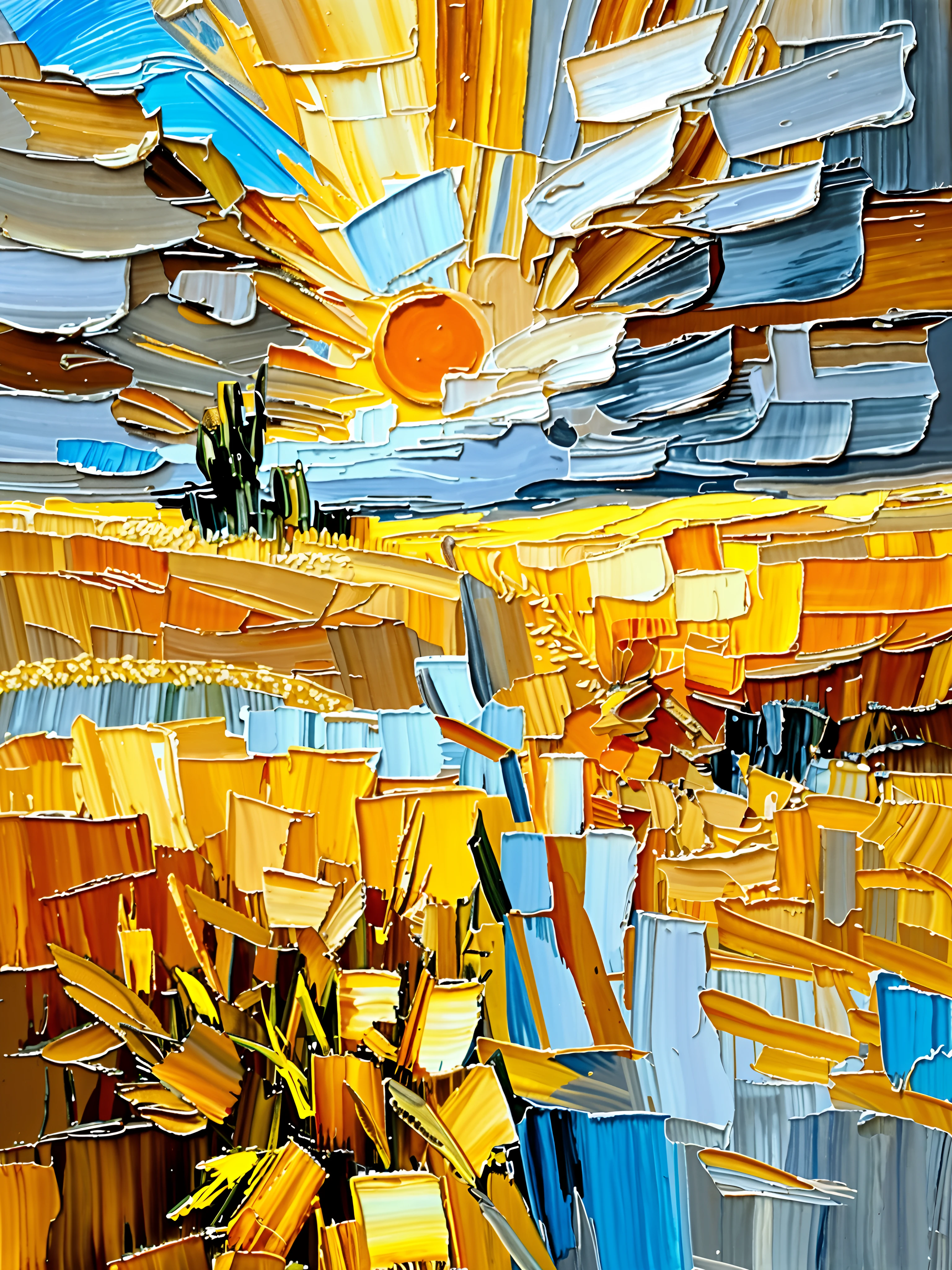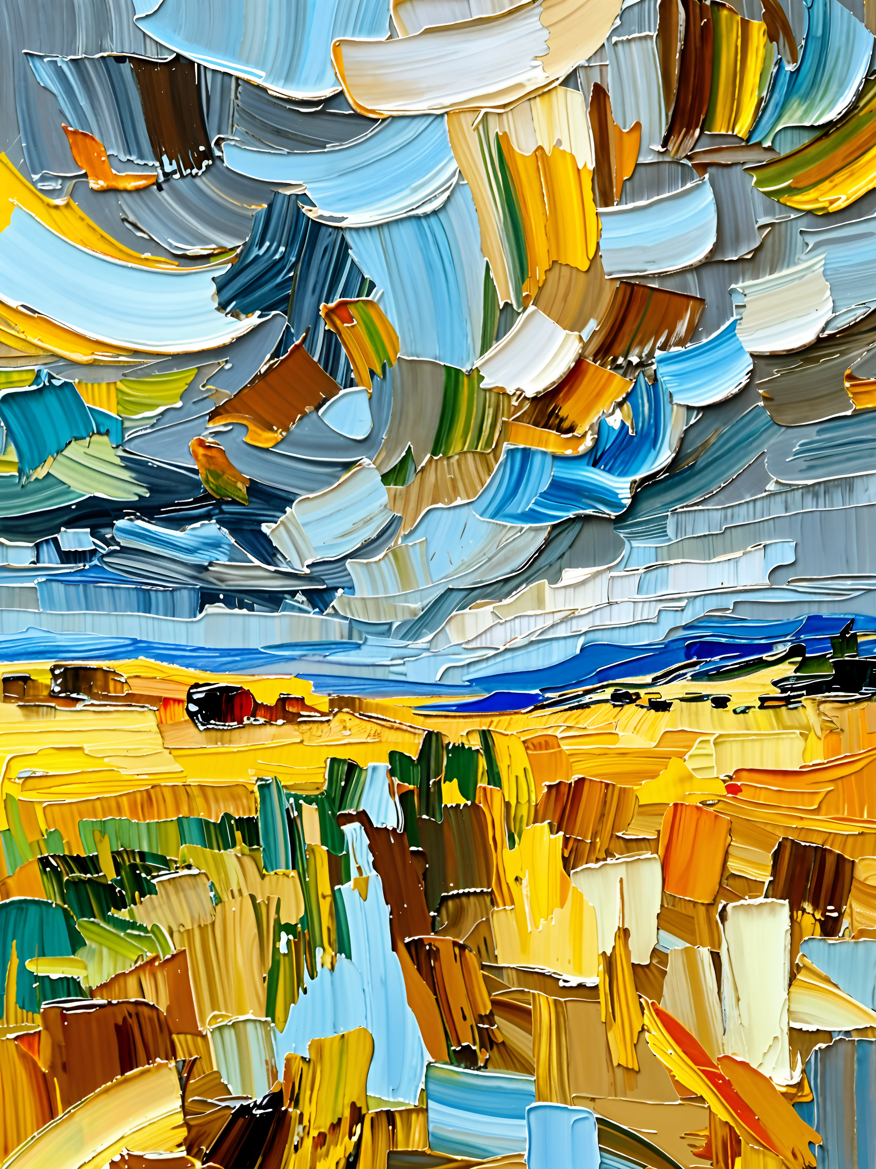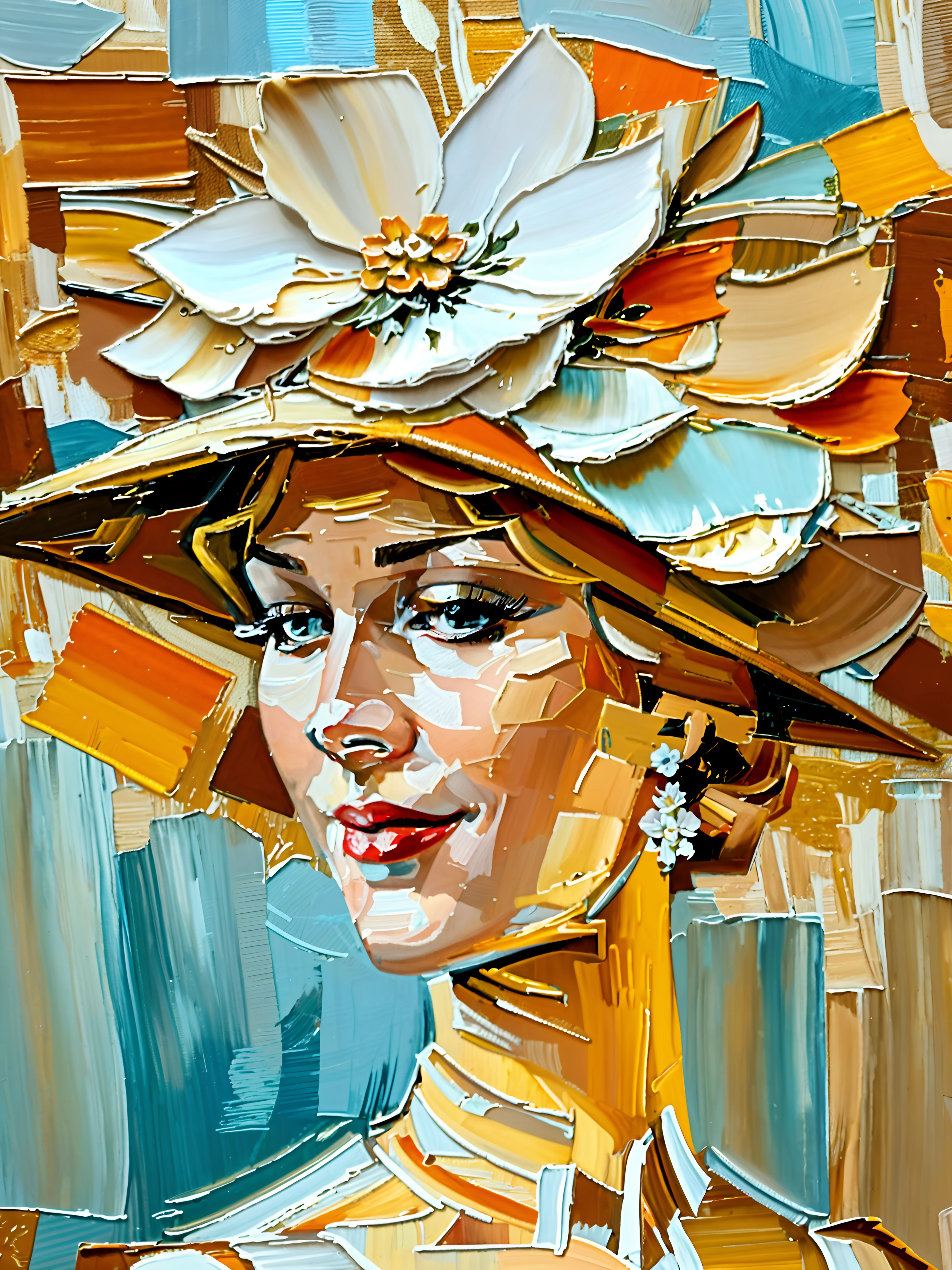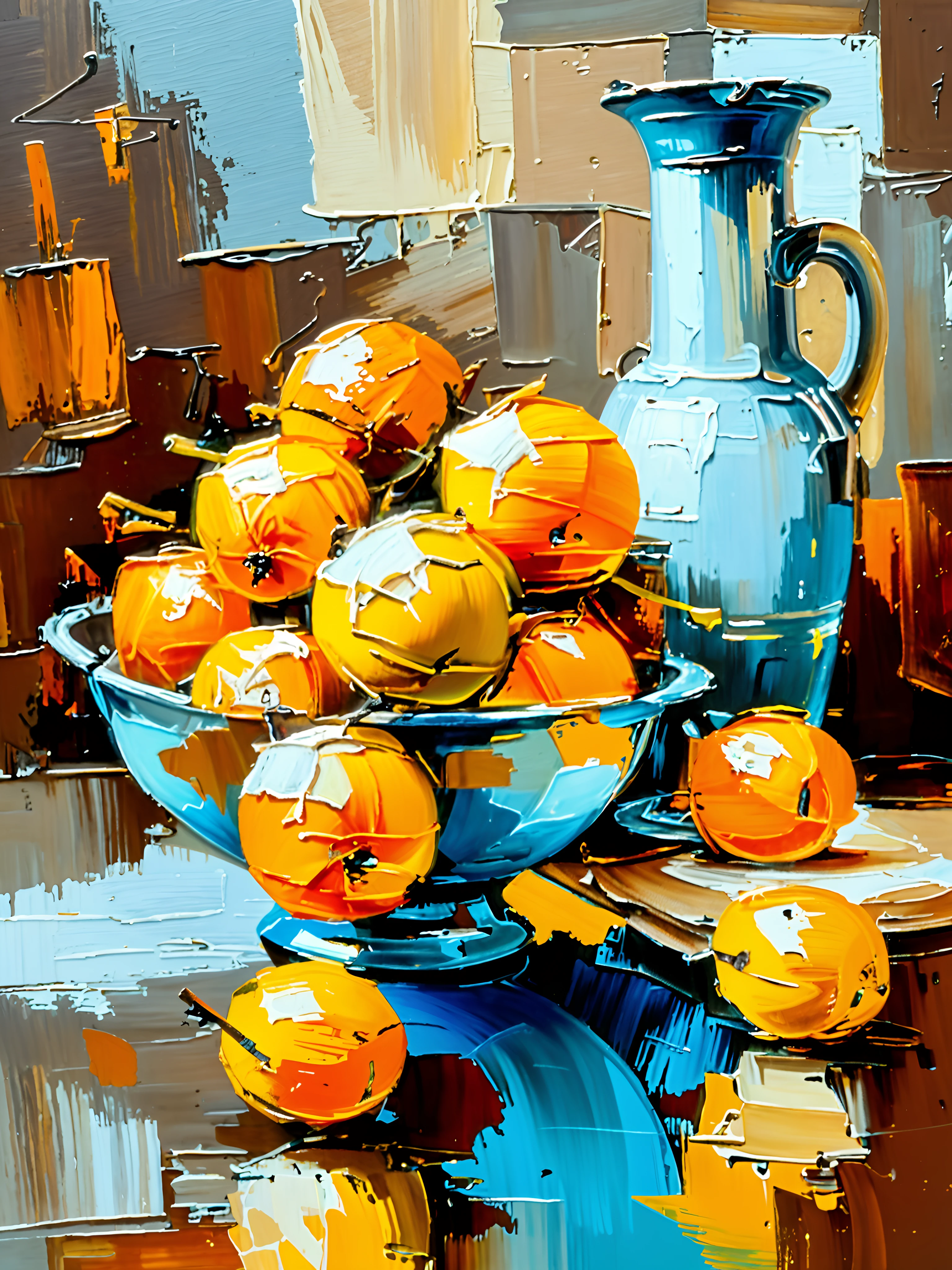 Oilpainting,<subject description>, ((canvas texture)), ((Strong texture)), detail,Light aqua, Gold, White, Subtle shades of orange and brown,vibrant colors, lifelike colors