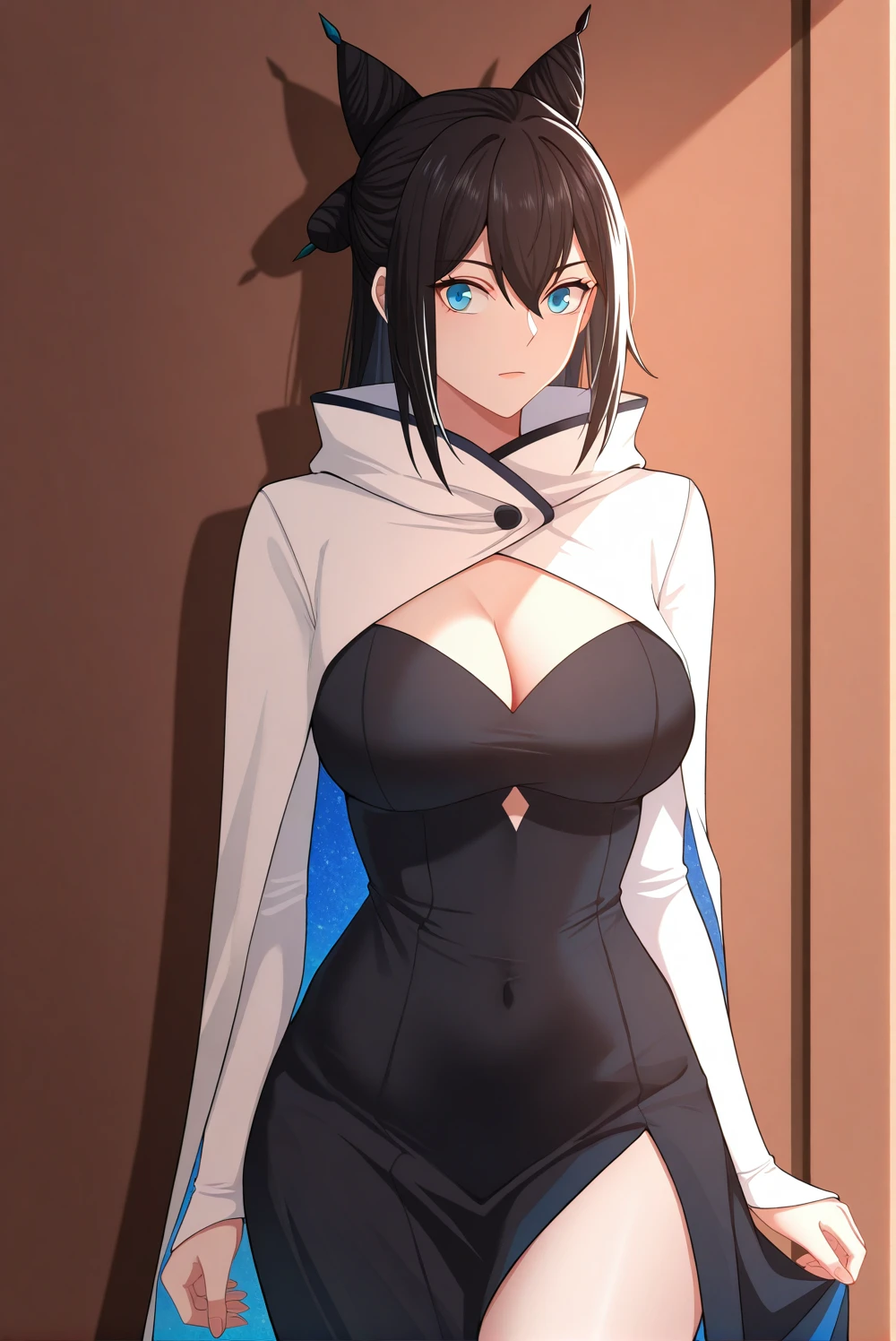 final outfit, black outfit, - gives more consistence if you focus on the outfit, cloak and cape keyword helps.