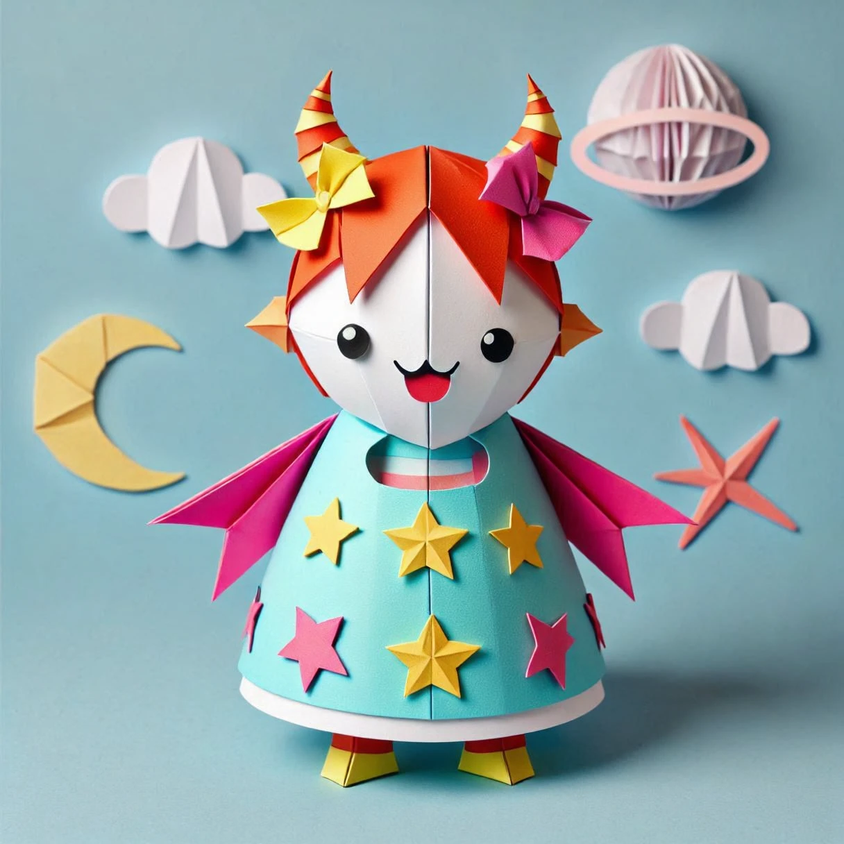 Other trigger words : crafted, origami, paper, made of (color) paper