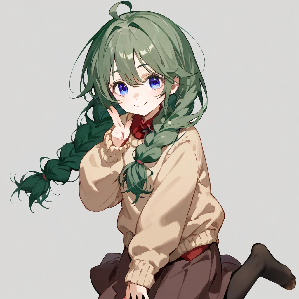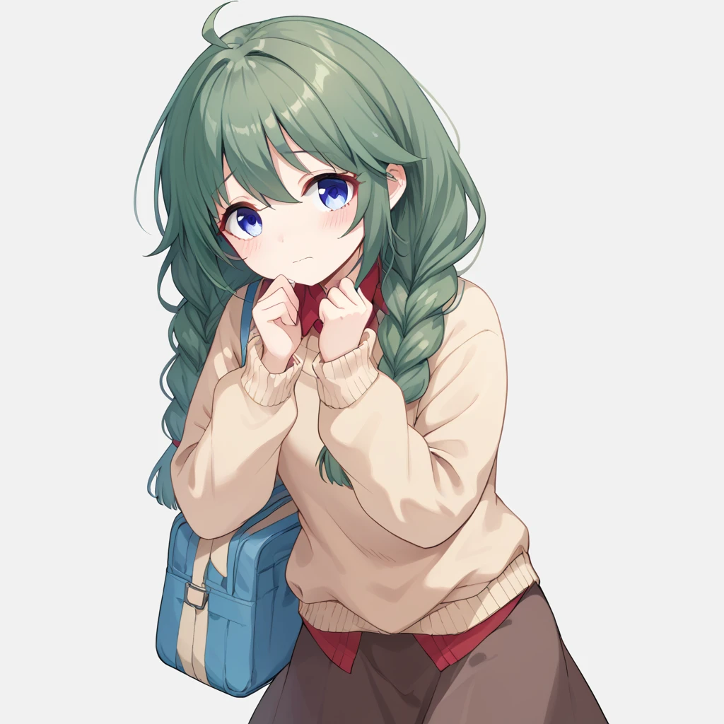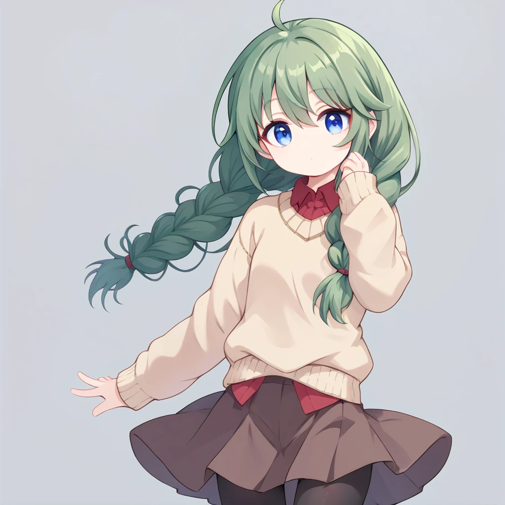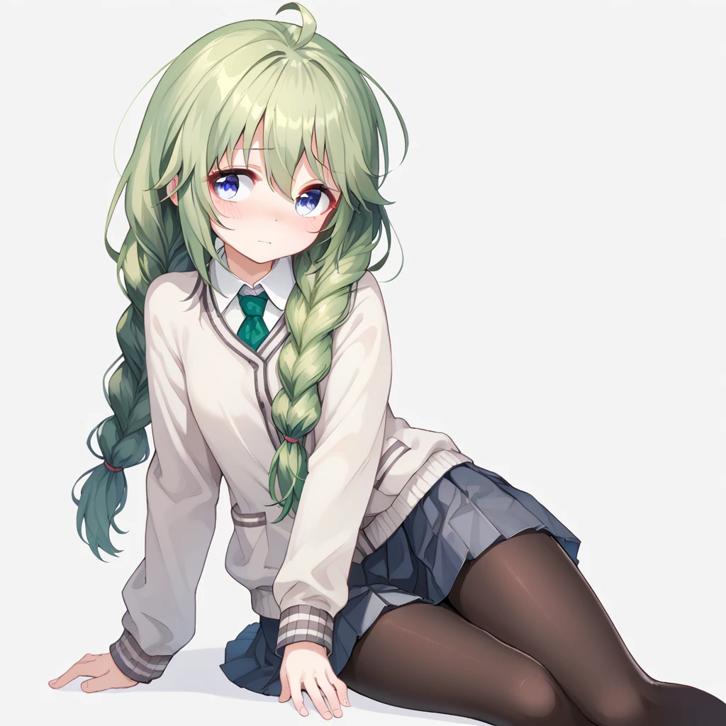 shingyoji yuni, green hair, blue eyes, braids, ahoge