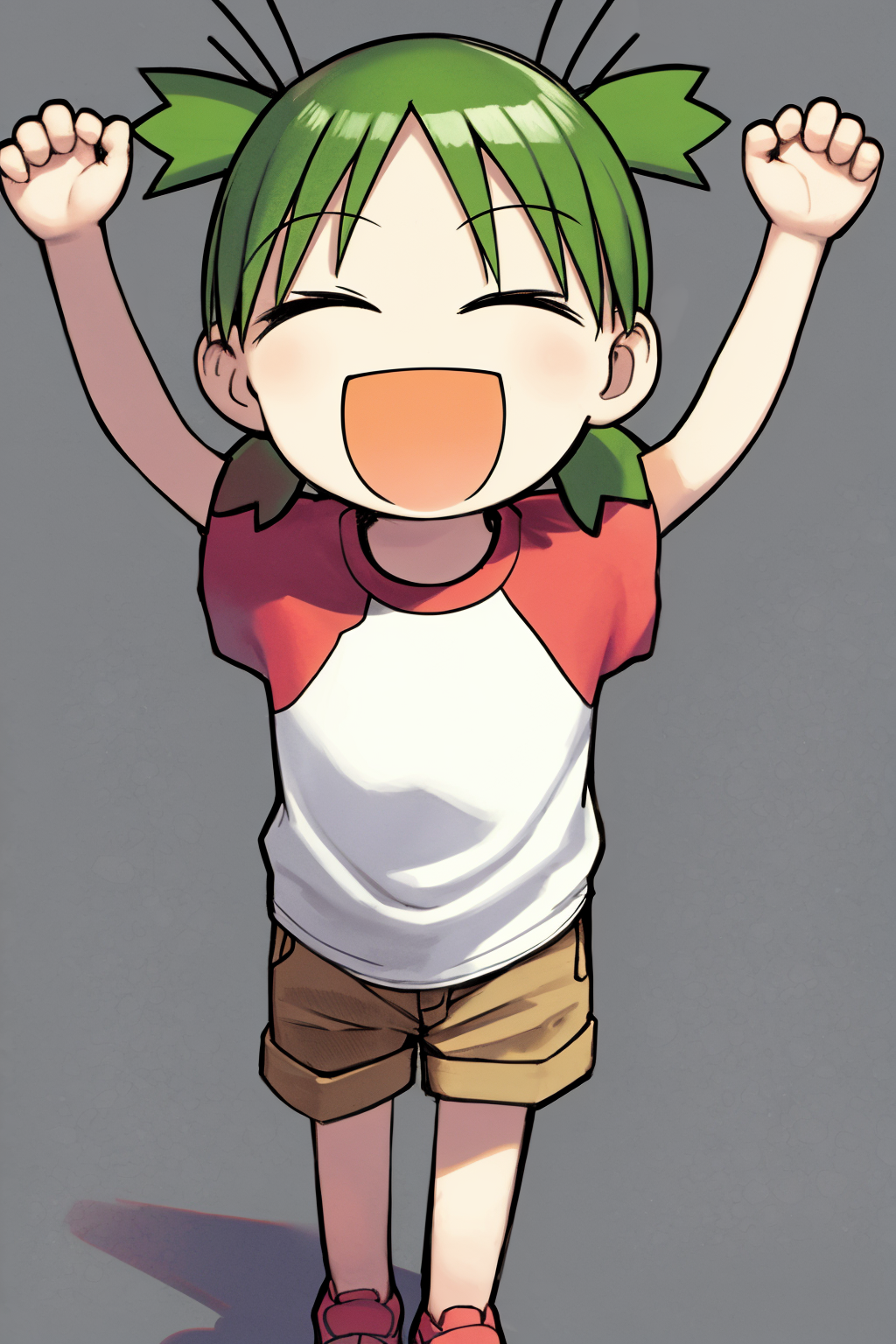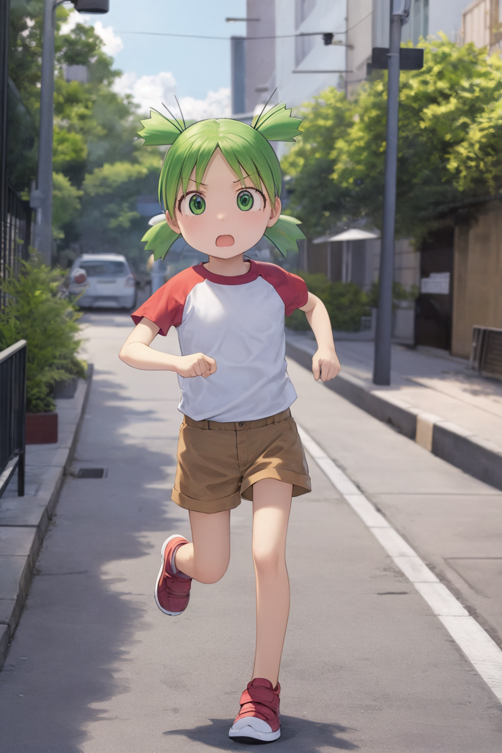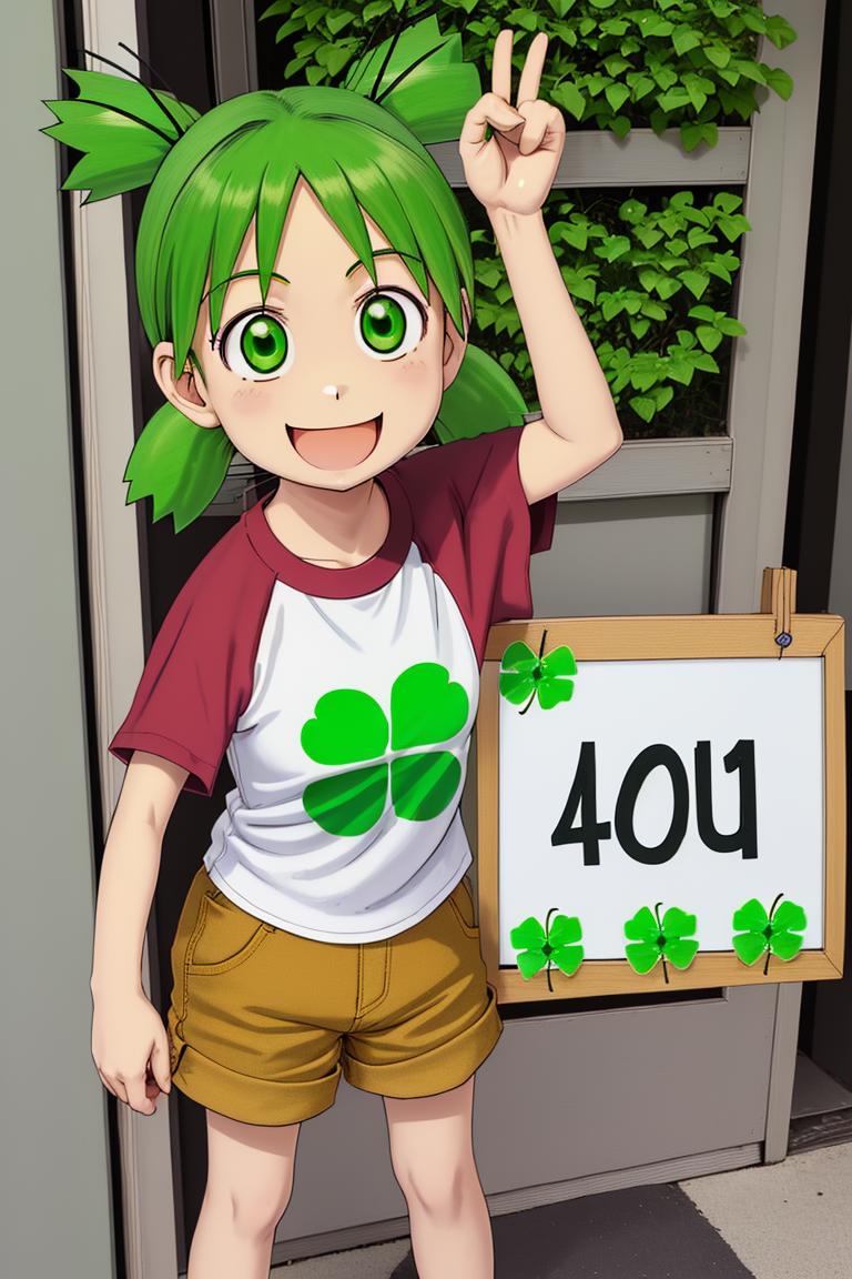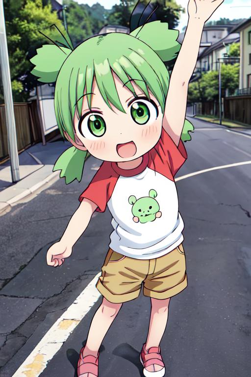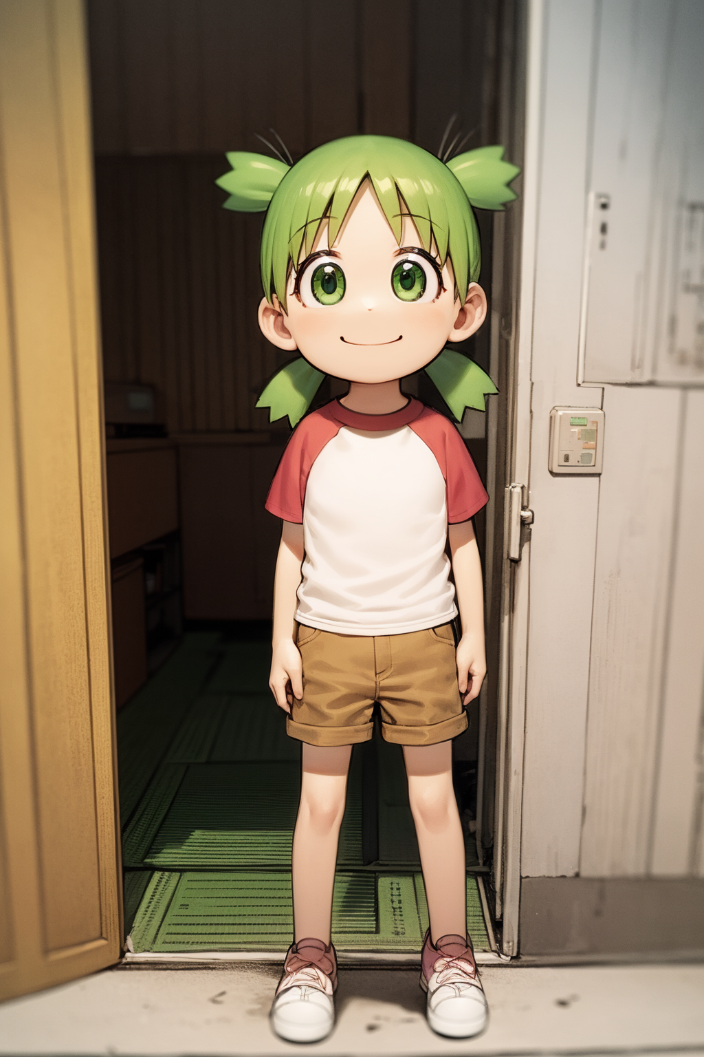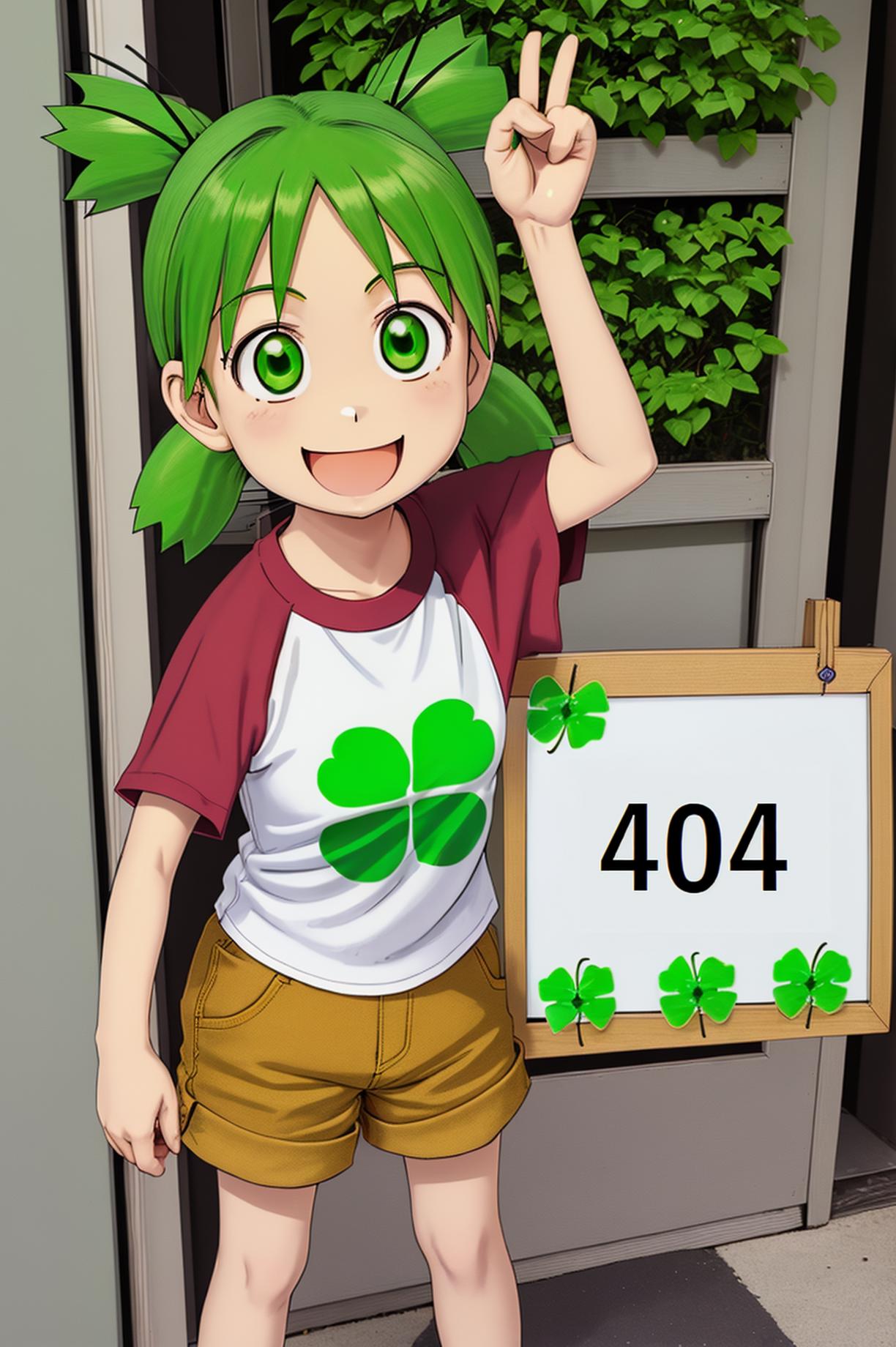 Other prompts : 1girl, green hair, quad tails, green eyes, raglan sleeves, shorts