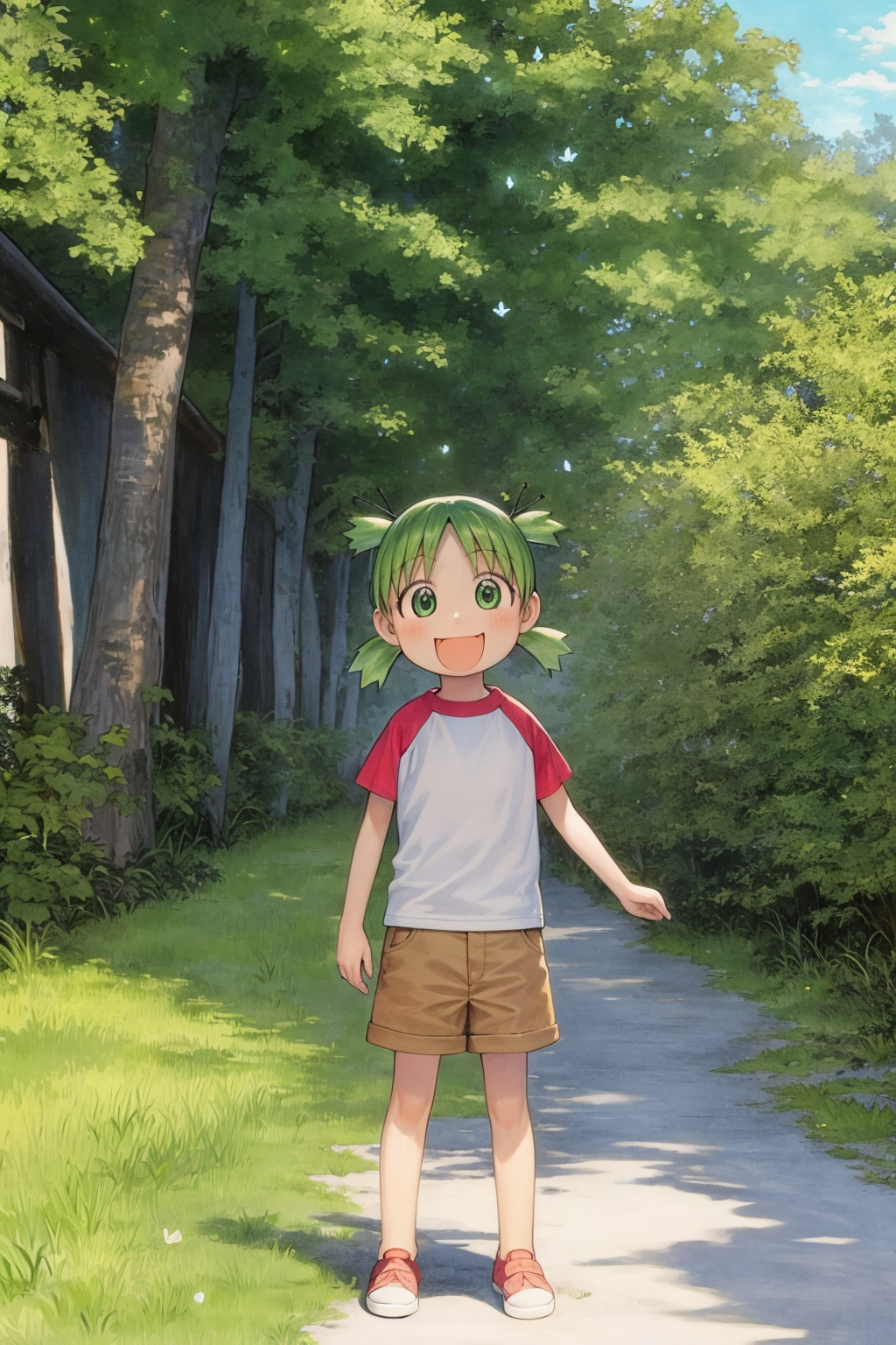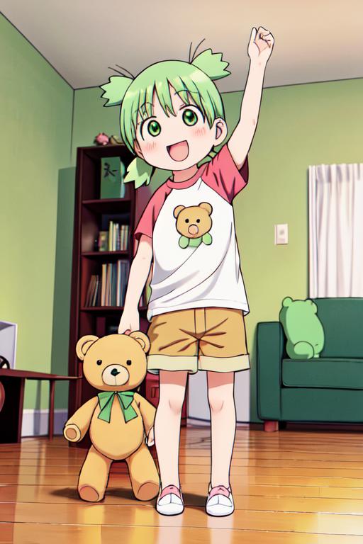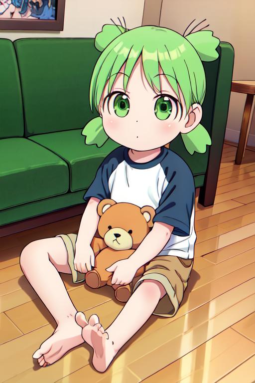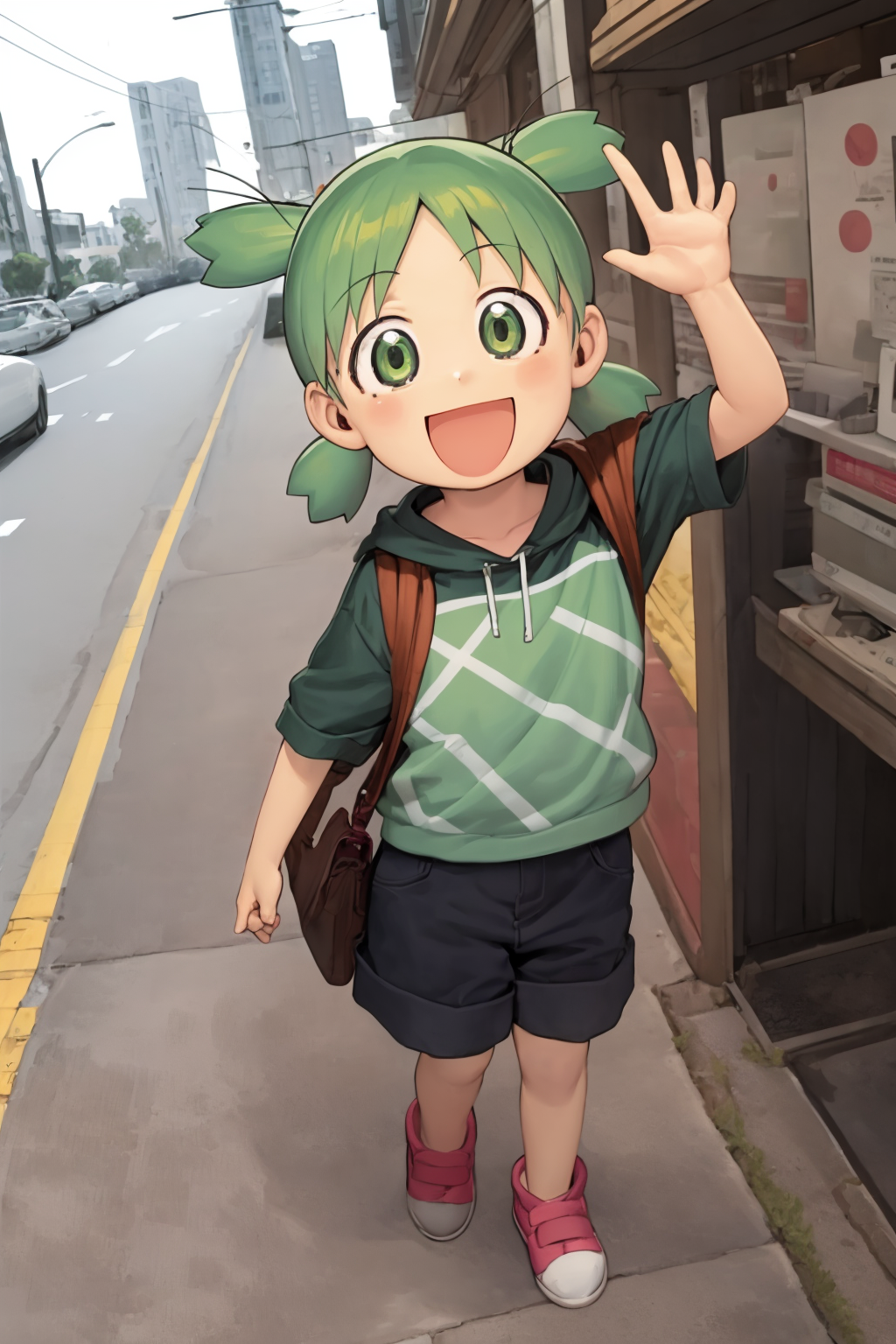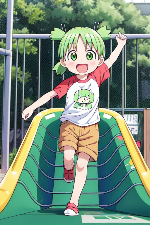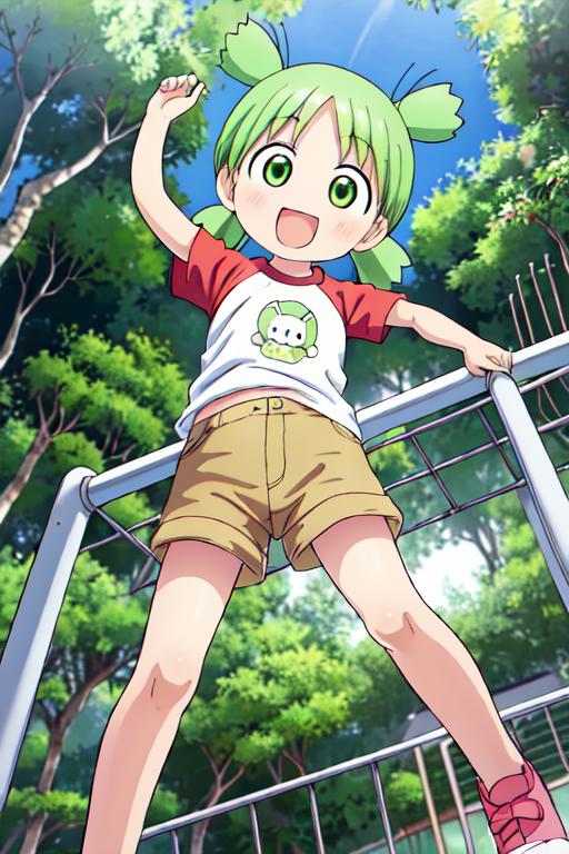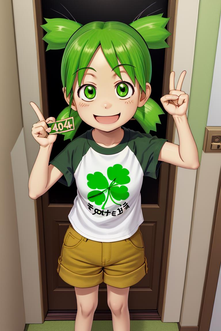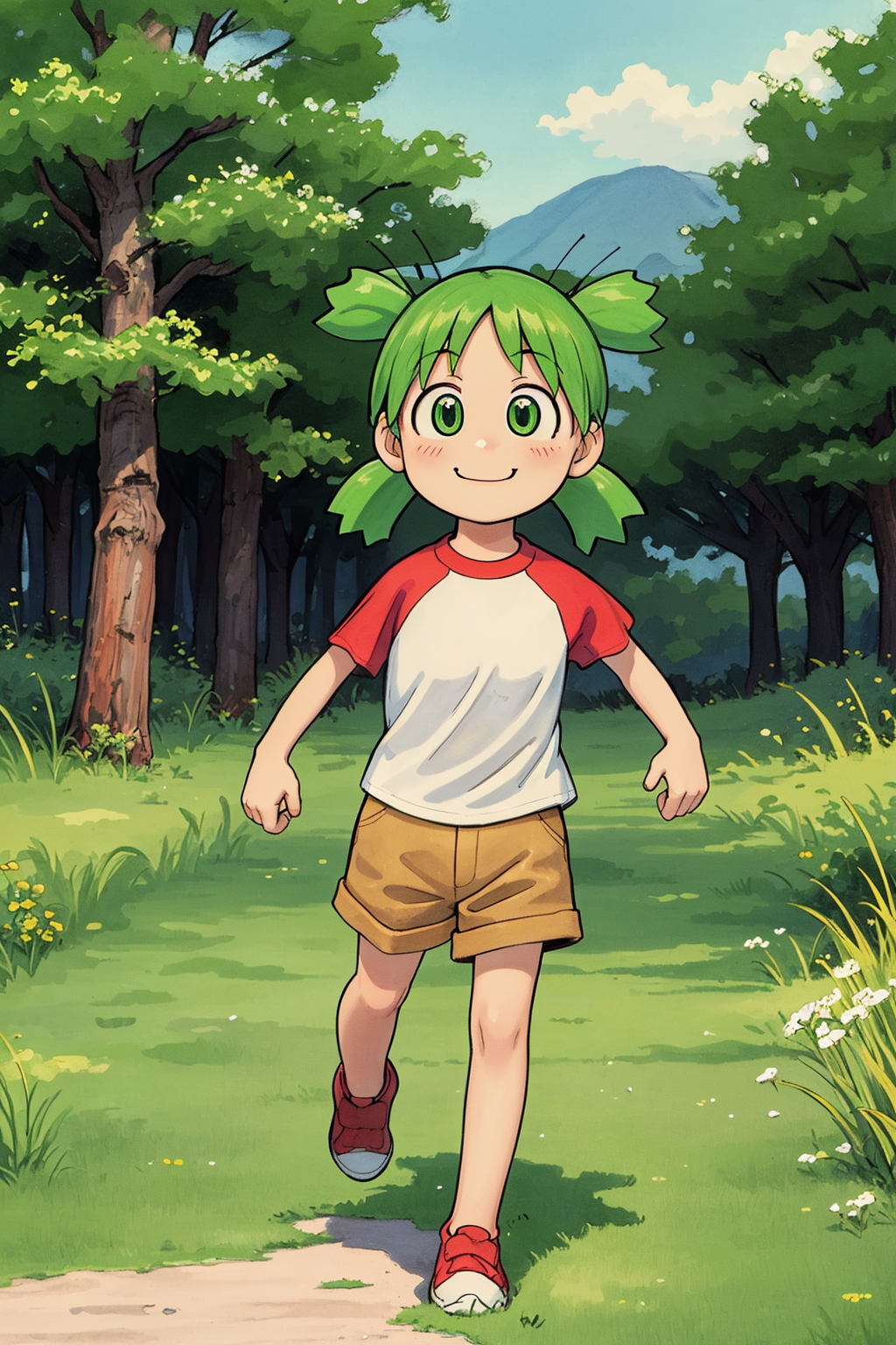 Other prompts : 1girl, green hair, quad tails, green eyes, raglan sleeves, shorts