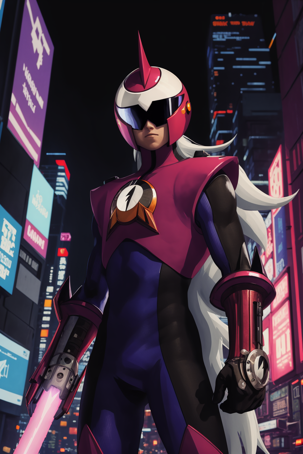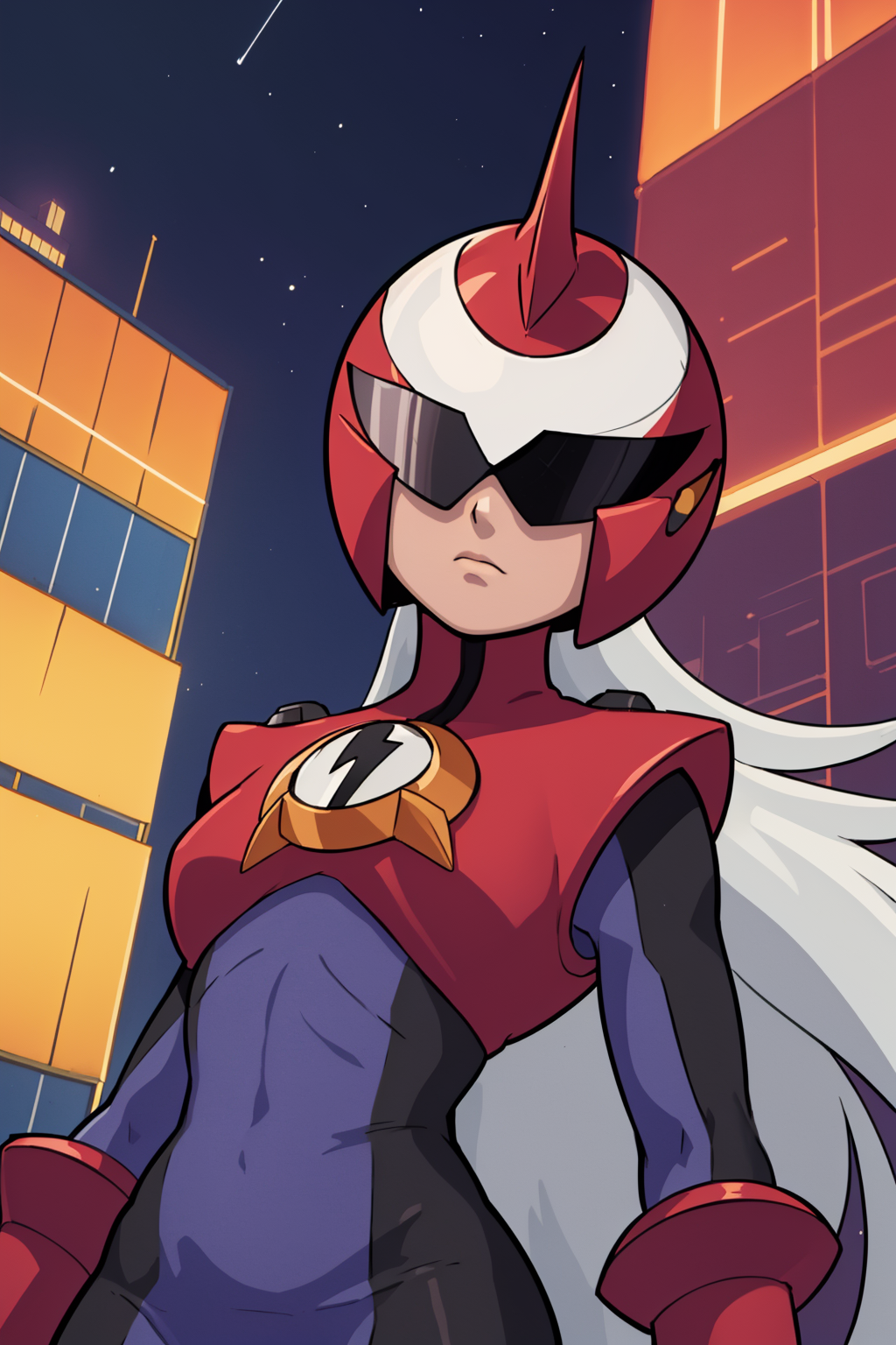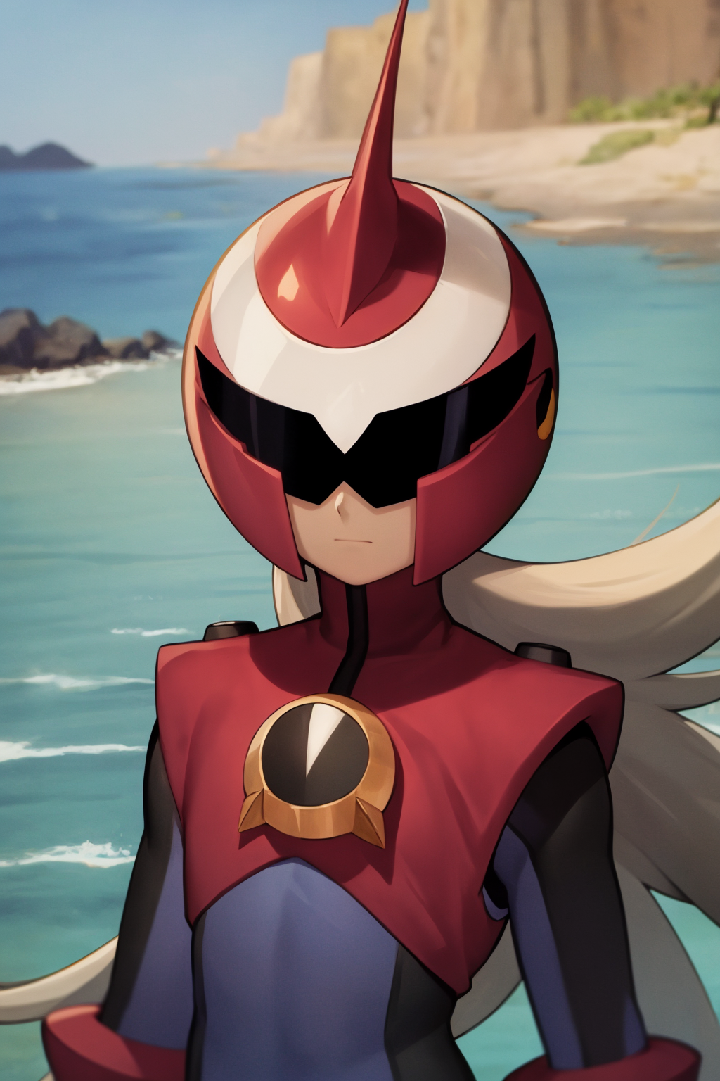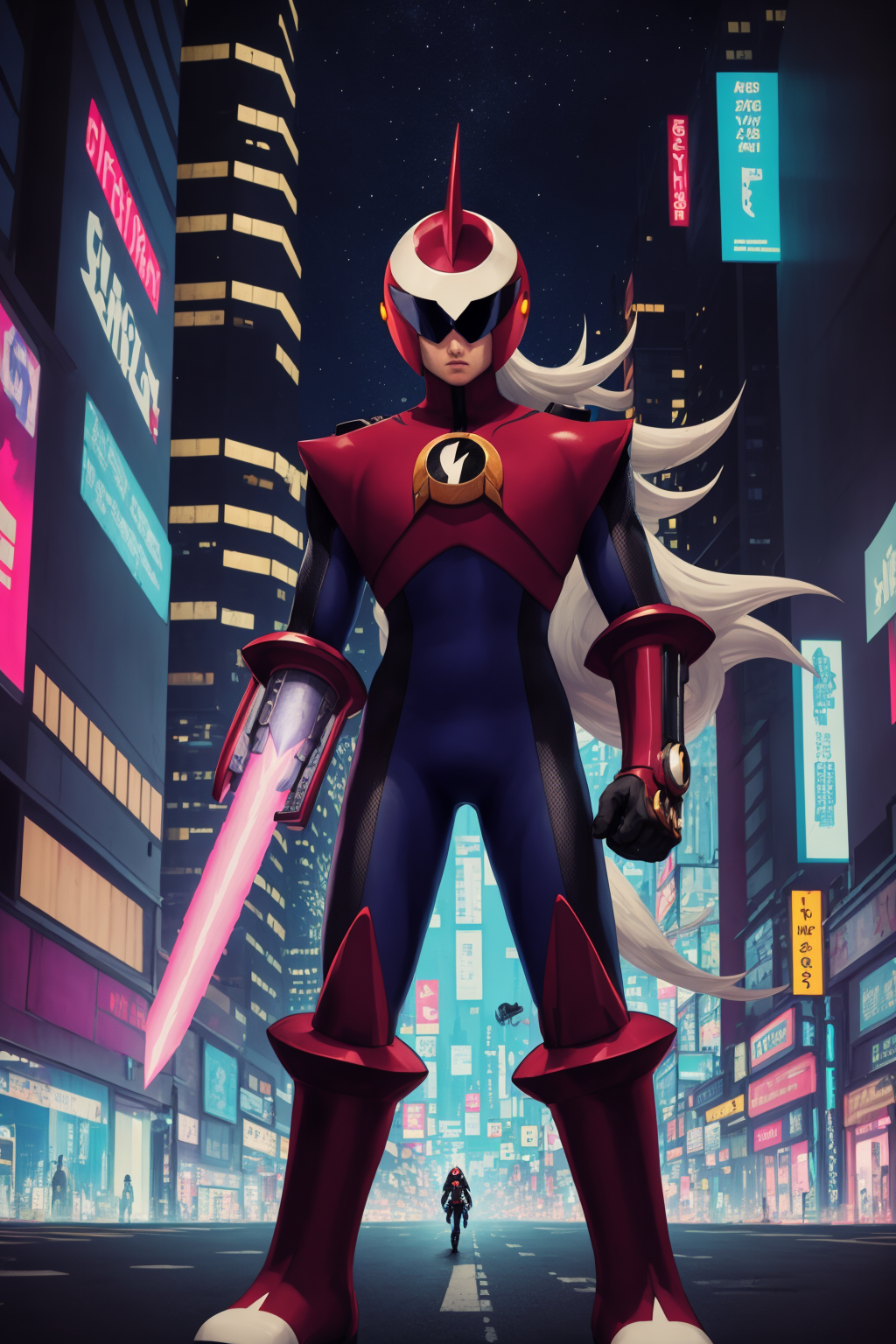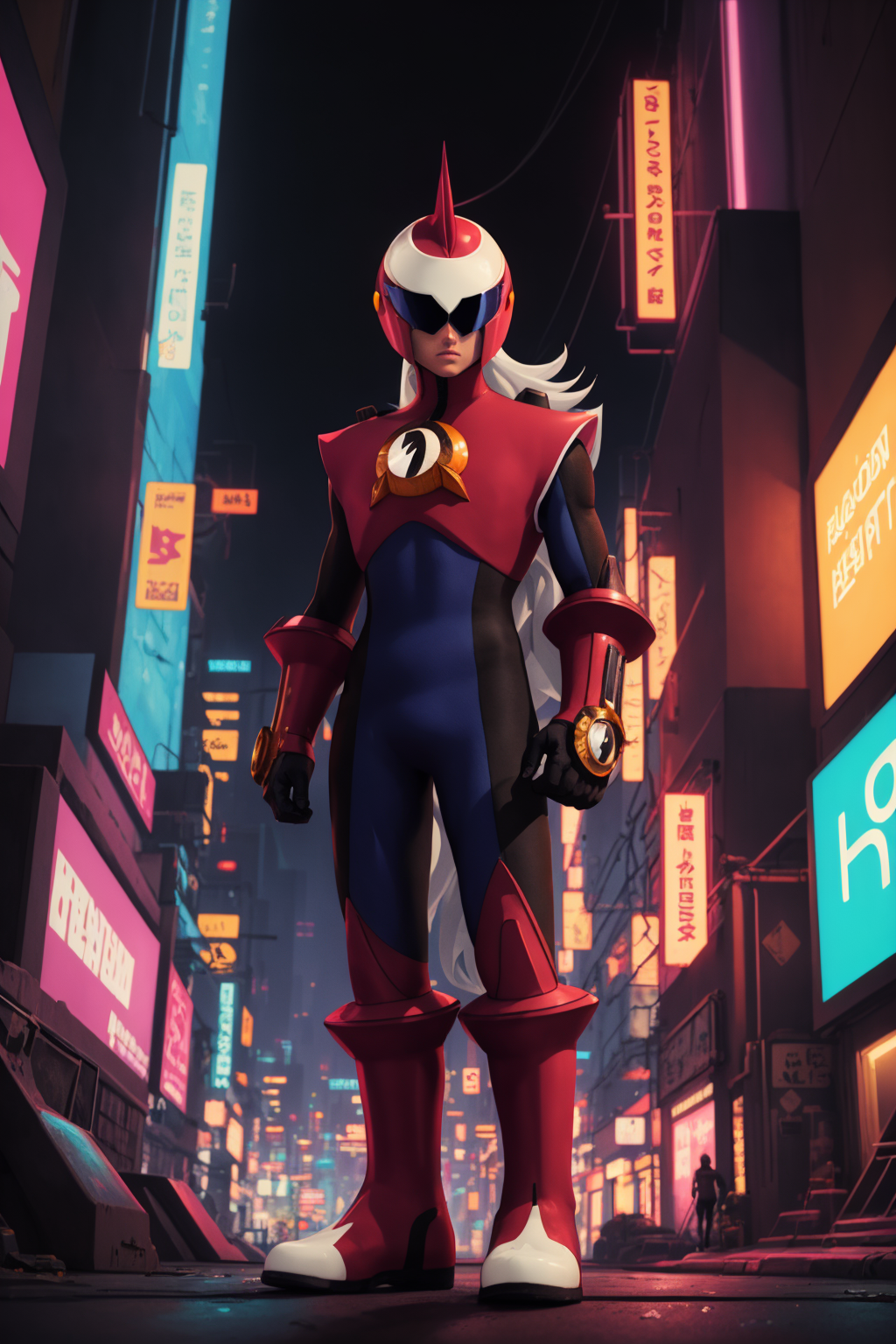 Other prompts : 1boy, grey hair, long hair, bodysuit, boots, gloves, helmet, red footwear