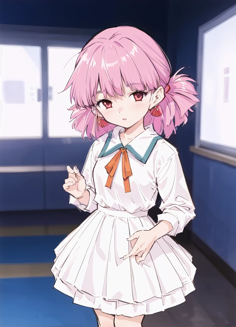 outfit1 : white collared shirt, short sleeves, neck ribbon, white pleated skirt
