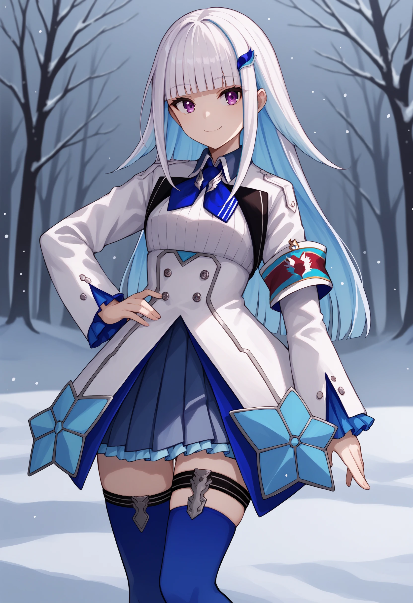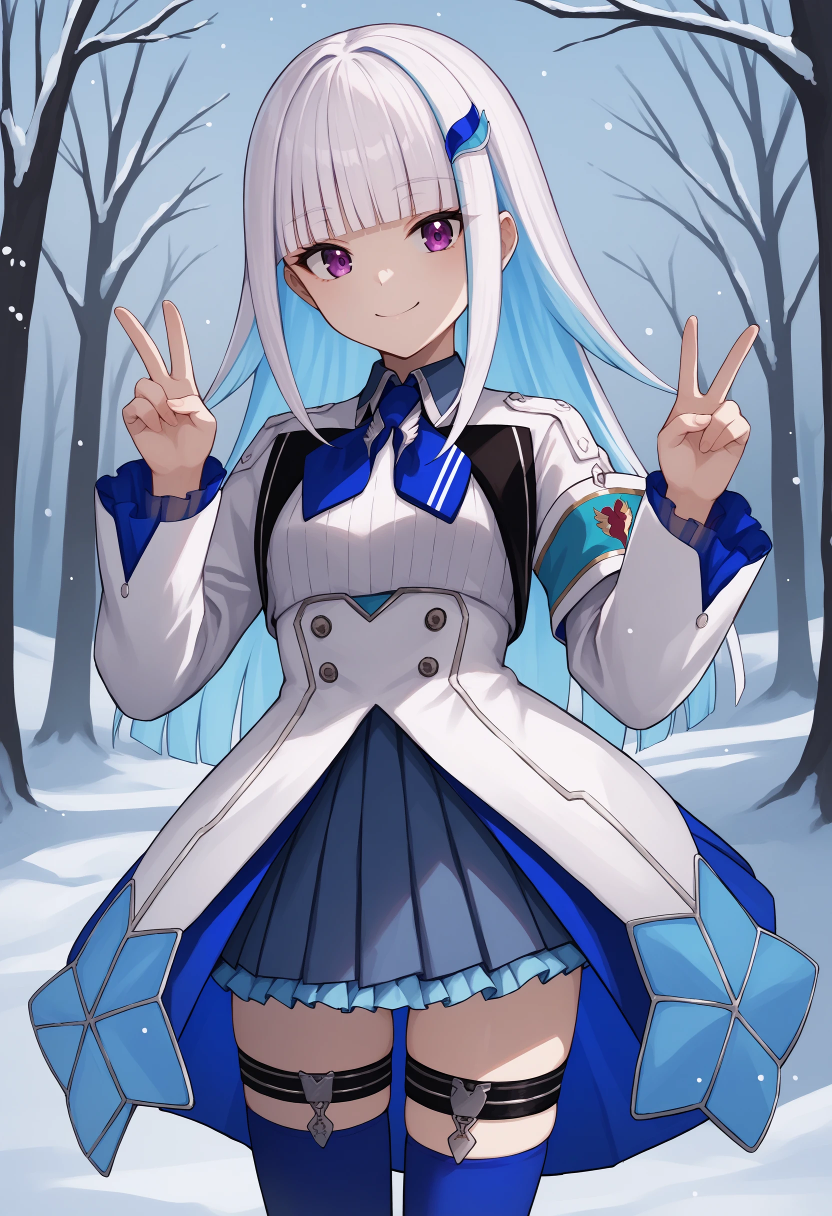 lh1, purple eyes, white hair, blue hair, multicolored hair, two-tone hair, colored inner hair, blunt bangs, long hair, hair ornament