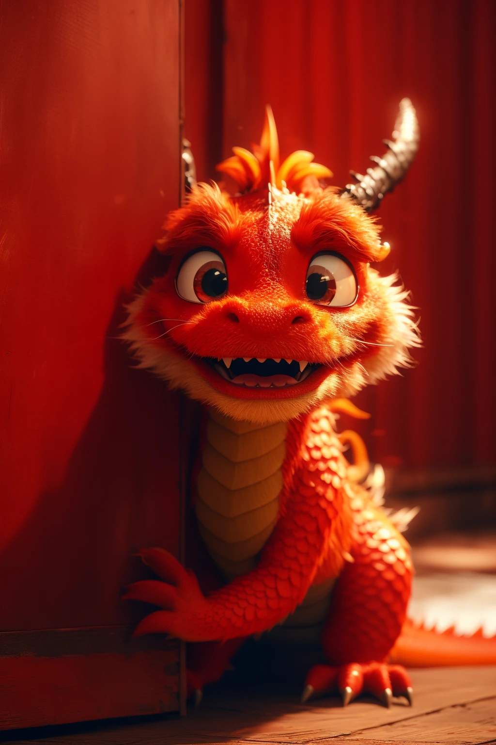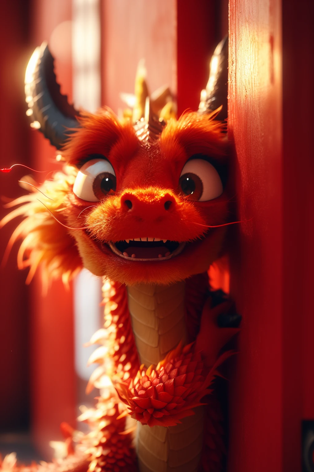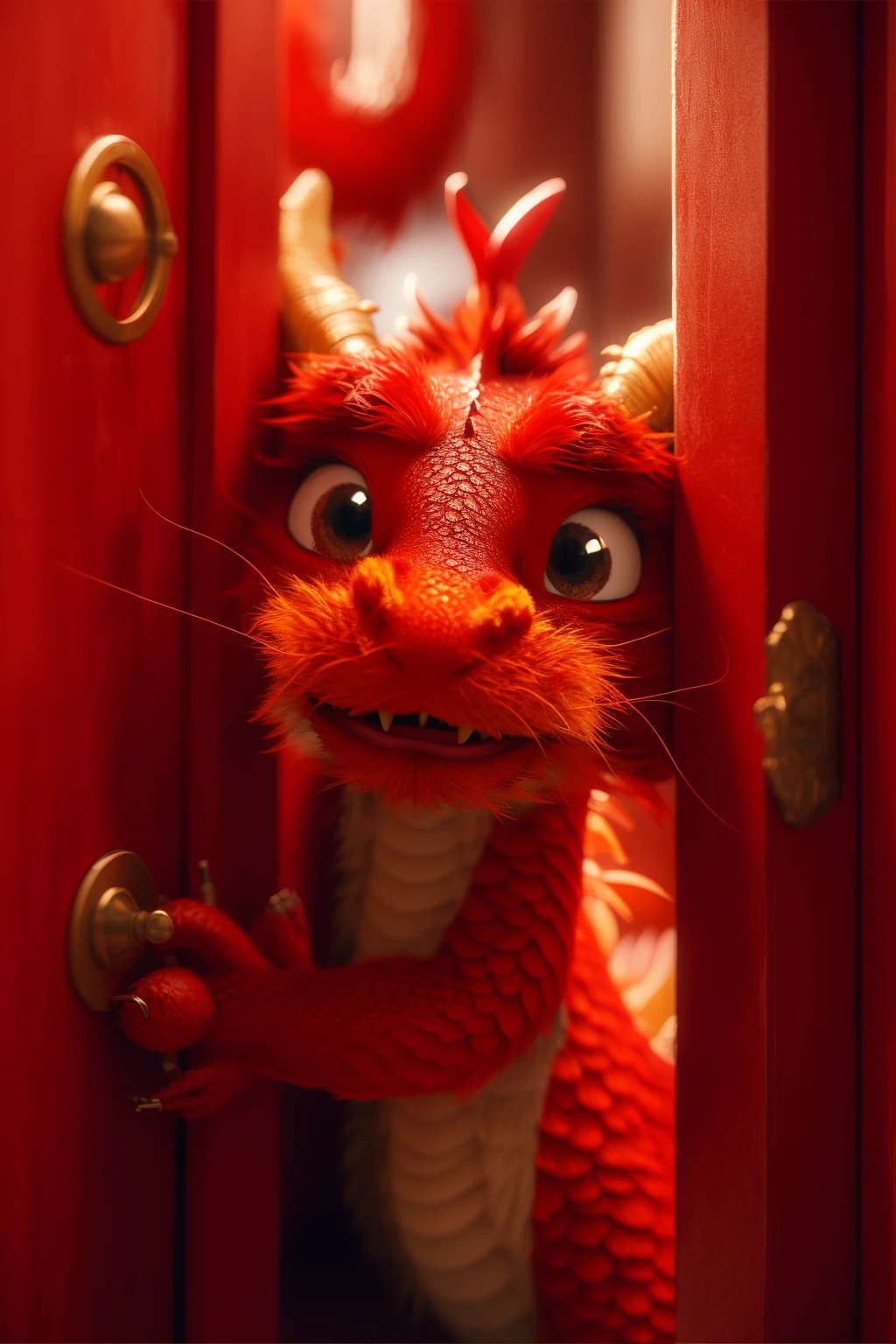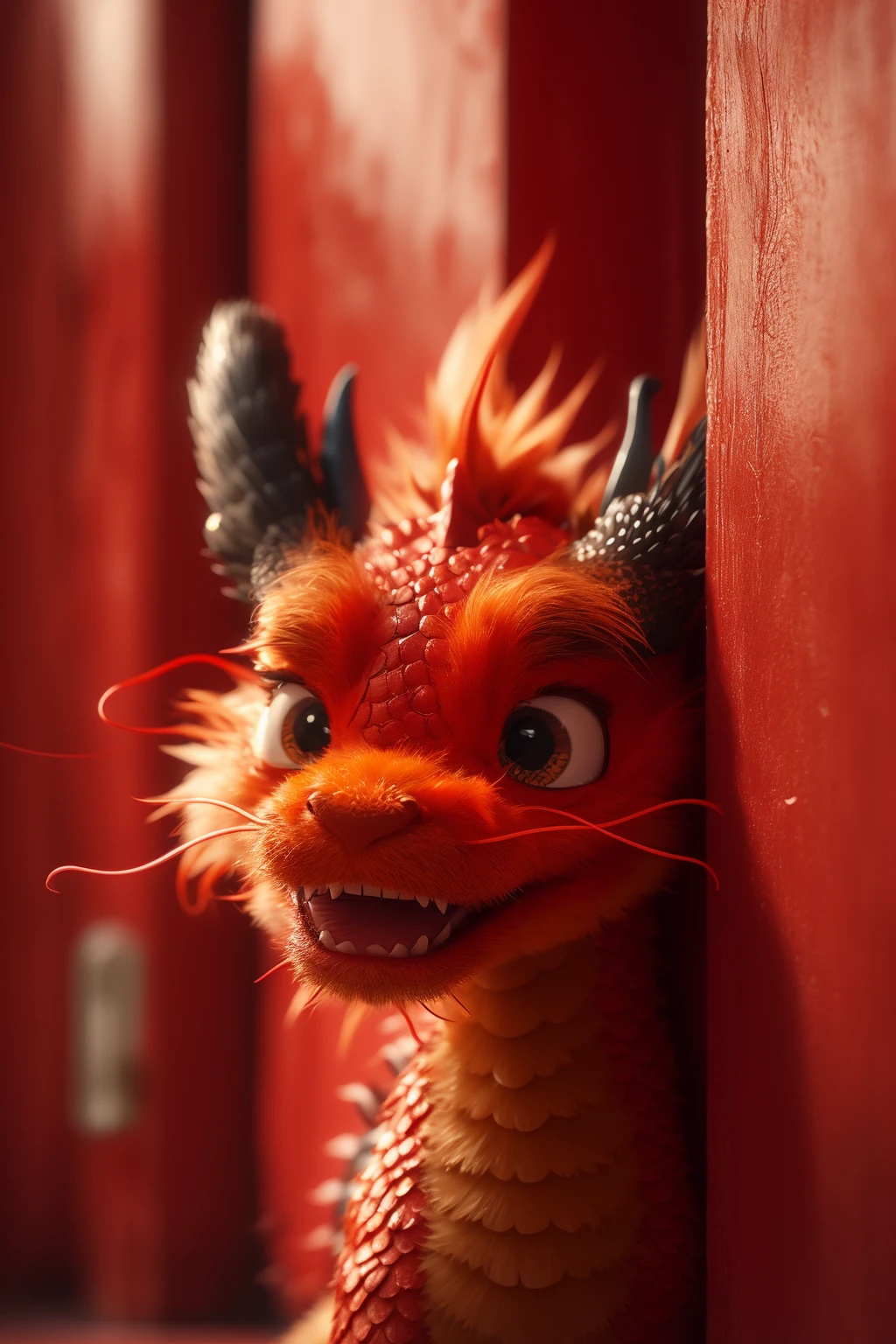 写实模型。基础TAG:red dragon,peeking out,red_theme,fangs,