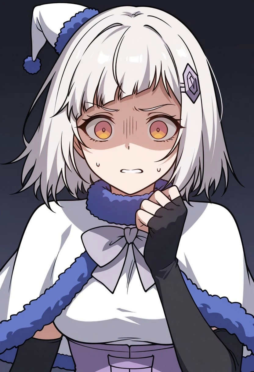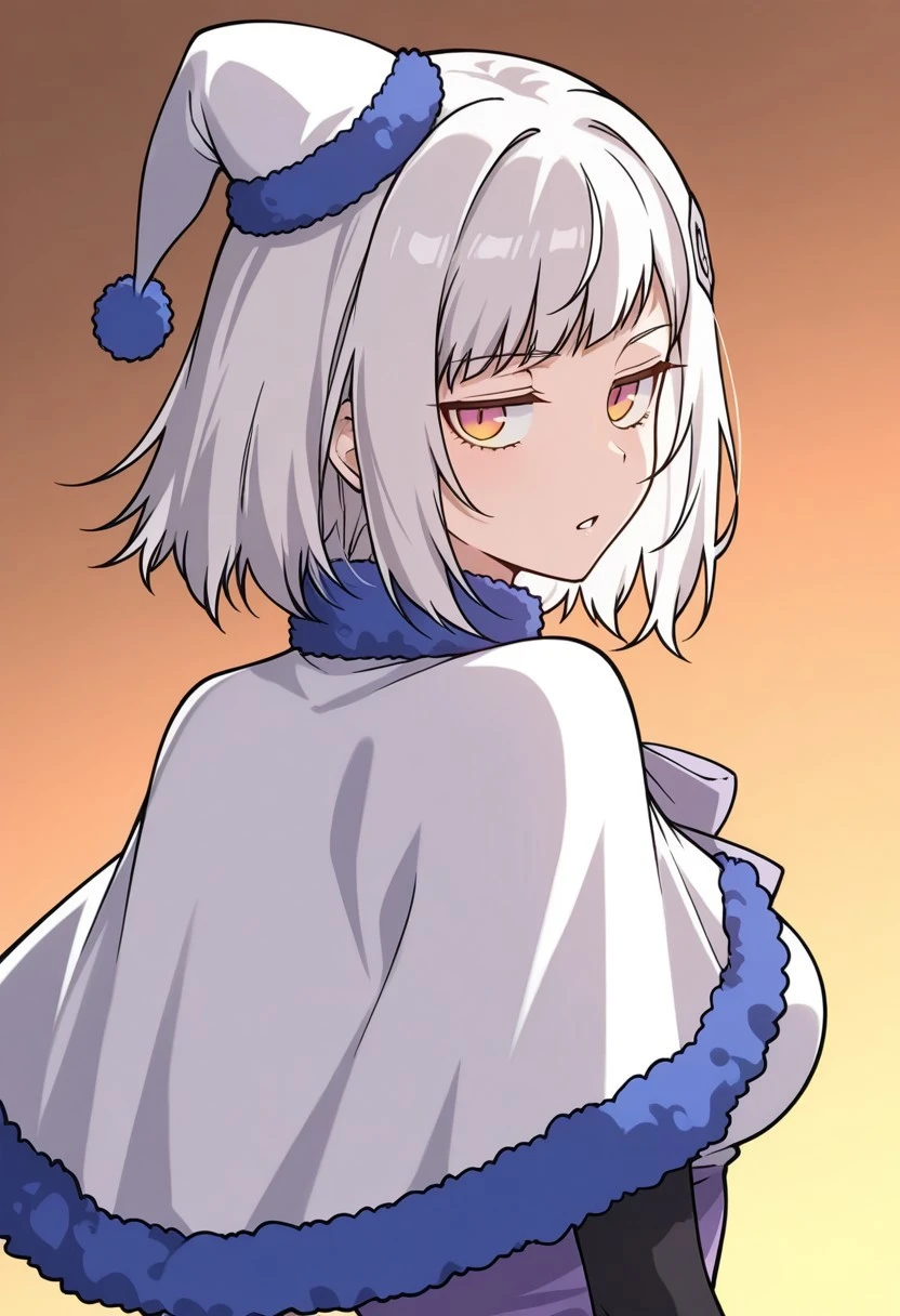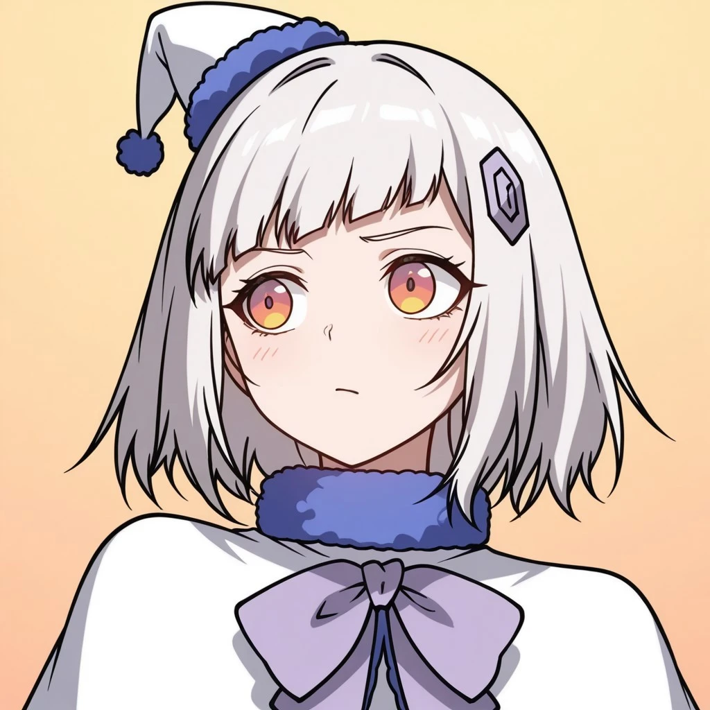 MurongXueKJ, short hair, white hair, orange gradient eyes, bangs, medium breasts