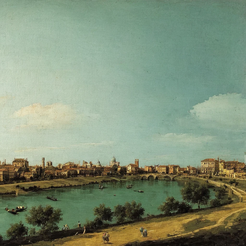 Model trained on landscape painting by Canaletto (Giovanni Antonio Canal ) Venetian painter.