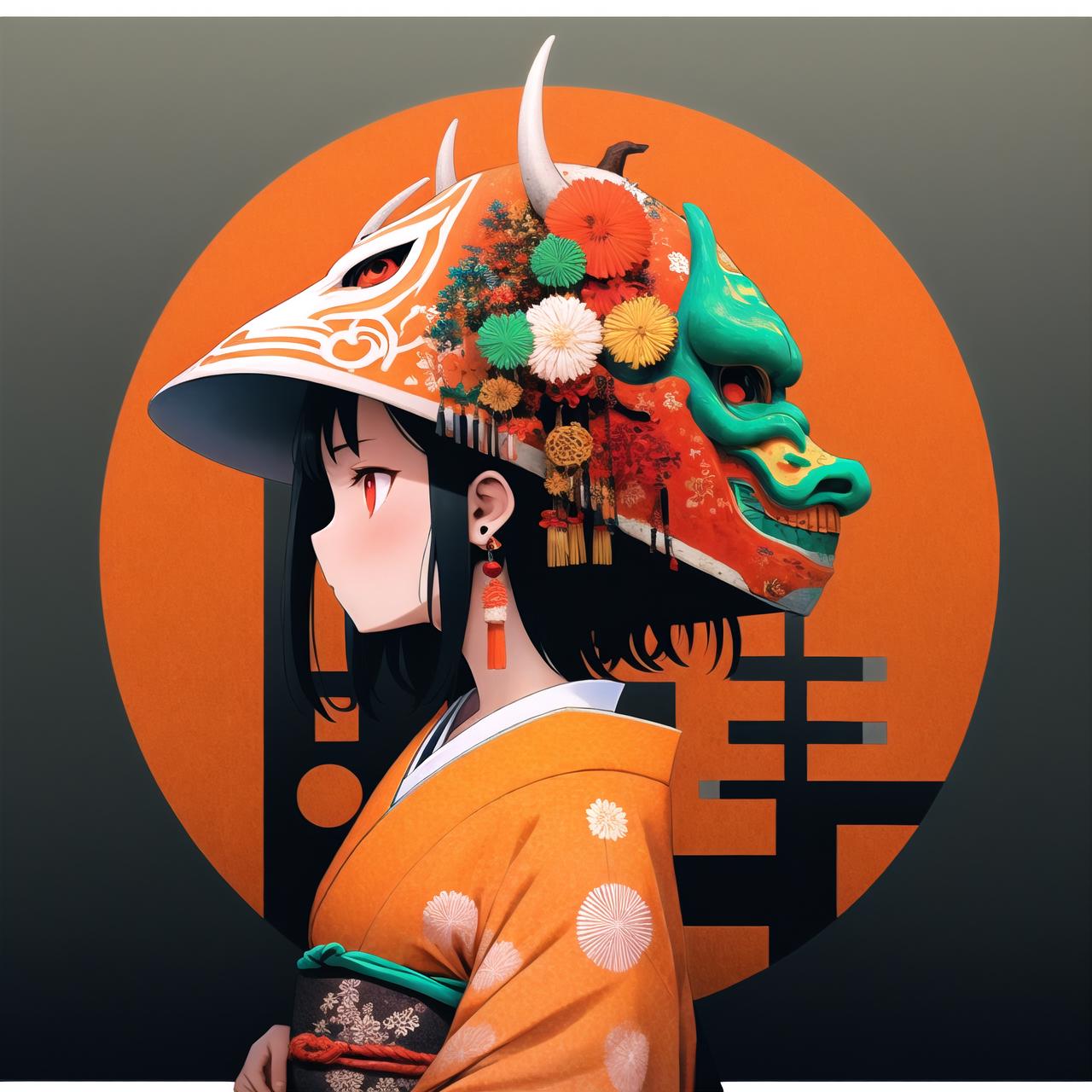 This model can generate decorations with elements of Ronin, such as horns, Ghost Faces, and various patterns.