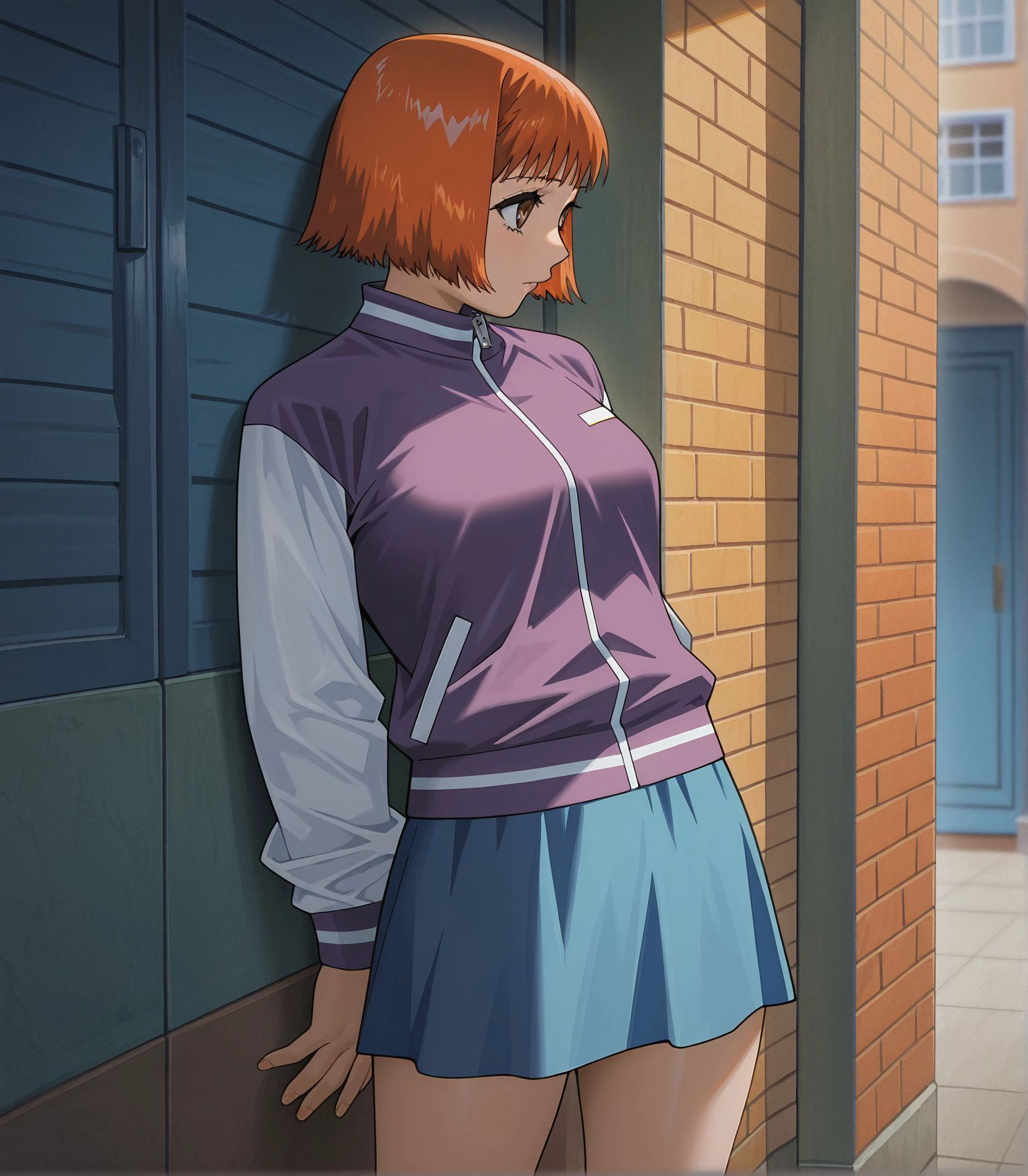 1girl, standing, brown eyes, orange hair female,