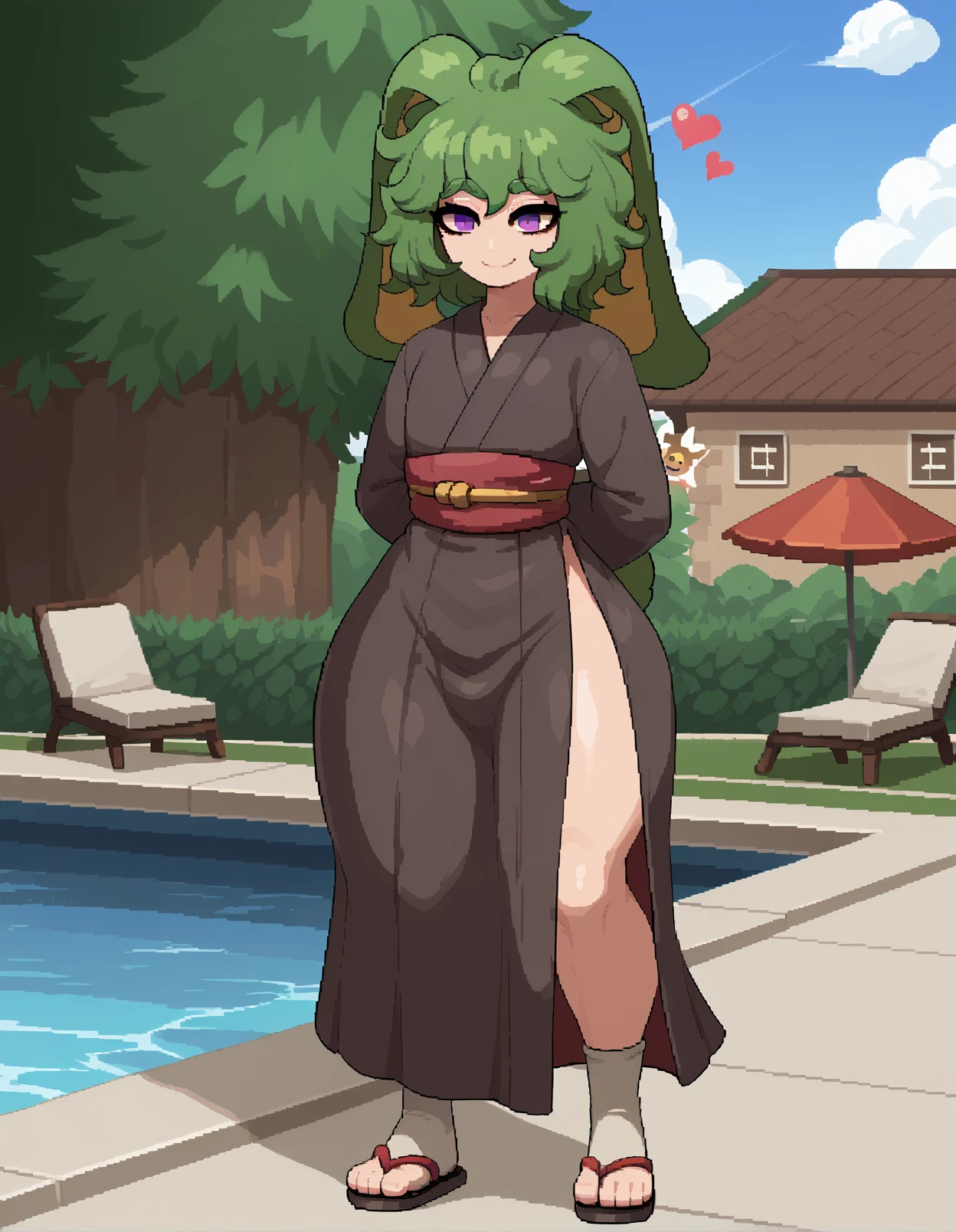 TAGS: tokuhaku, green hair, rabbit ears, male focus, otoko no ko, long ears, purple eyes