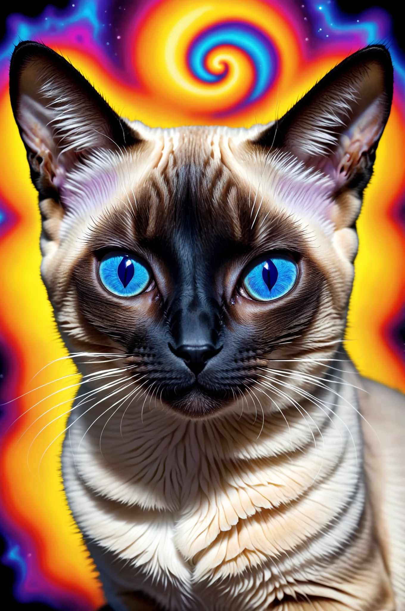 Another one of my favorites I made on pixai awhile back that is designed to fully function on it's own as a colorful catastrophic trippy kitty creator!
