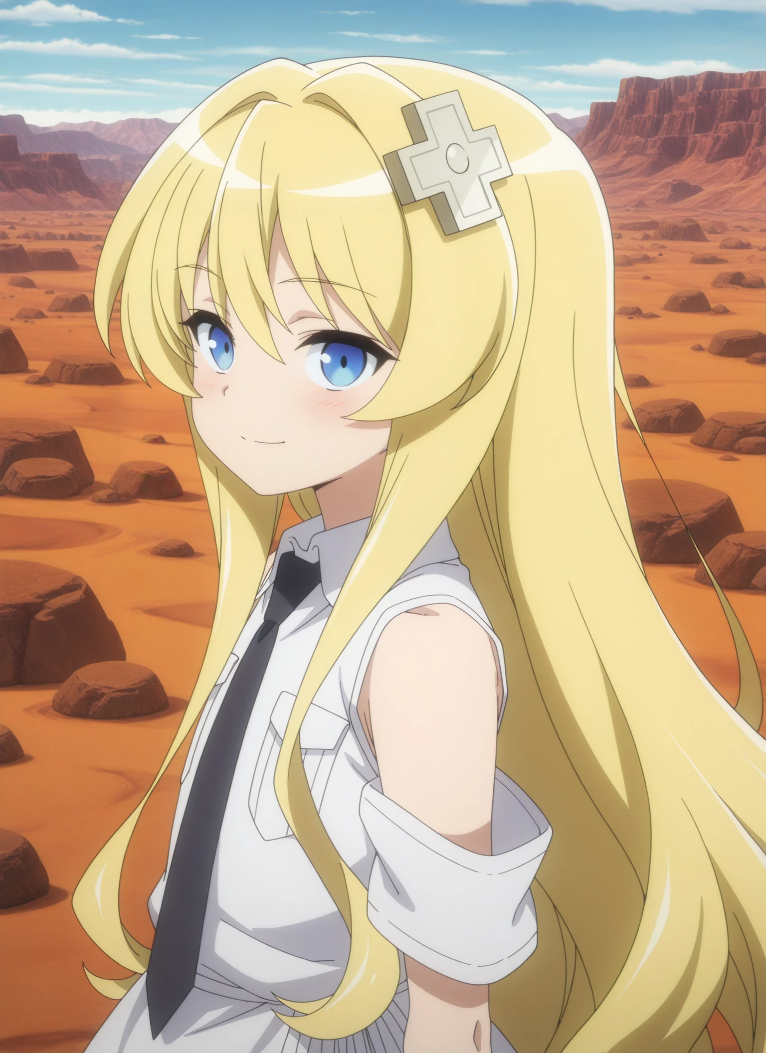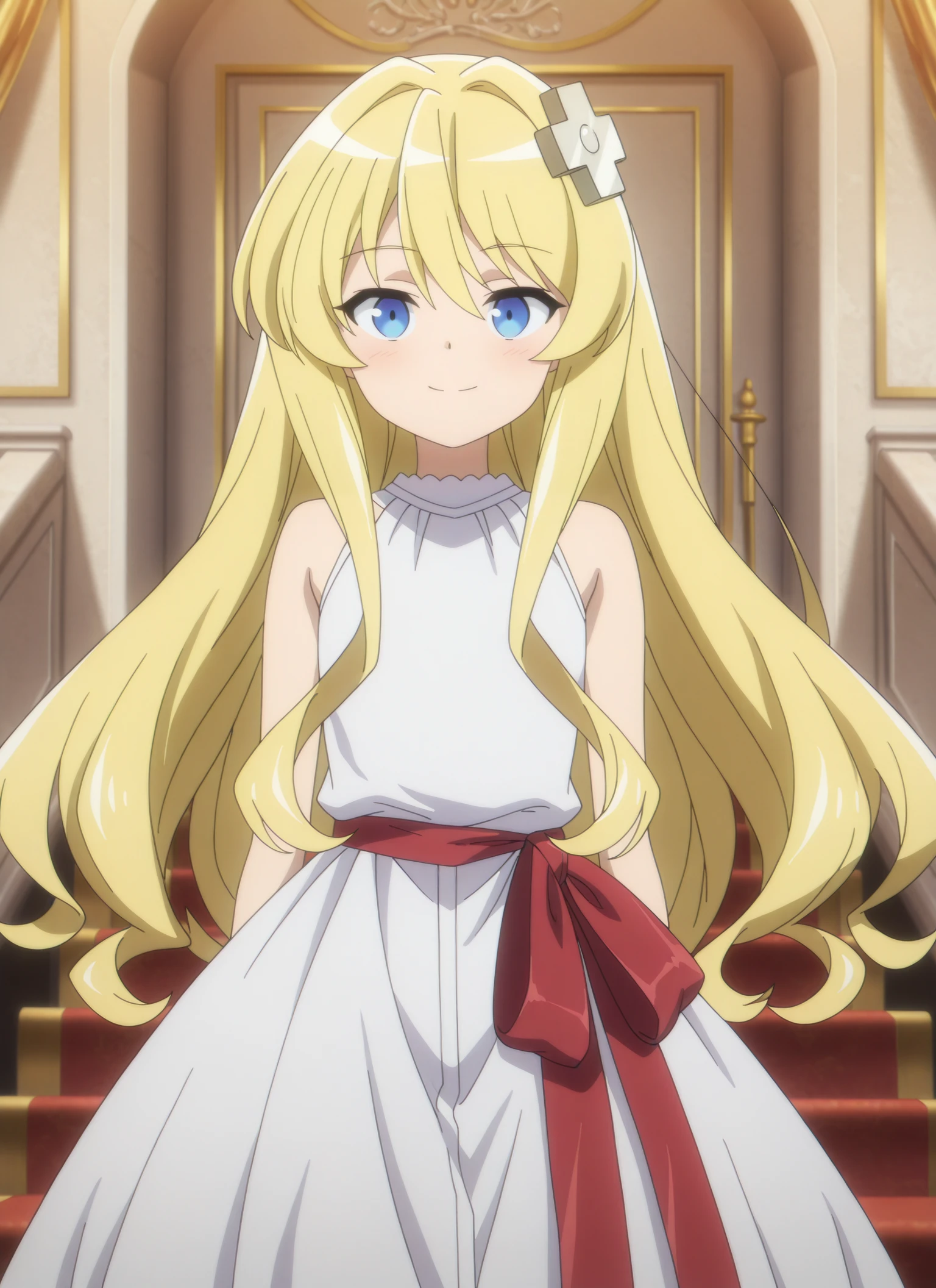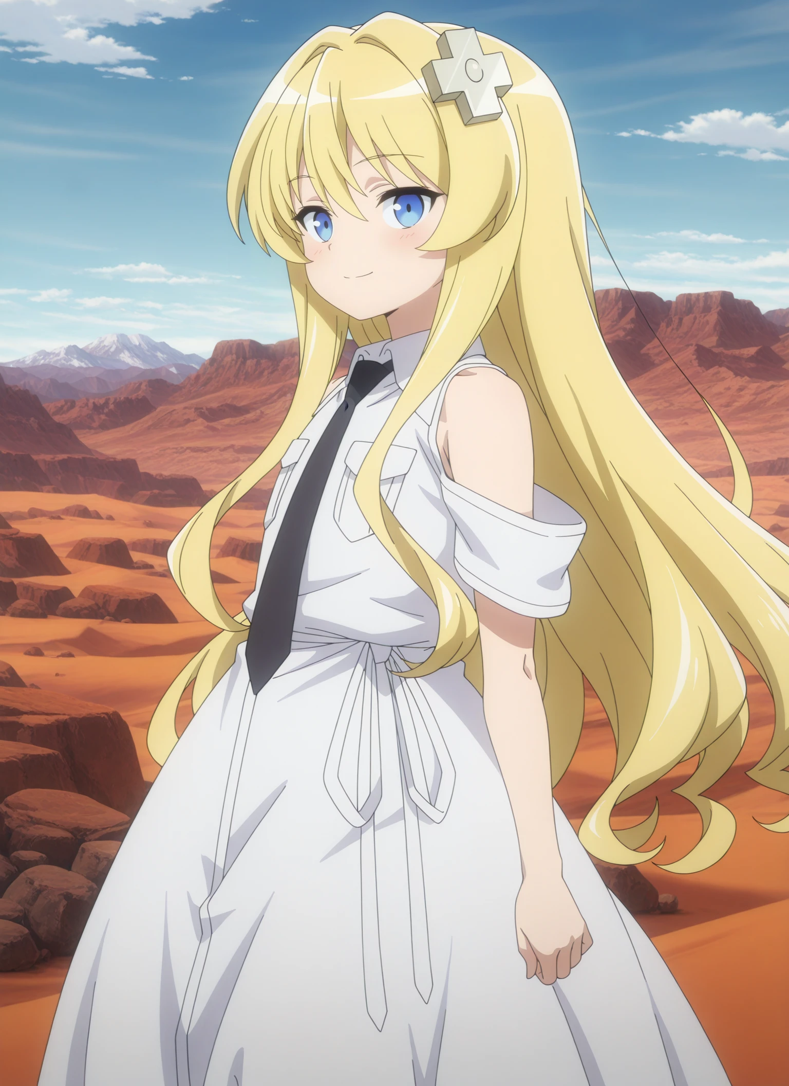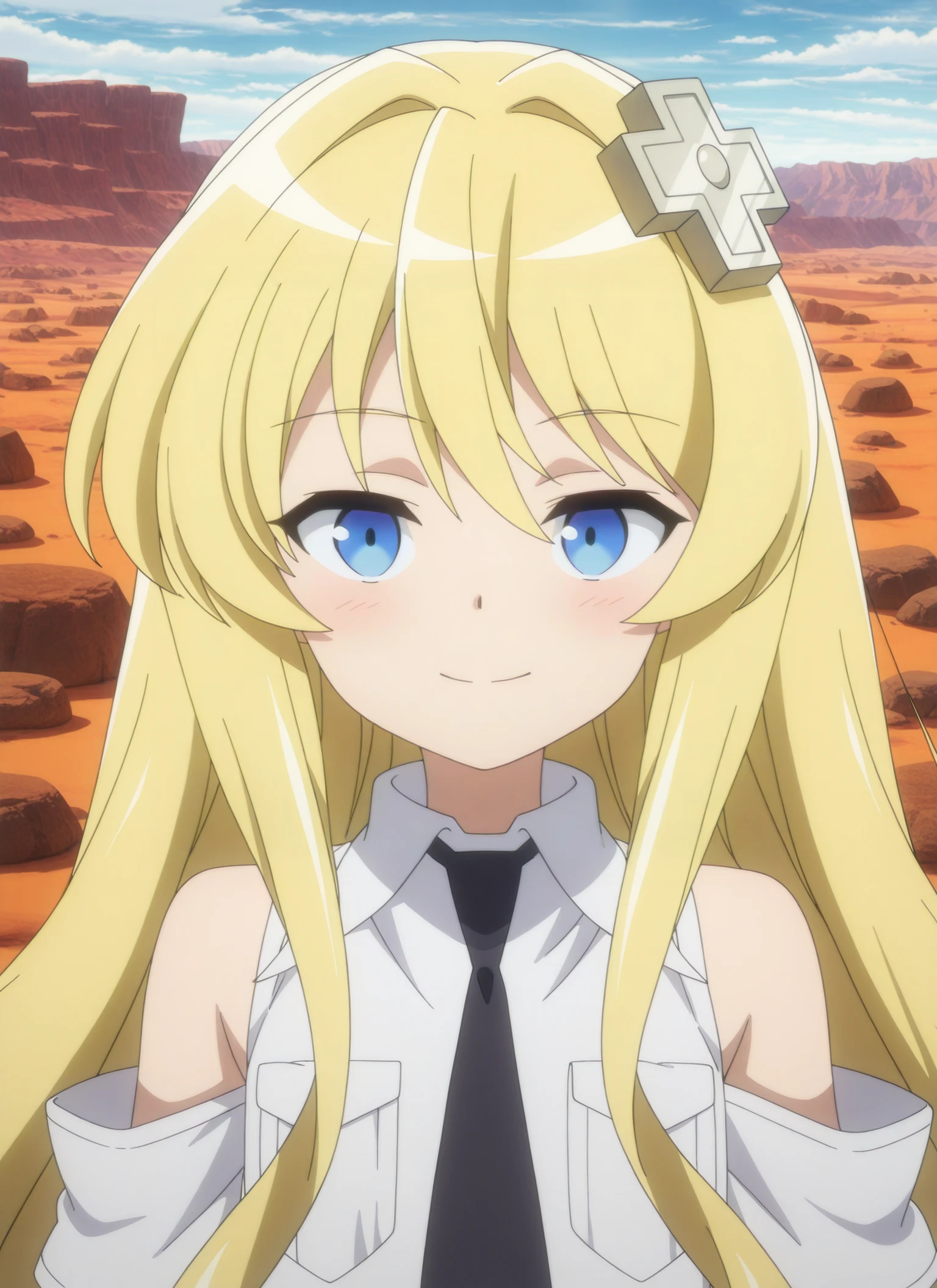 sentouin-hakenshimasu_alice, child, blue eyes, blonde hair, long hair, cross hair ornament,