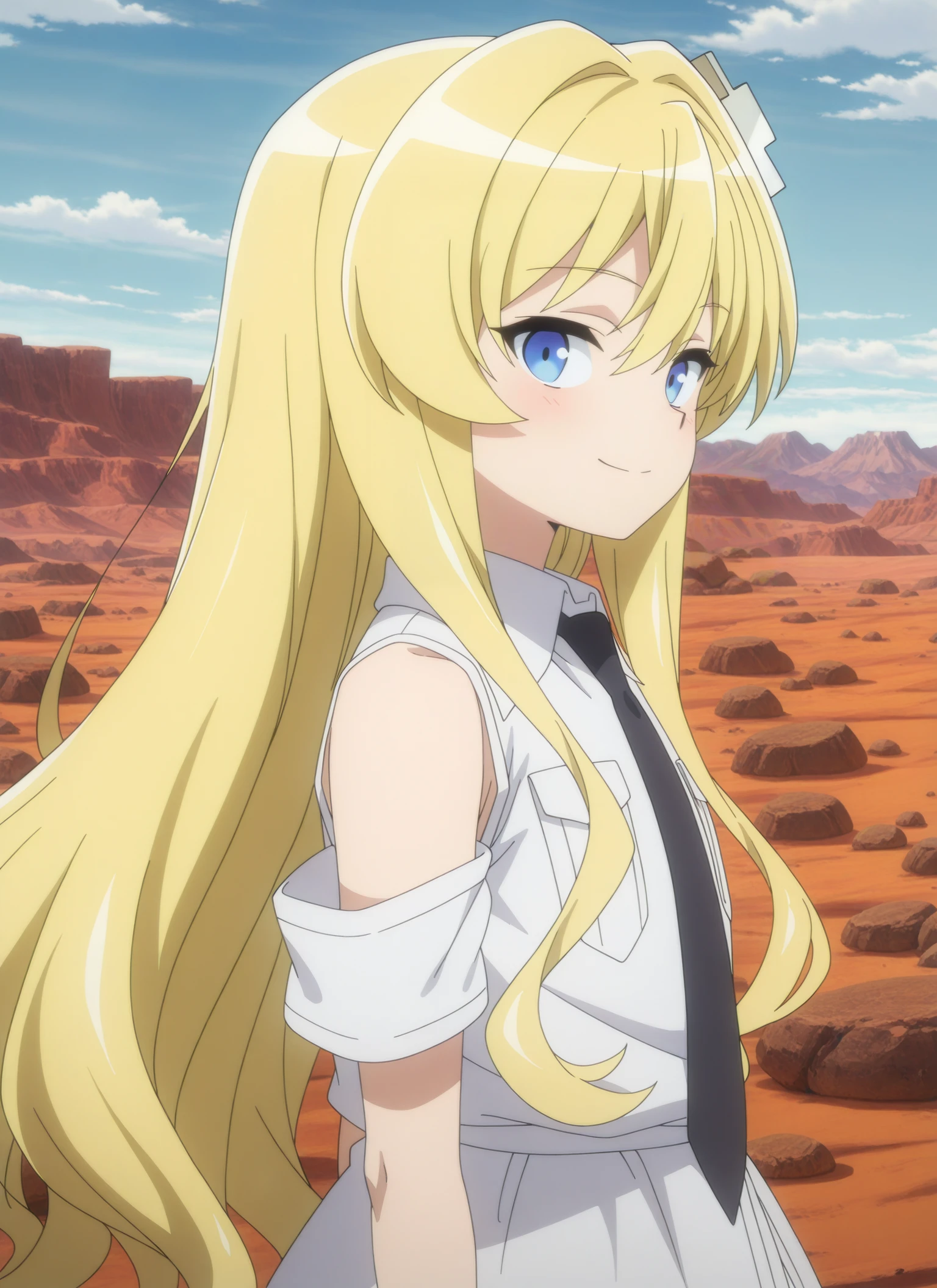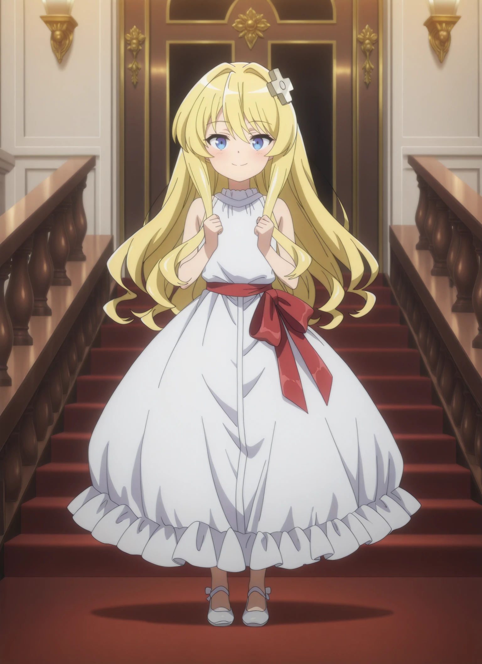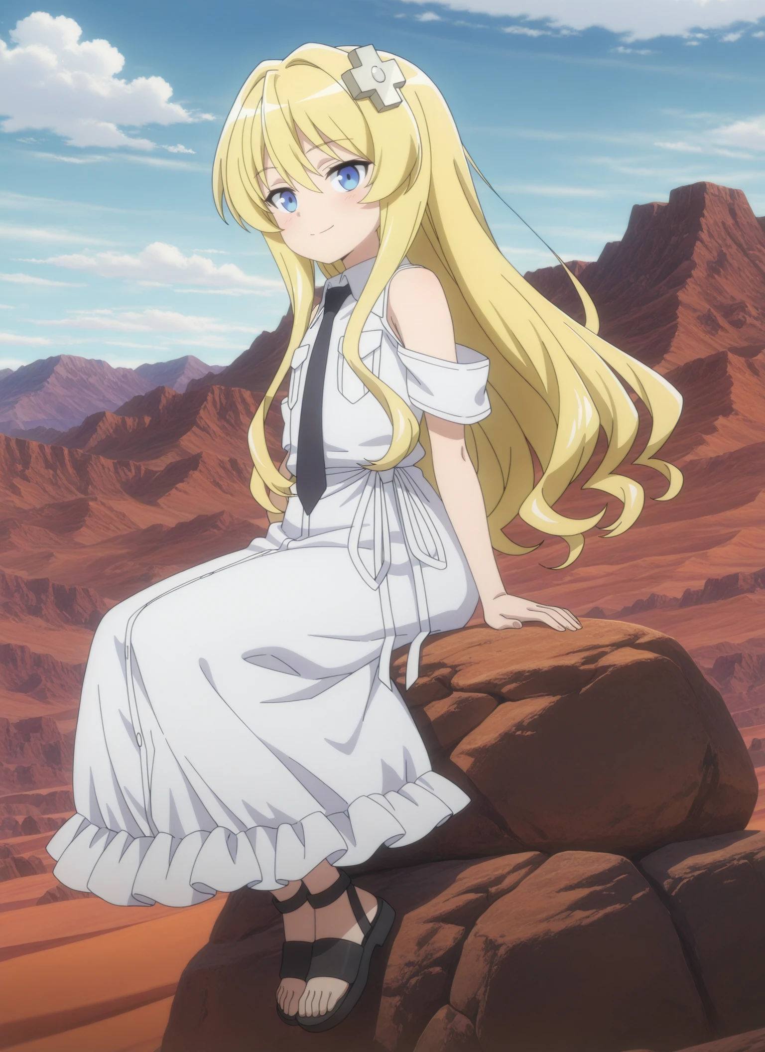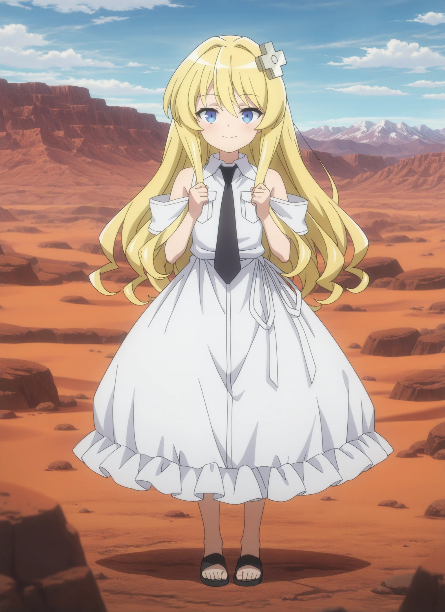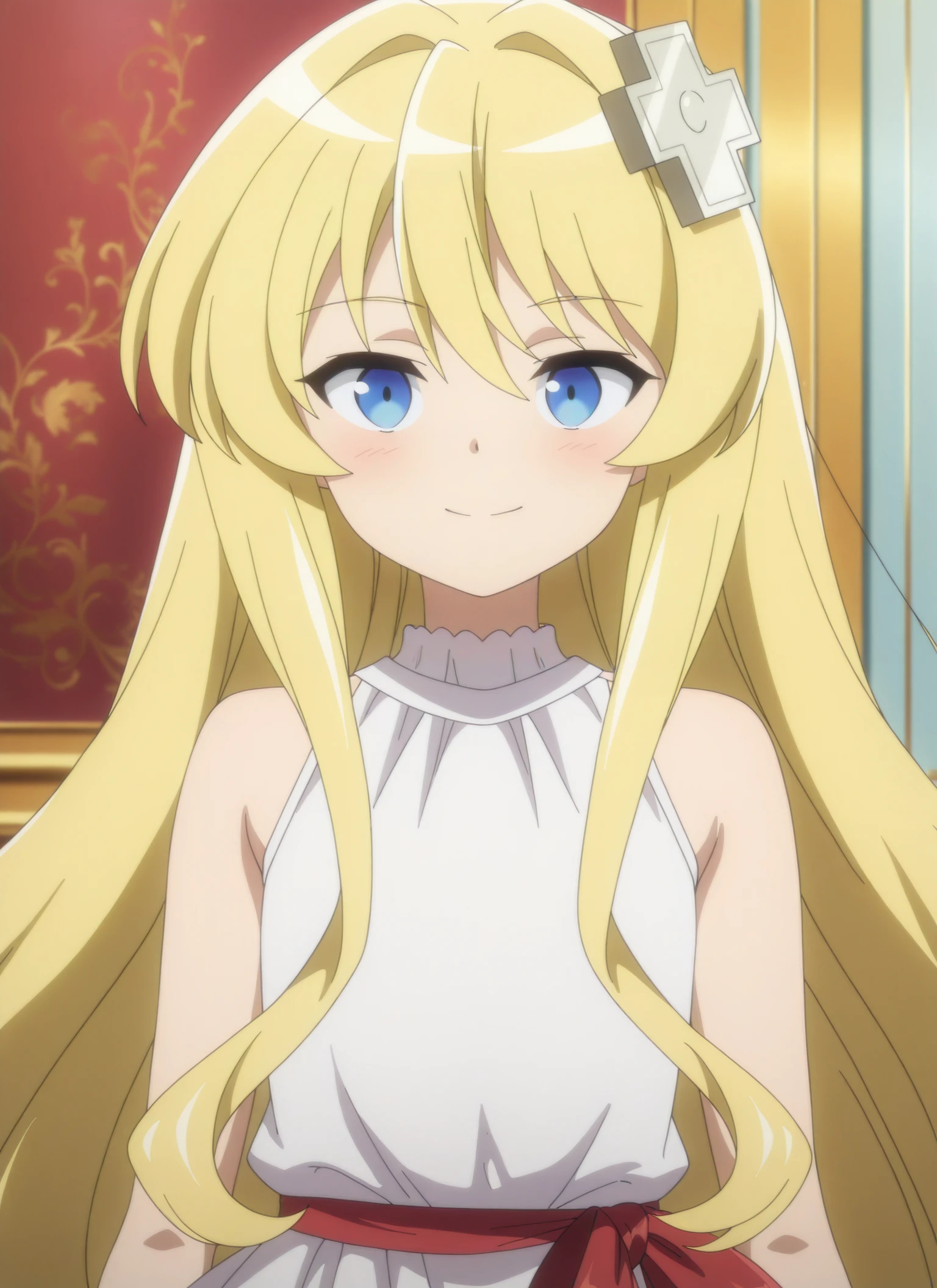 sentouin-hakenshimasu_alice, child, blue eyes, blonde hair, long hair, cross hair ornament,