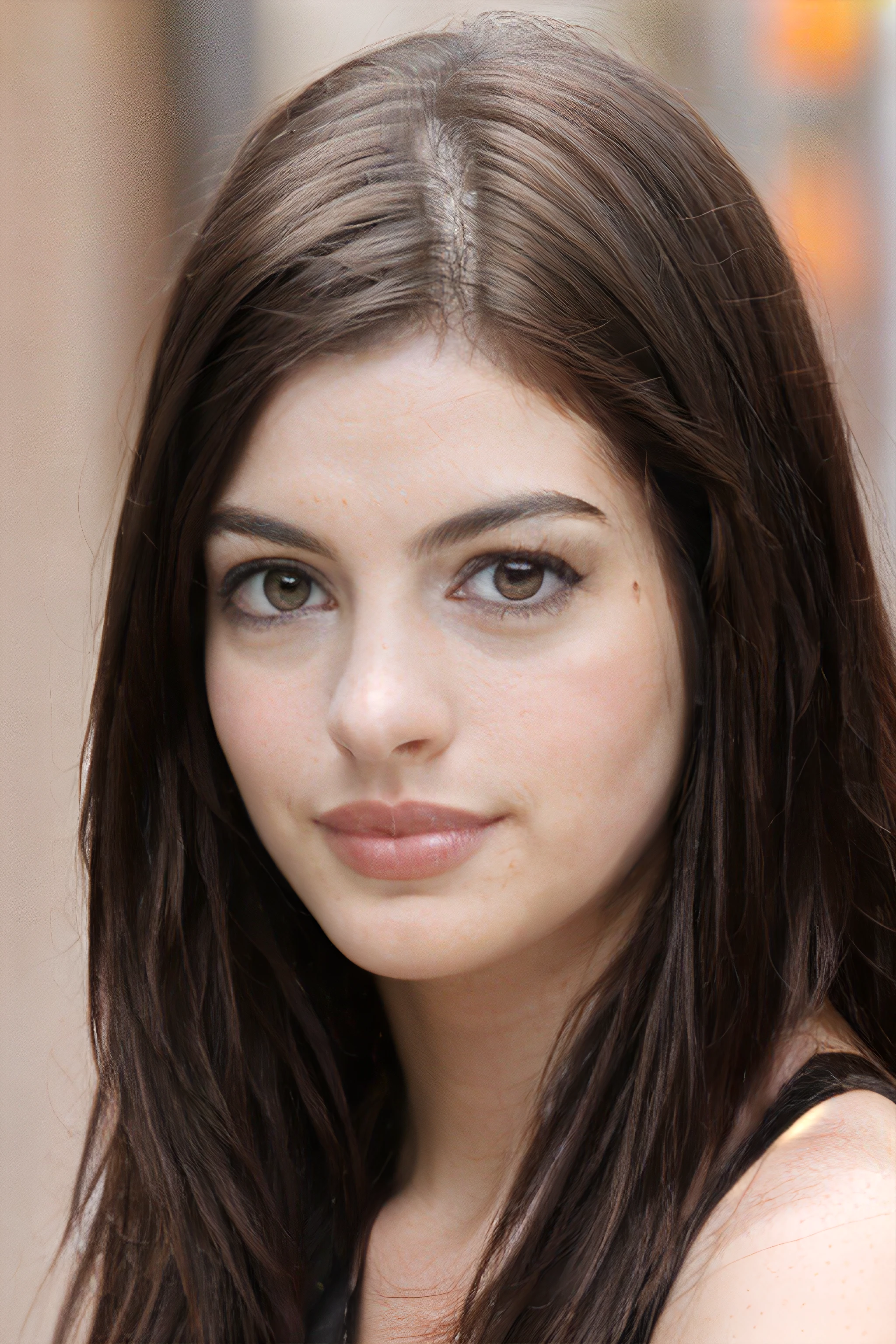 LORA trained on 31 publicly available images of Anne Hathaway.
