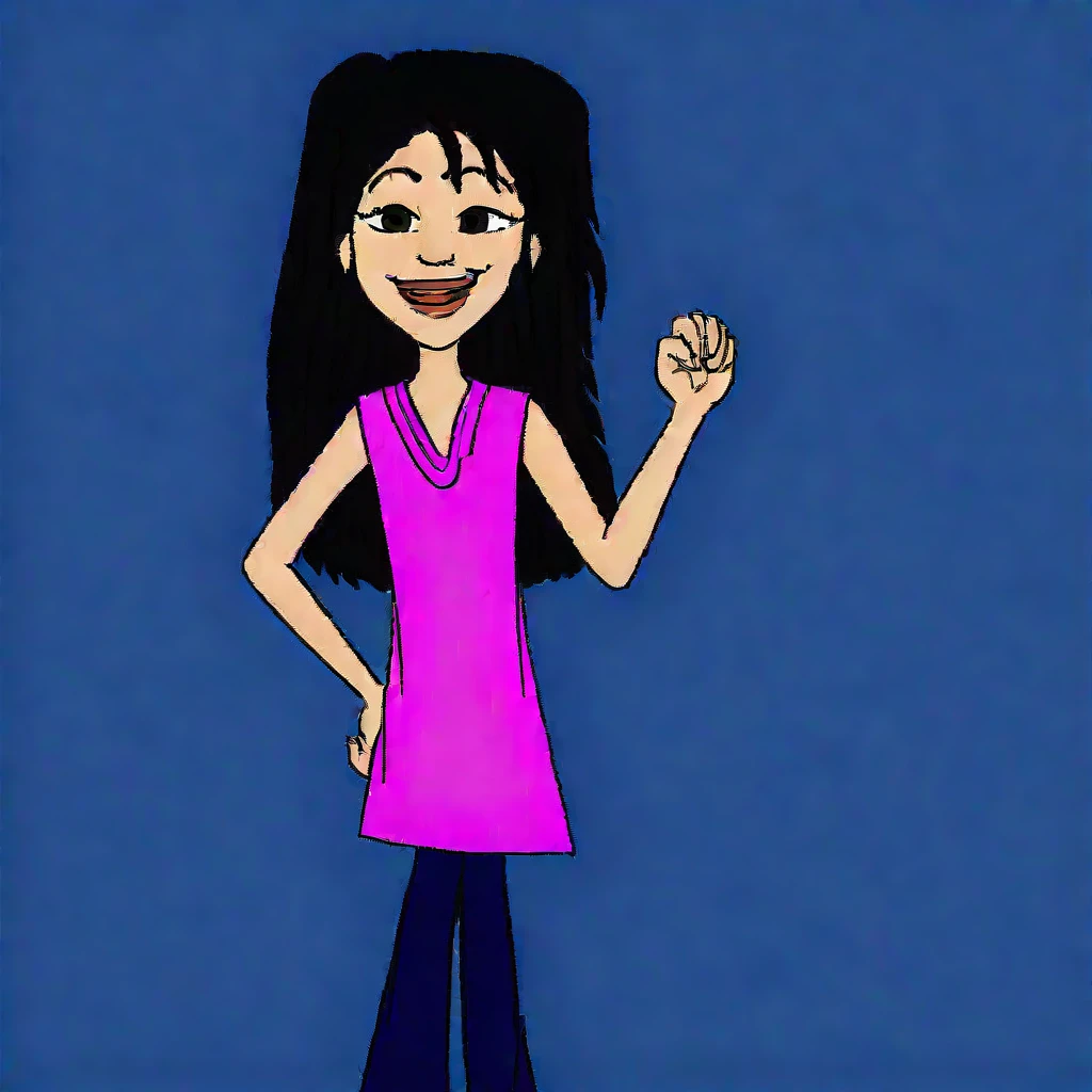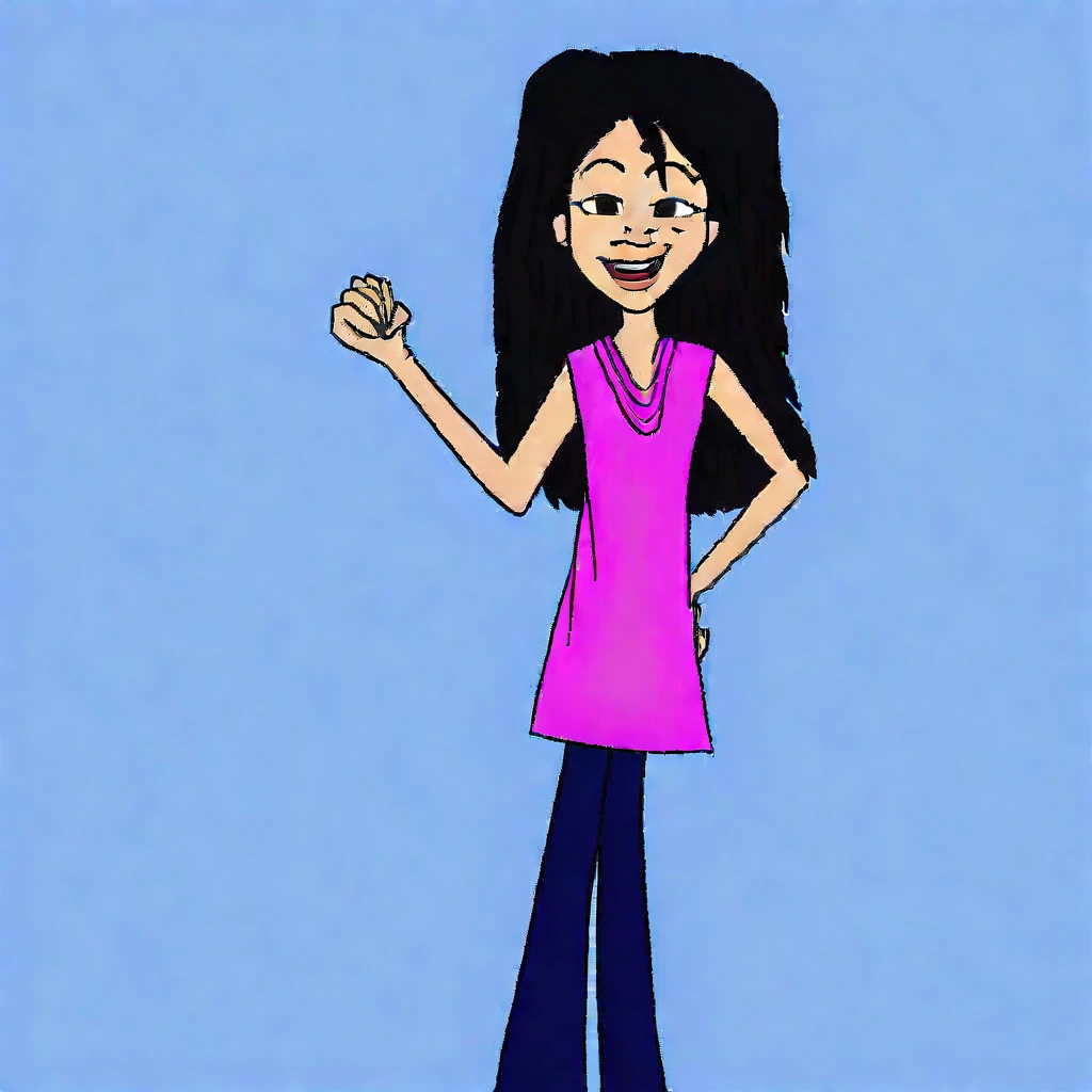 penny proud 1girl dark skinned female brown eyes, black hair ,long hair, pink tank top, no shirt, blue pants, red Ugg boots, gold bracelets
