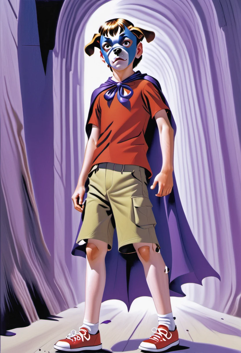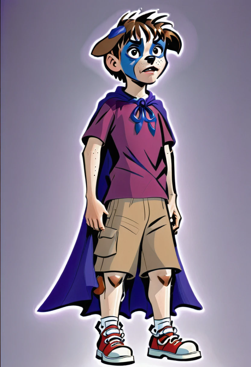 Trained on the covers for the Dogboy Adventures series of books (art by Paul Loudon and Tom Gerhke) and fourteen pieces of fan art readers sent me over the years, as well as some character designs by Mike Dyson Paul used to inspire the first cover.