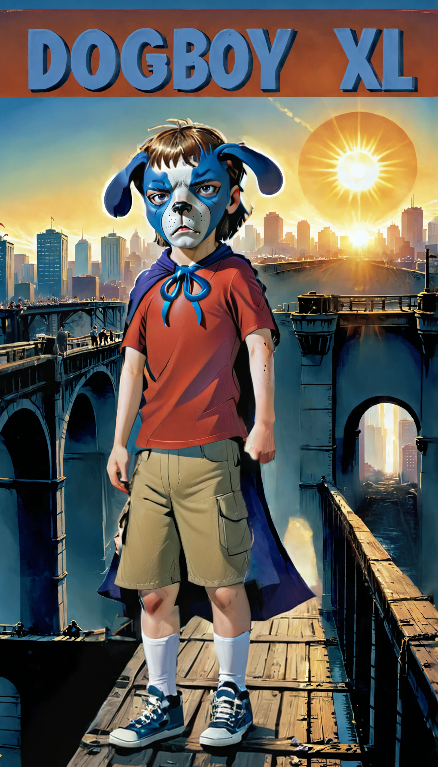 Dogboy XL unlocks the world of Bronson Black, a.k.a. Dogboy, and his thrilling adventures in the nostalgic town of Colta City, locked in a perpetual state of nostalgia by the mysterious, mischievous Willowood. Dogboy's world is filled with magic and adventure, and you can breath new life into his story with Stable Diffusion. Prompt with "Dogboy."