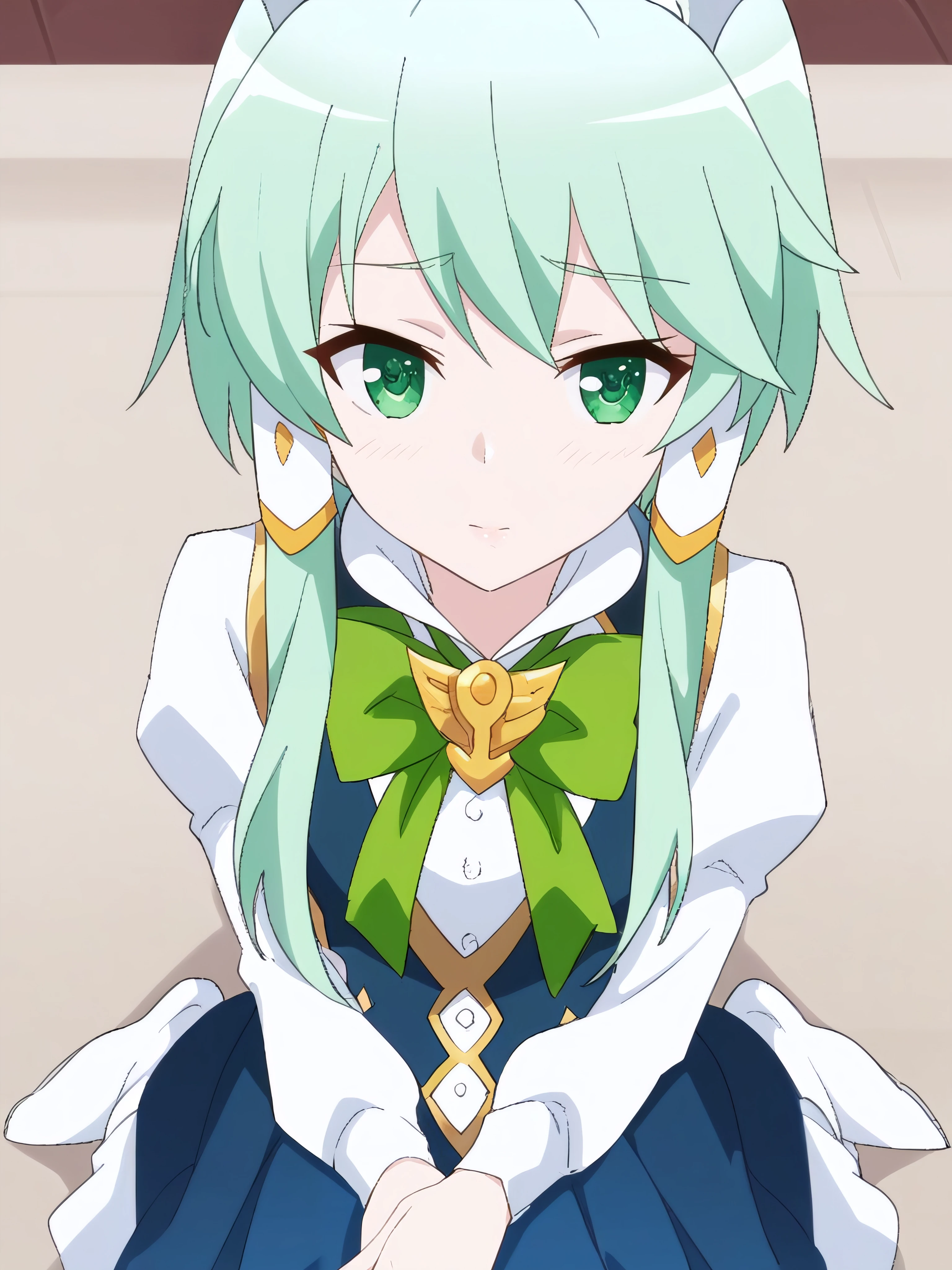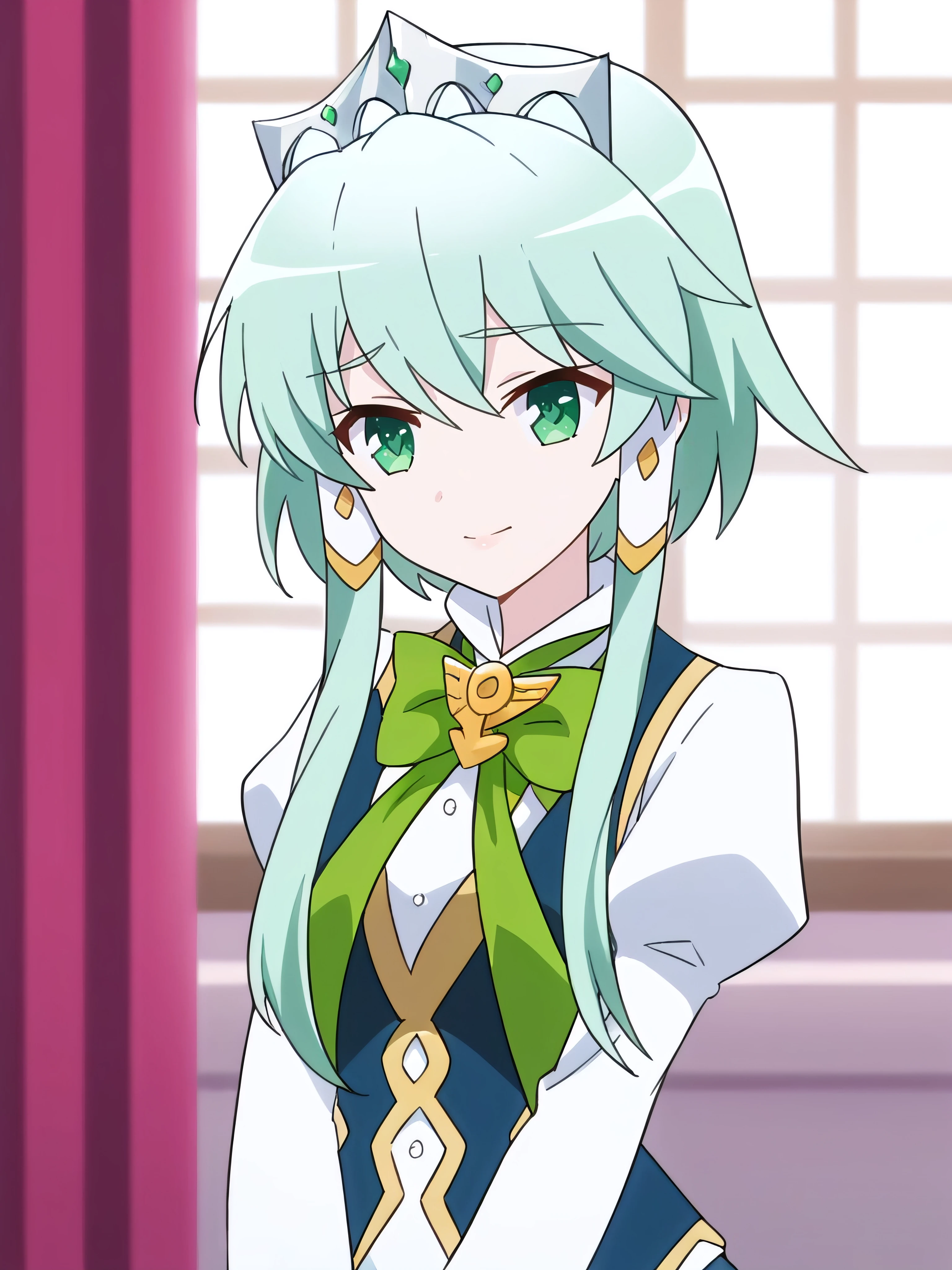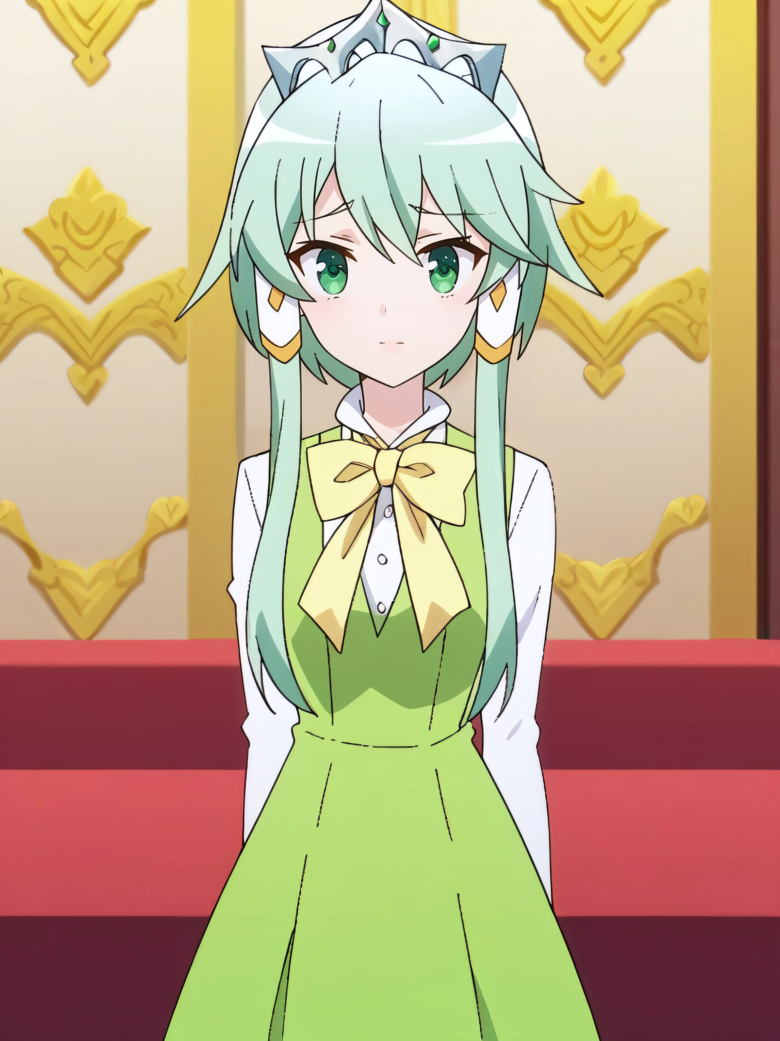 lucia,green hair,short hair with long locks,green eyes,hair tubes, tiara,