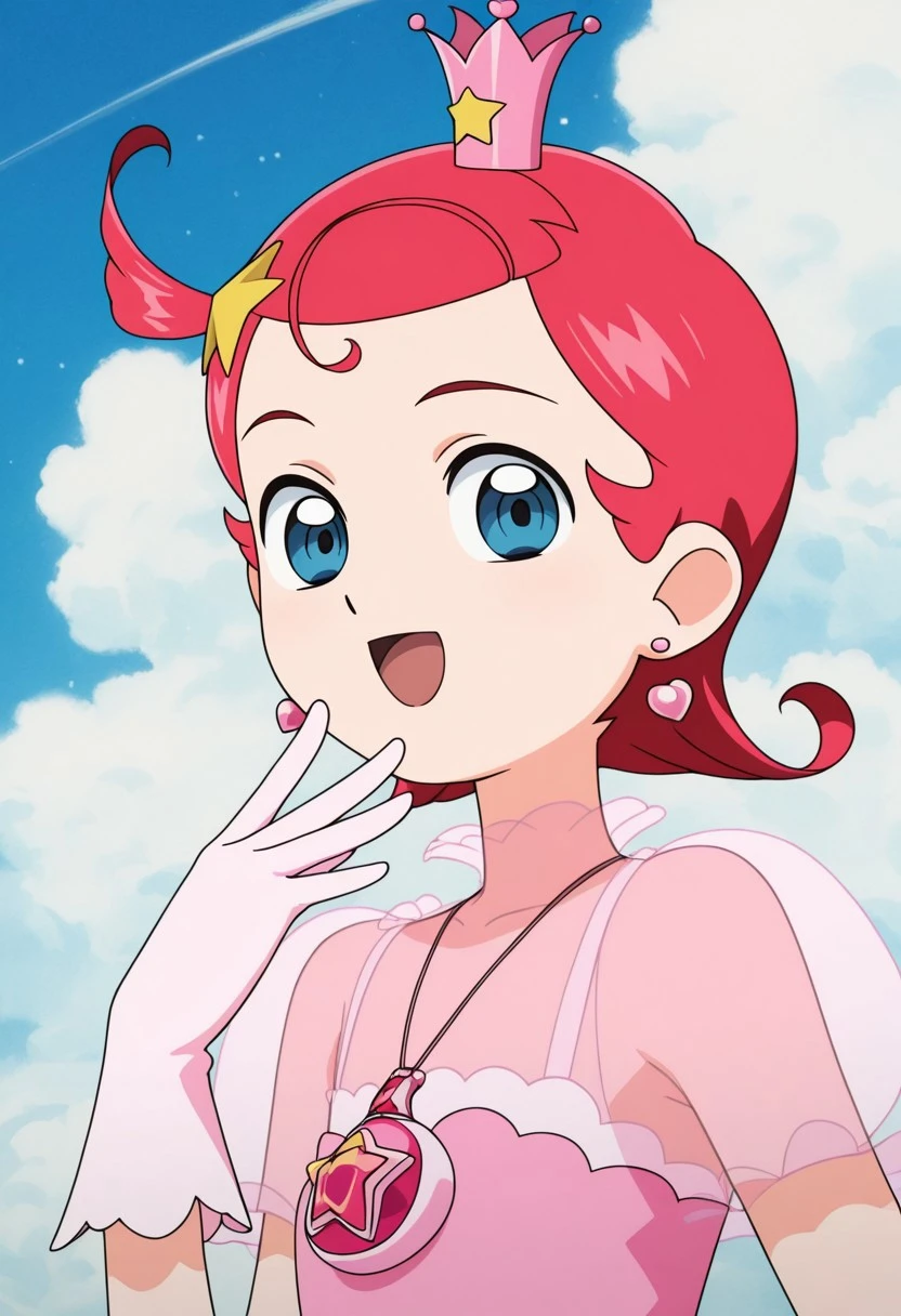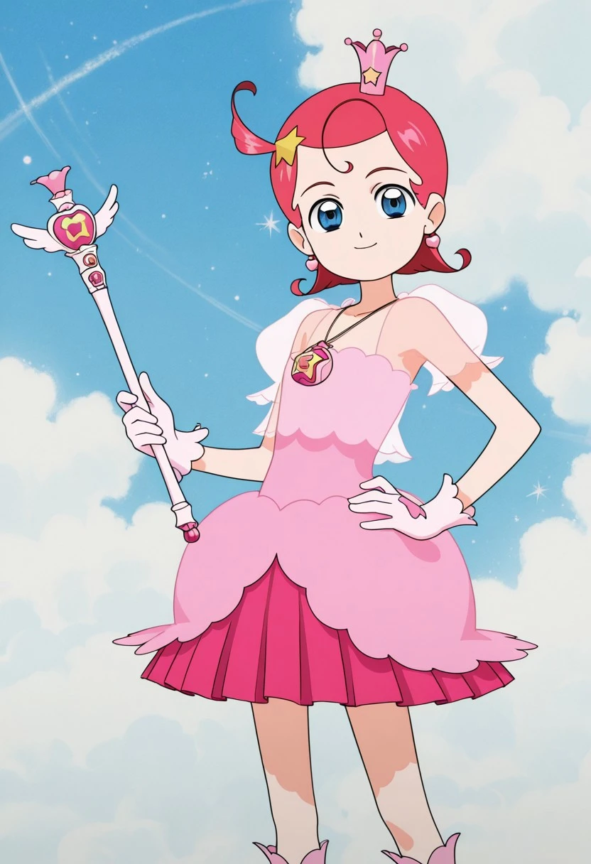 ① magical girl, mini crown, earrings, jewelry,star (symbol), necklace, pendant, dress, see-through, gloves, wand, boots,tutu