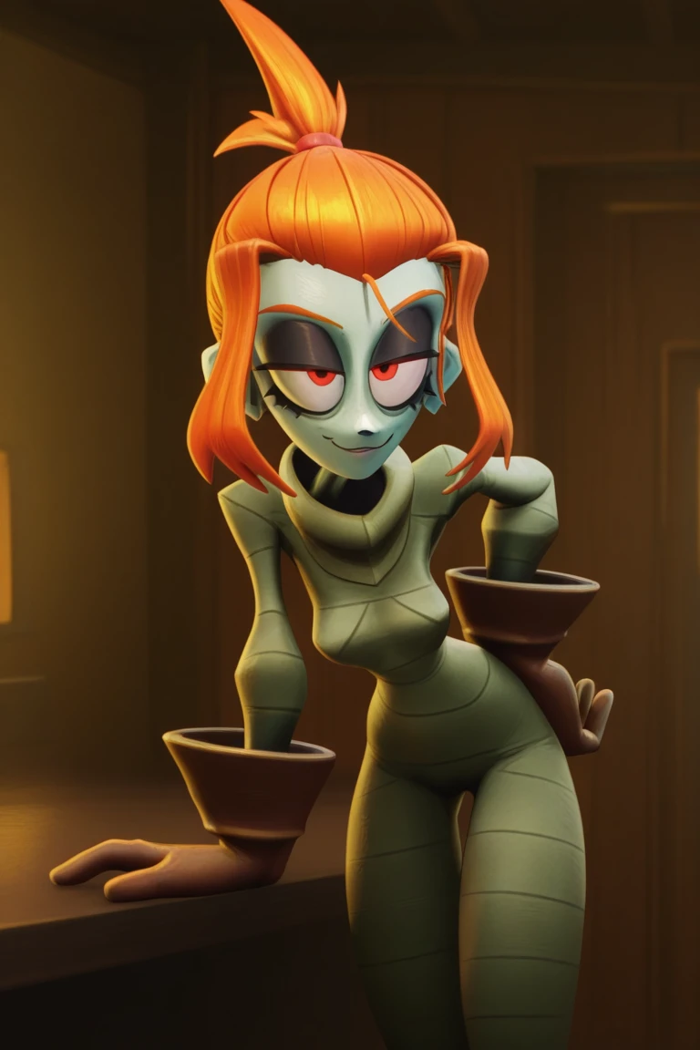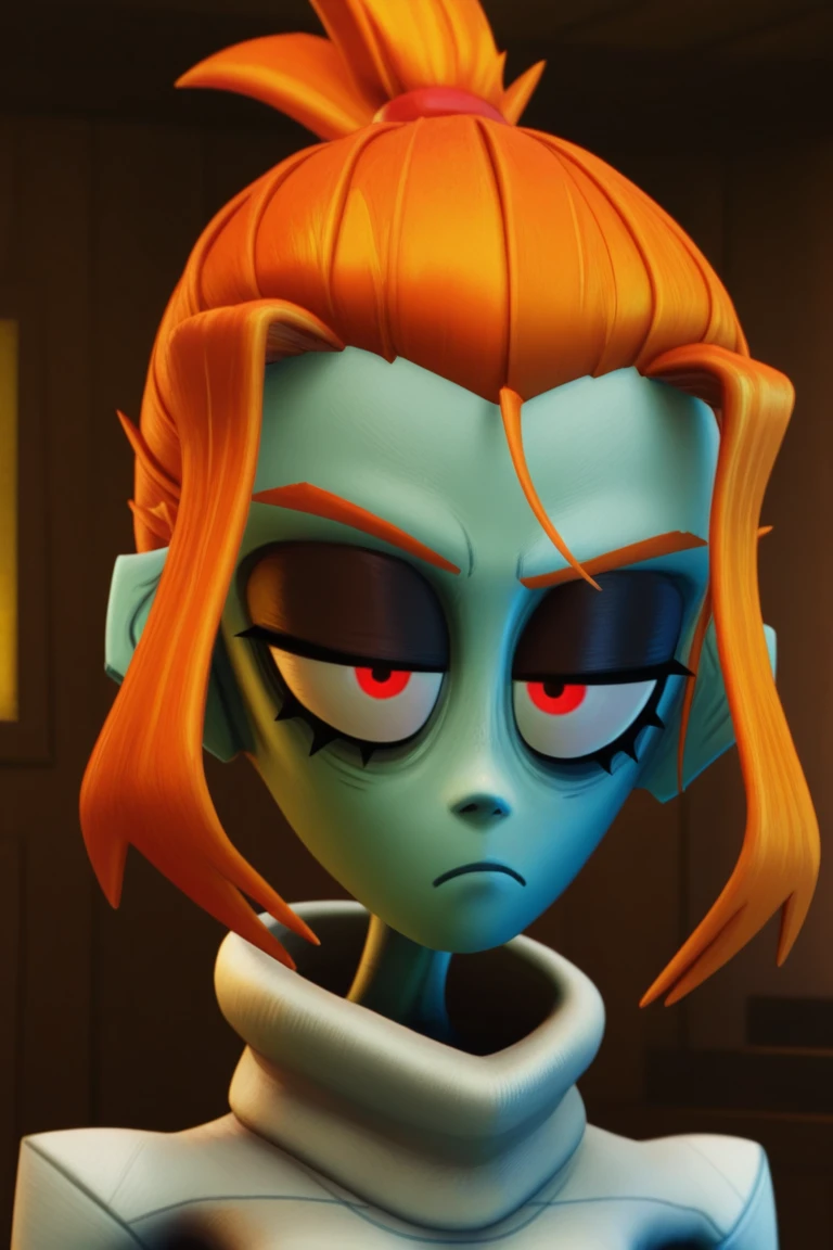 m_h1llMT, orange hair, ponytail, red eyes, colored skin
