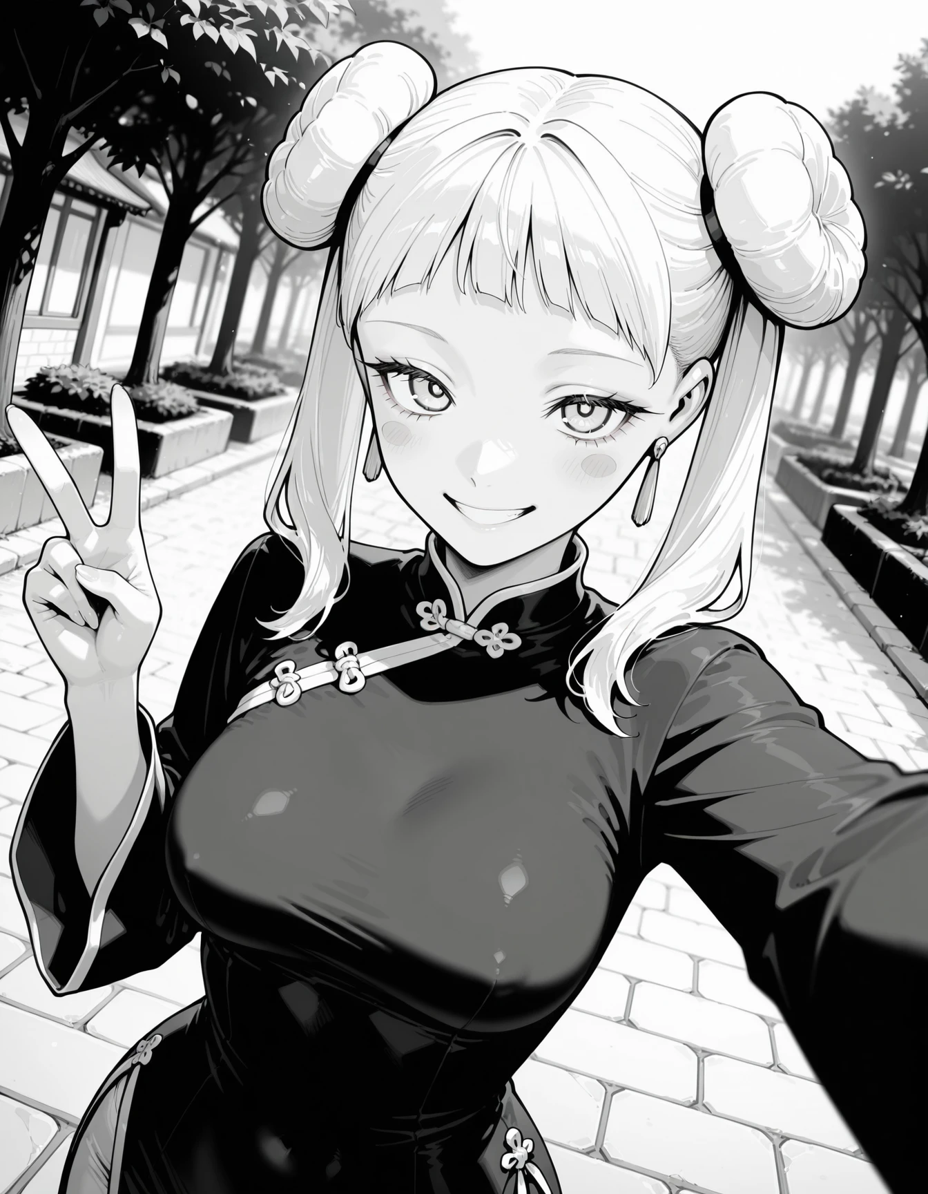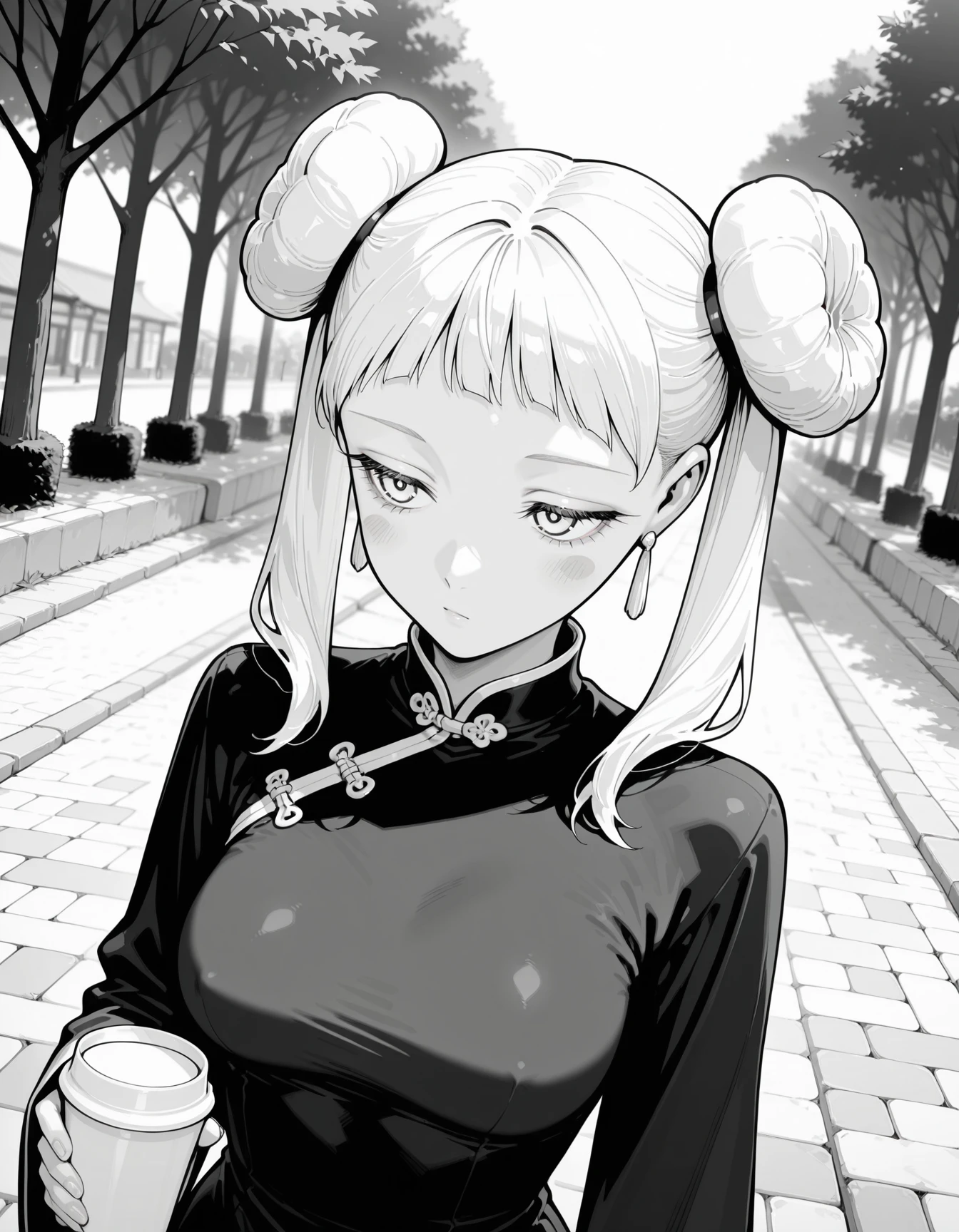 miyakuni, twintails, medium hair, double bun, blush stickers, eyelashes,