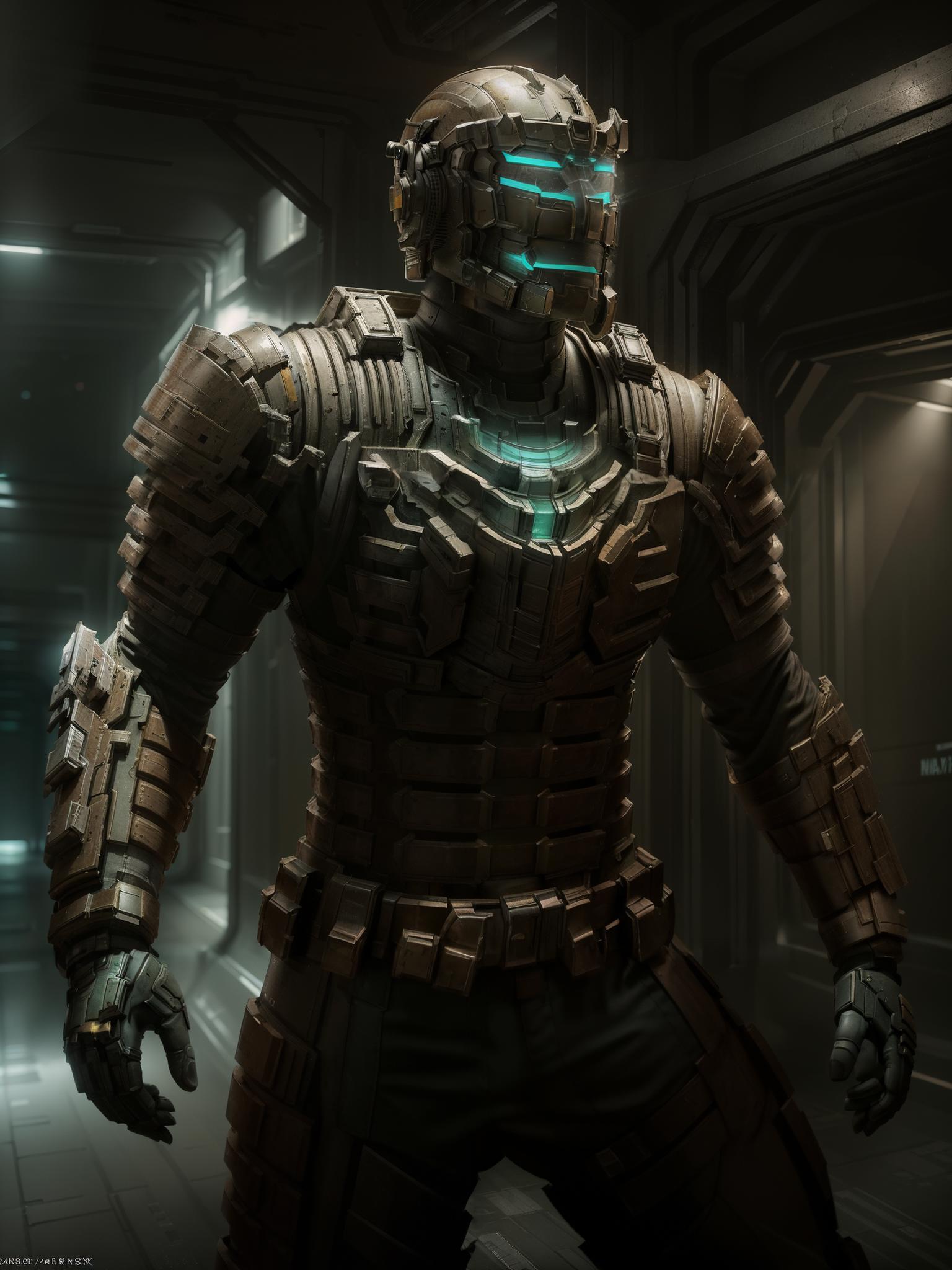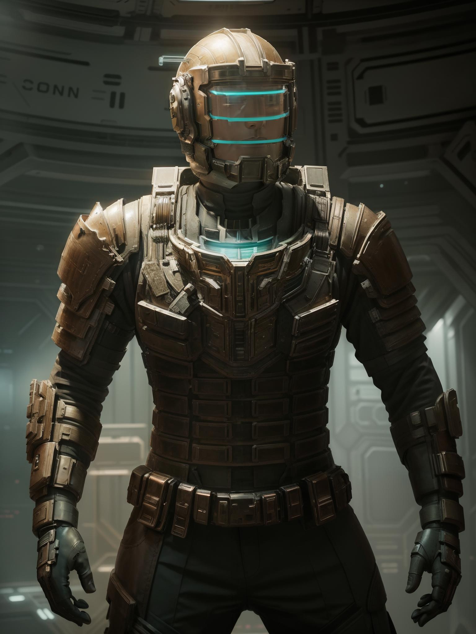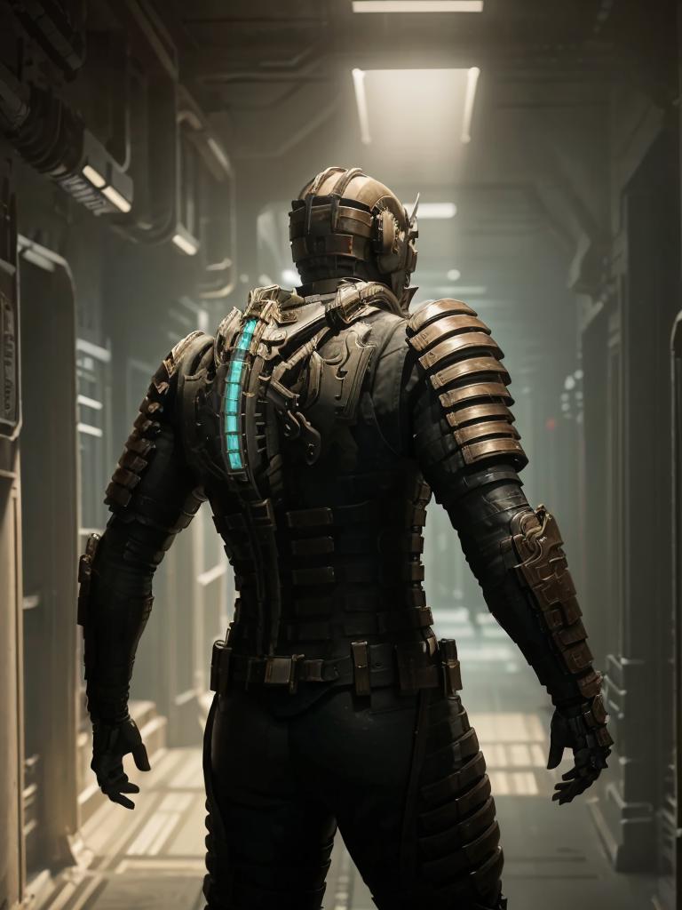 Example promts; a man wearing engineeringsuit and standing in a corridor / full body of a man wearing engineeringsuit and standing in a space station.
