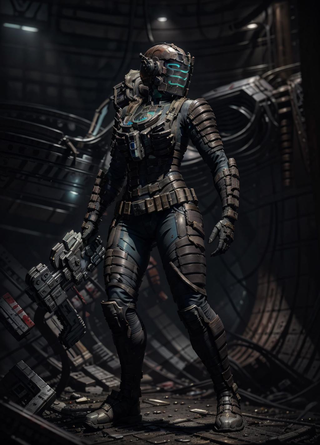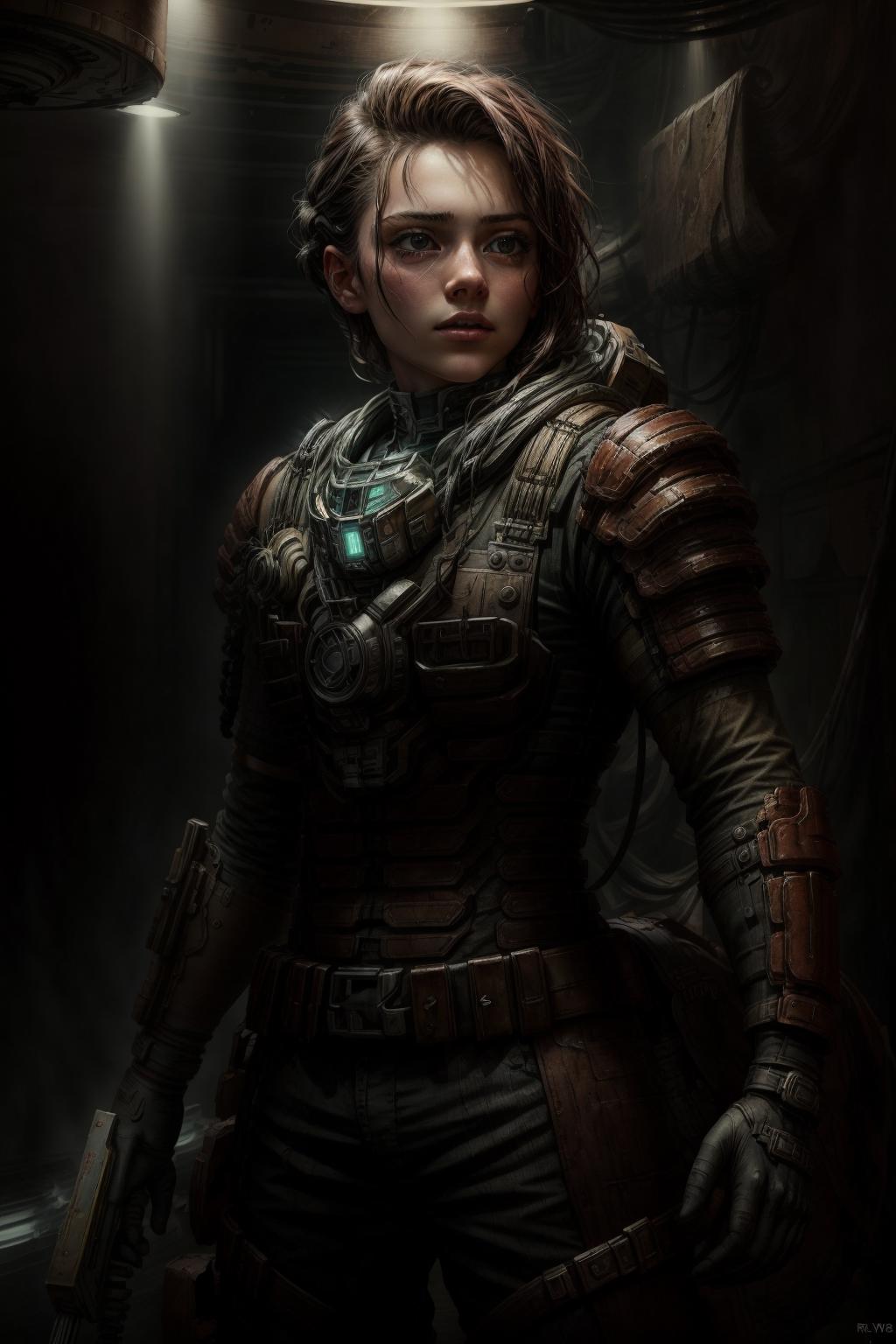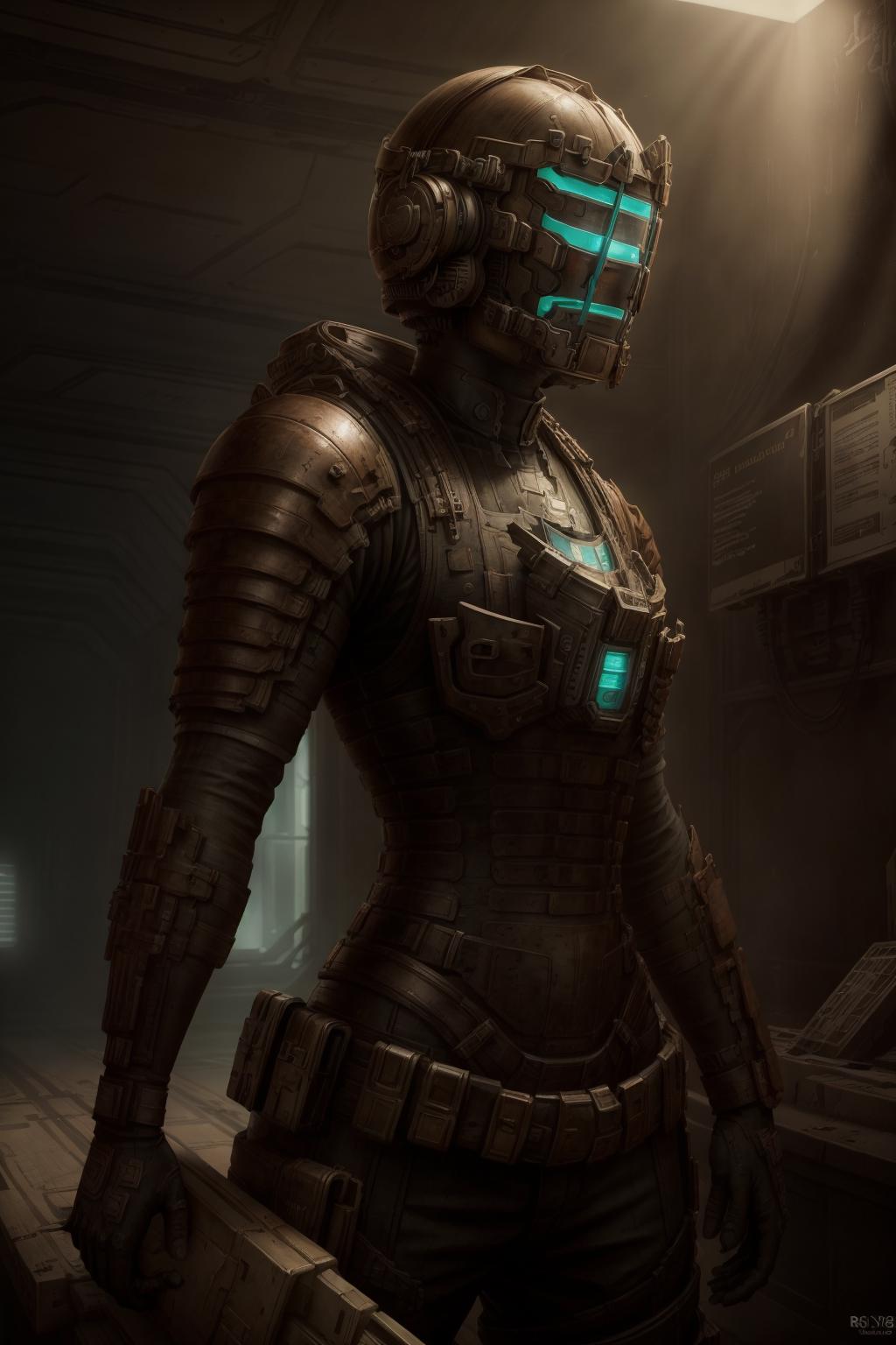 Example promts; a man wearing engineeringsuit and standing in a corridor / full body of a man wearing engineeringsuit and standing in a space station.