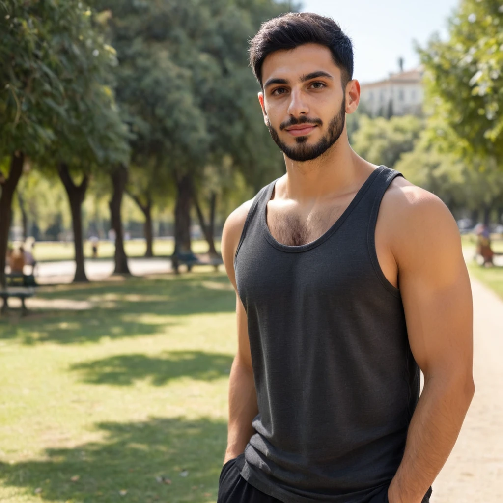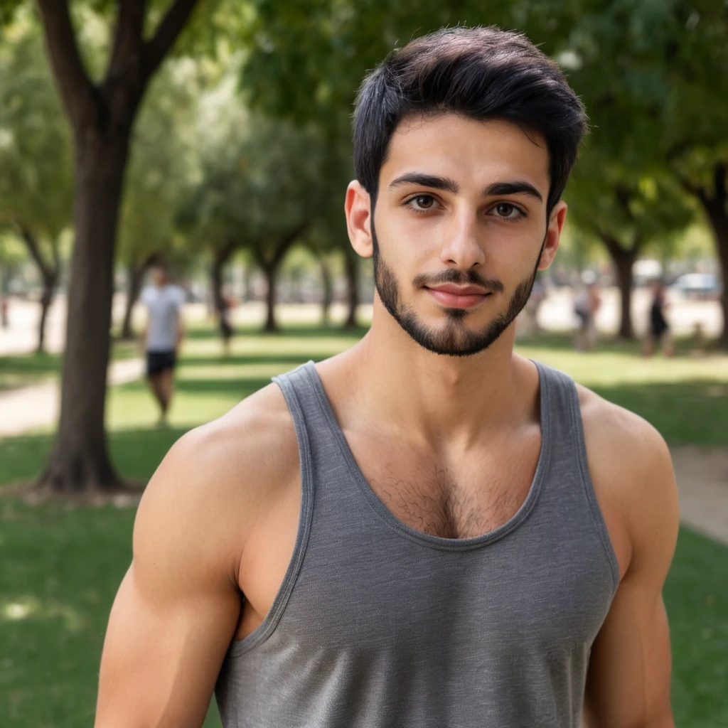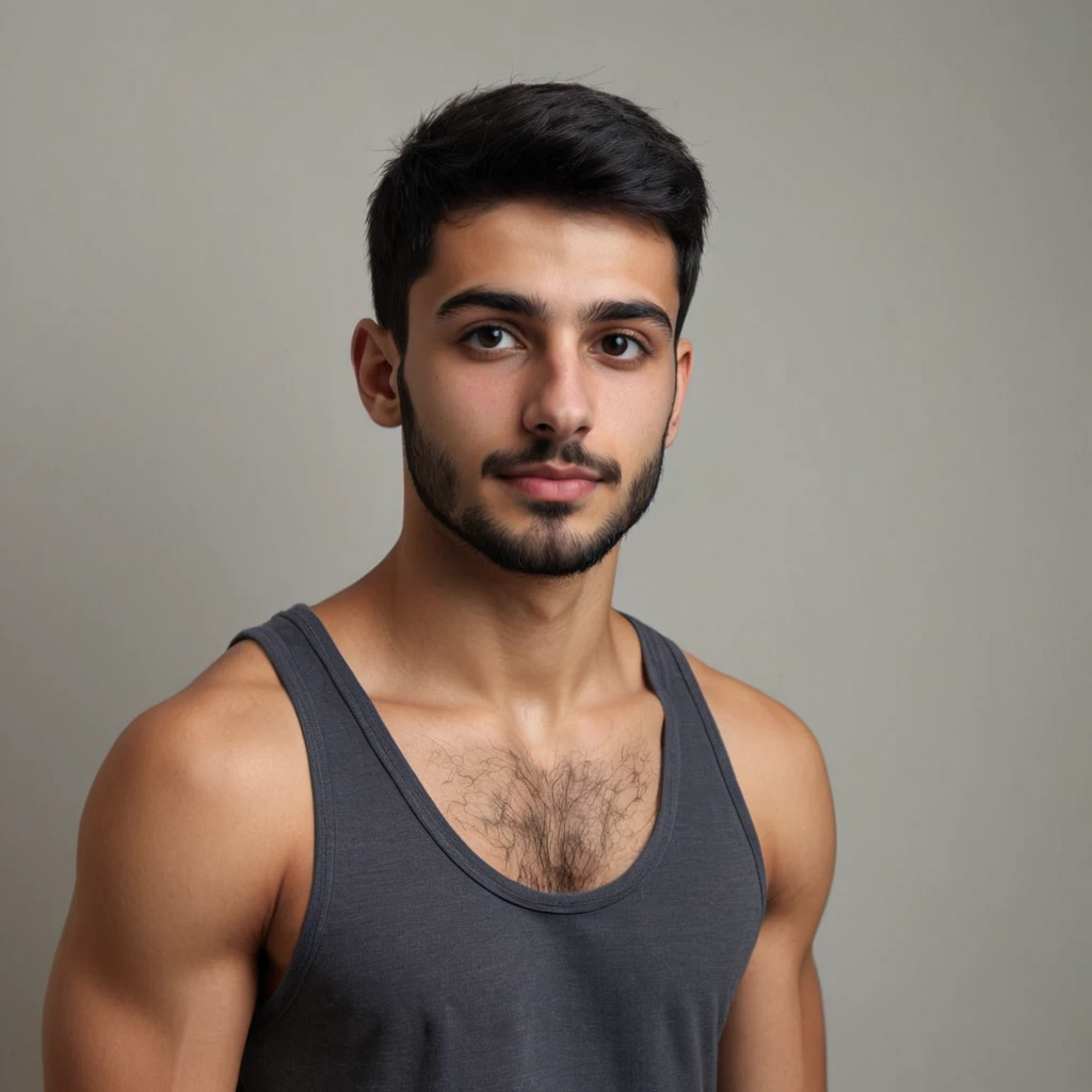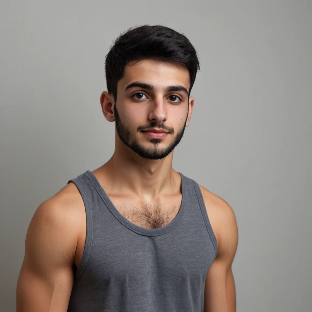 Prompt: A young 24-year-old Indian man with short black hair and a small black beard is wearing a red shirt.