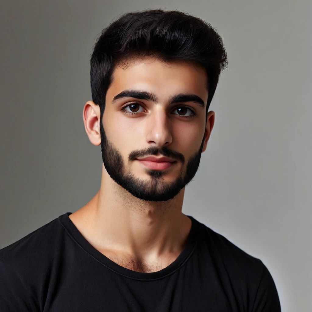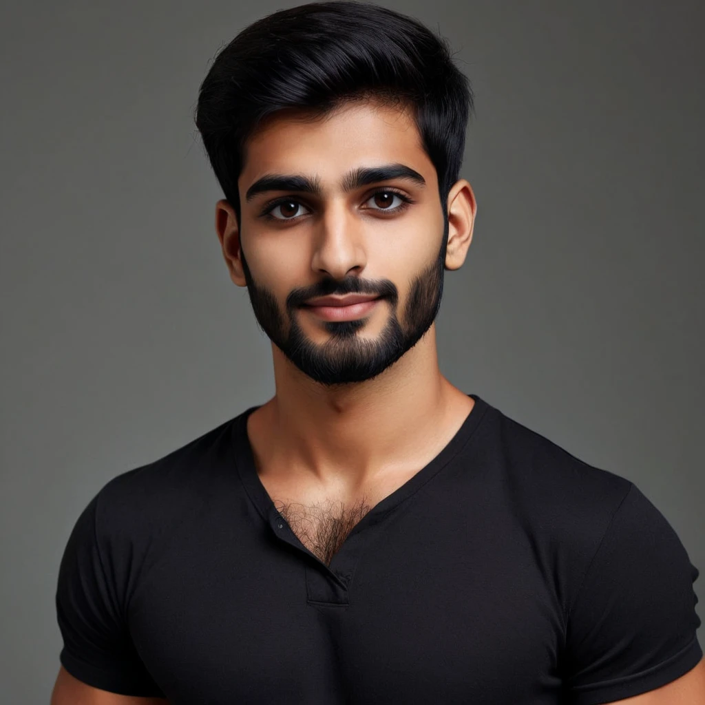 Prompt: A young 24-year-old Indian man with short black hair and a small black beard is wearing a red shirt. <lora:Dall-E_3_Male_LoRA:1>