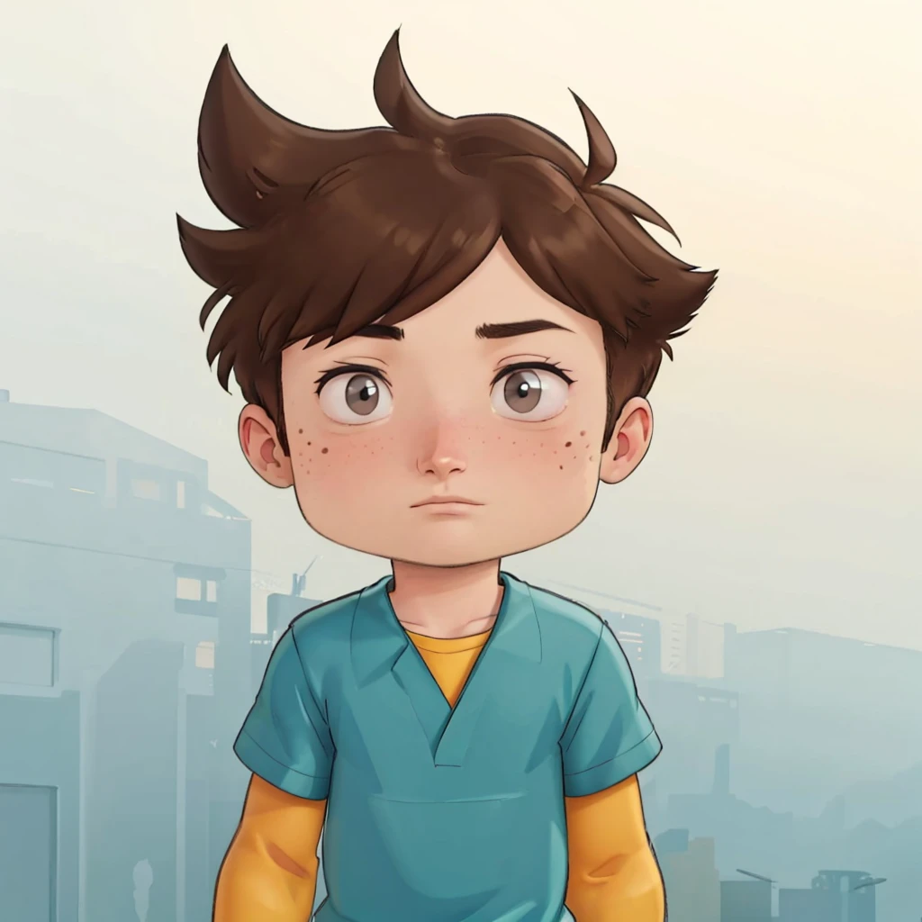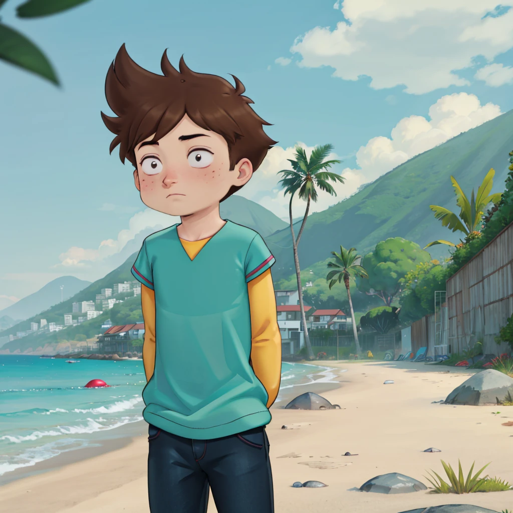 solo , 1boy, jay smufton, brown hair, short hair, shirt, layered shirt, freckles, black eyes,