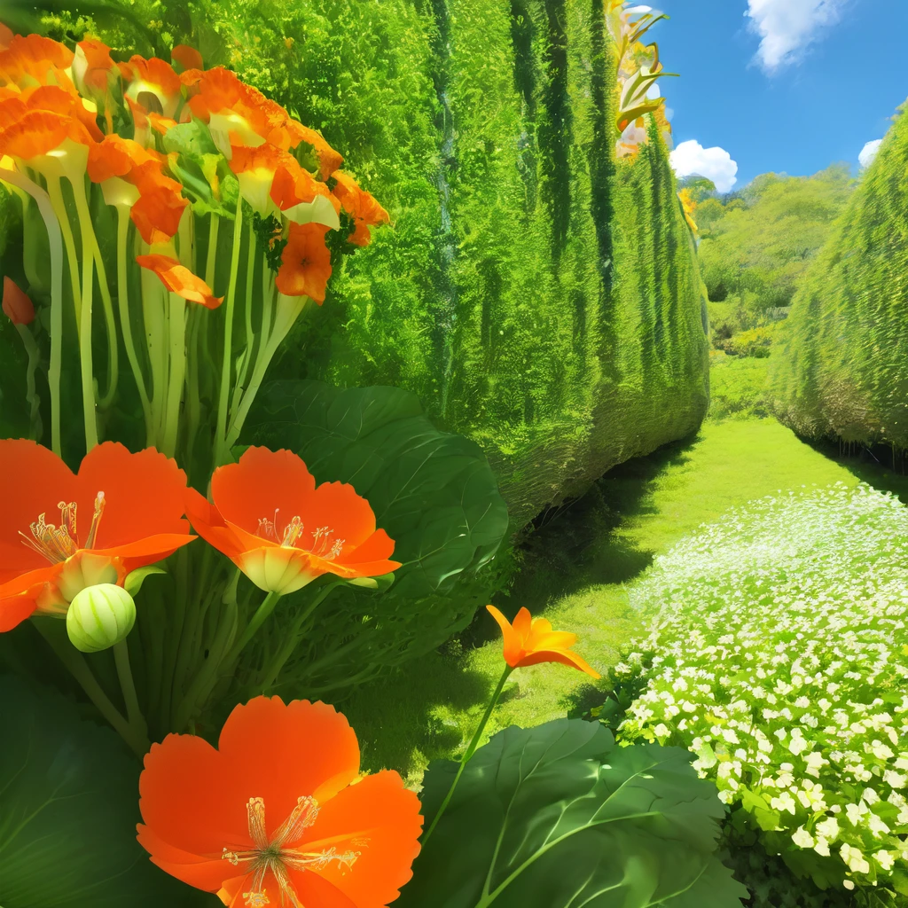 Mega flora - gets a "Worm eye view" perspective or makes plants giant.