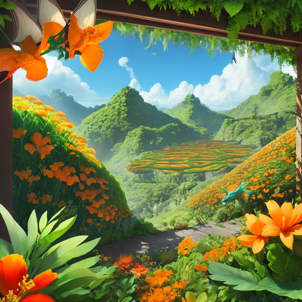 Orange flowers - Very strong keyword tends to make everything orange and green but its the one that works the best.