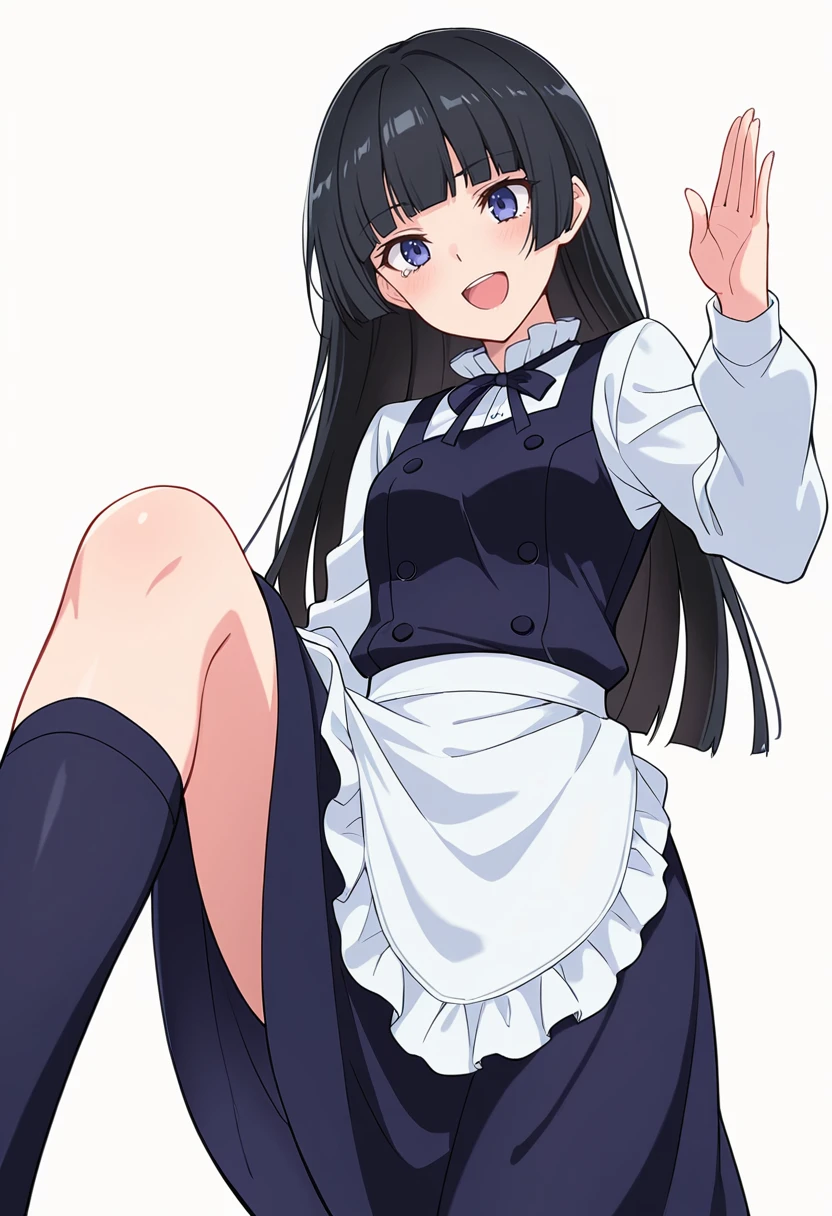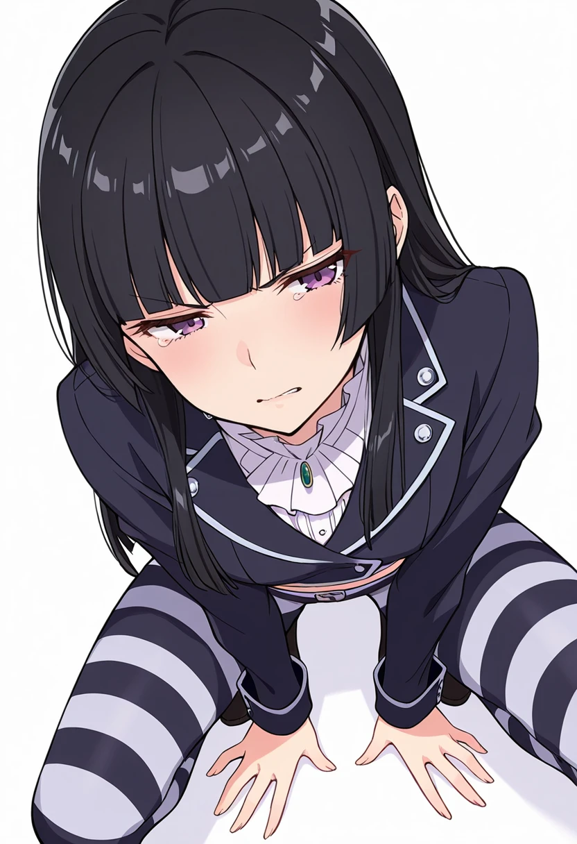 miyabi_cnr, 1girl, black hair, long hair, hime cut,blunt bangs,👗Default Outfit