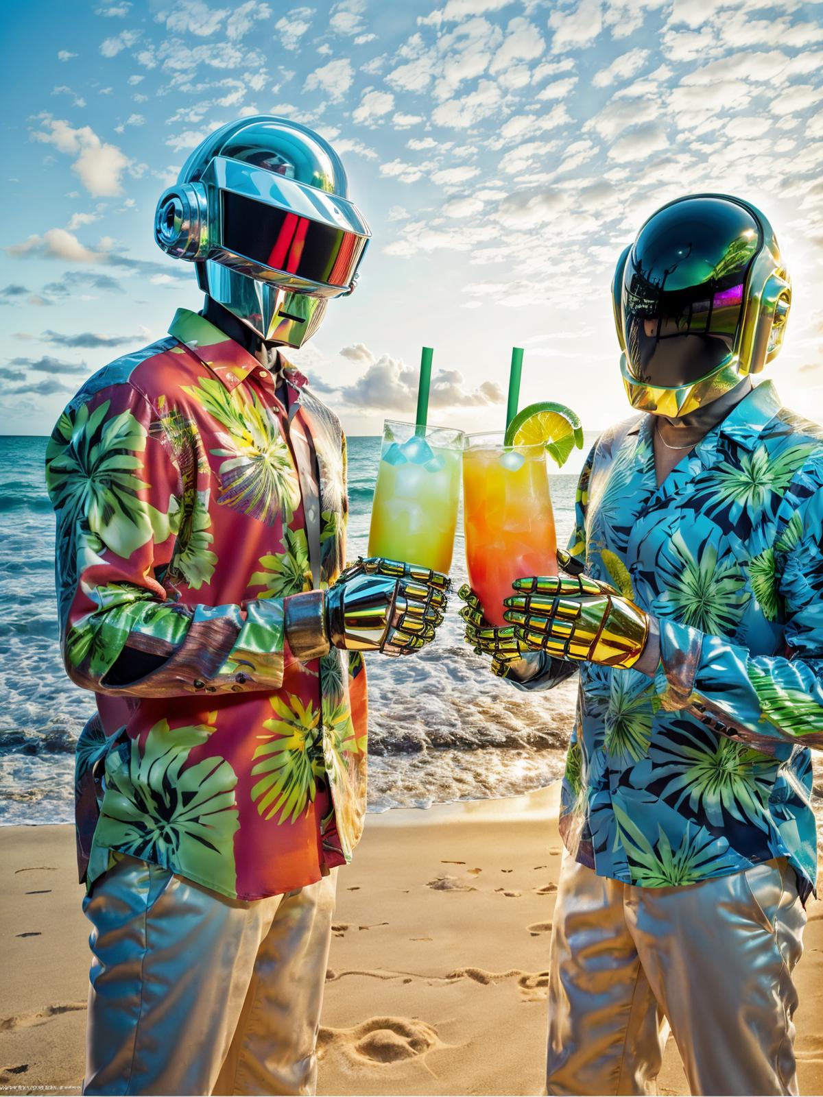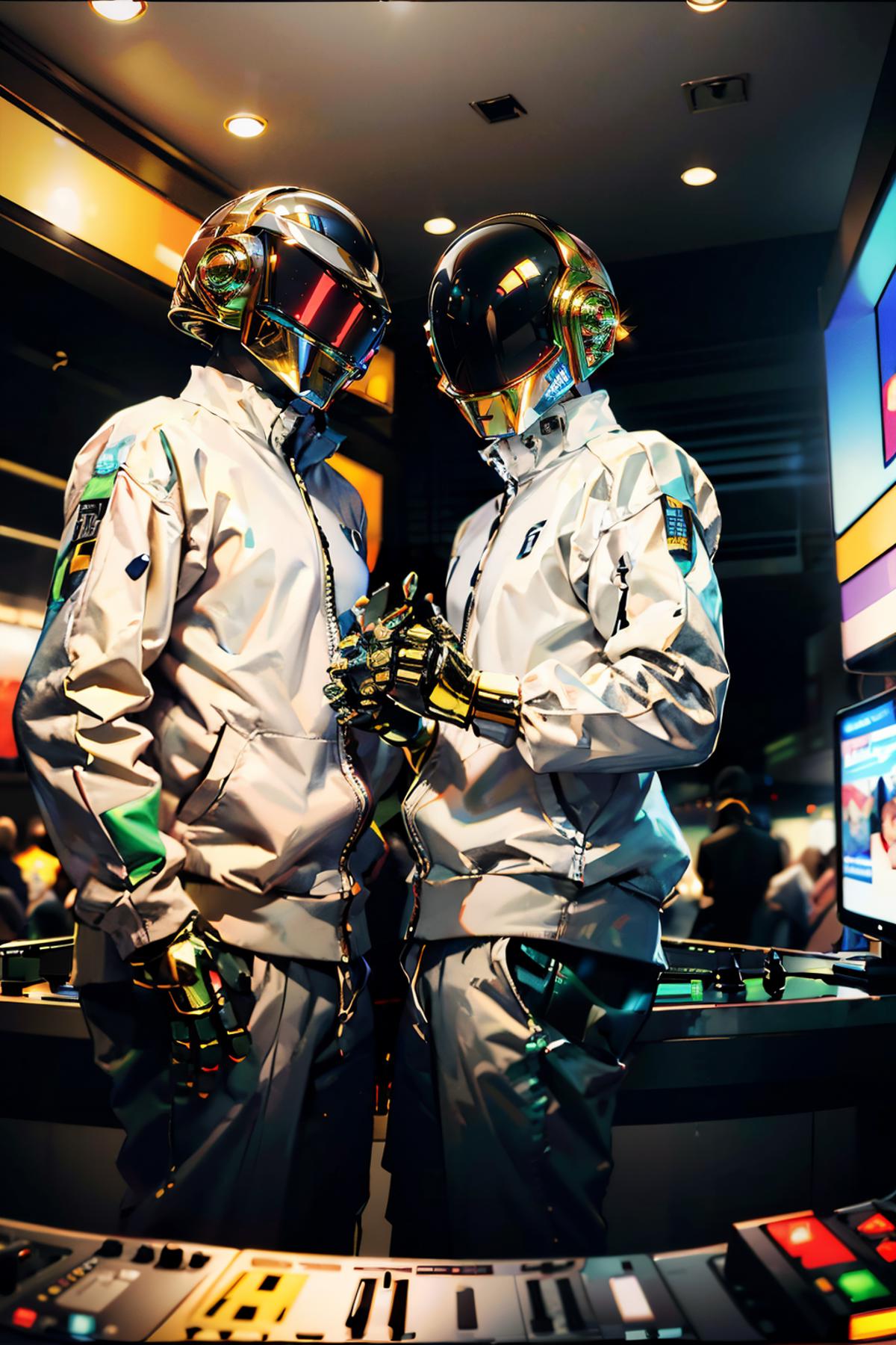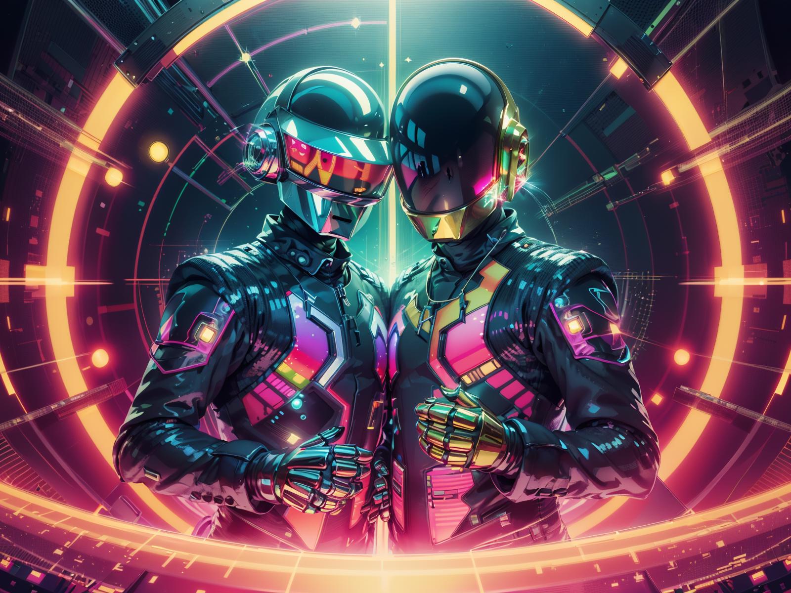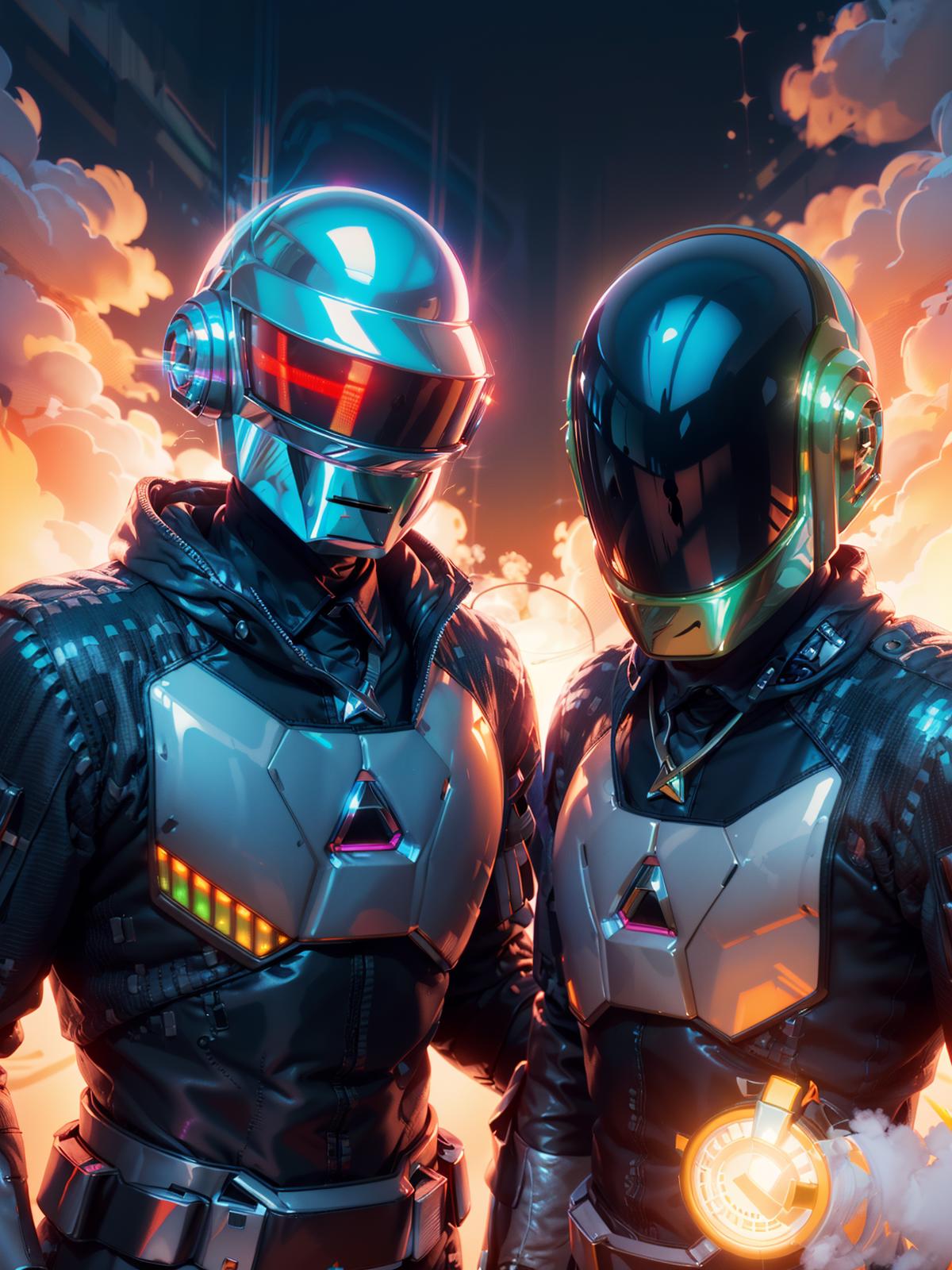 Use "daft punk" as your keyword, this will create either one or both of them. For both of them, I recommend adding "guyman and thomasb of daft punk" and "two men wearing helmets" to get both of them.
