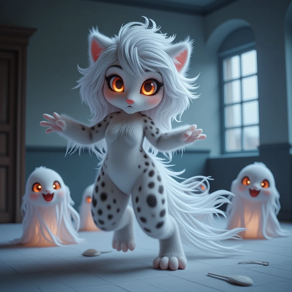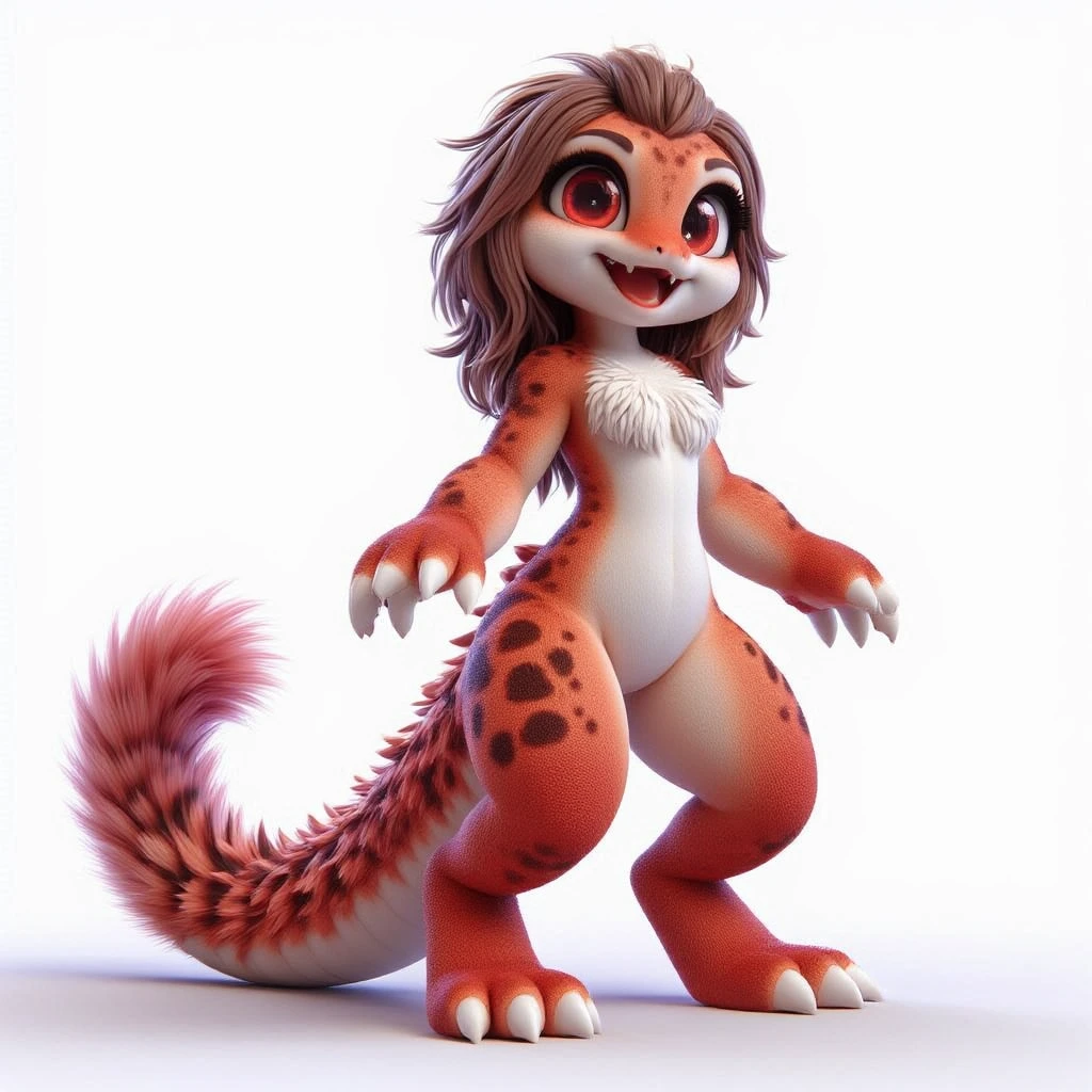 Example prompt: [baby/young/adult] anthro [animal type] with hyper realistic features, humanoid species, feminine, full body, [scene/white] background with [objects}, dynamic pose, digitagrade, fangs