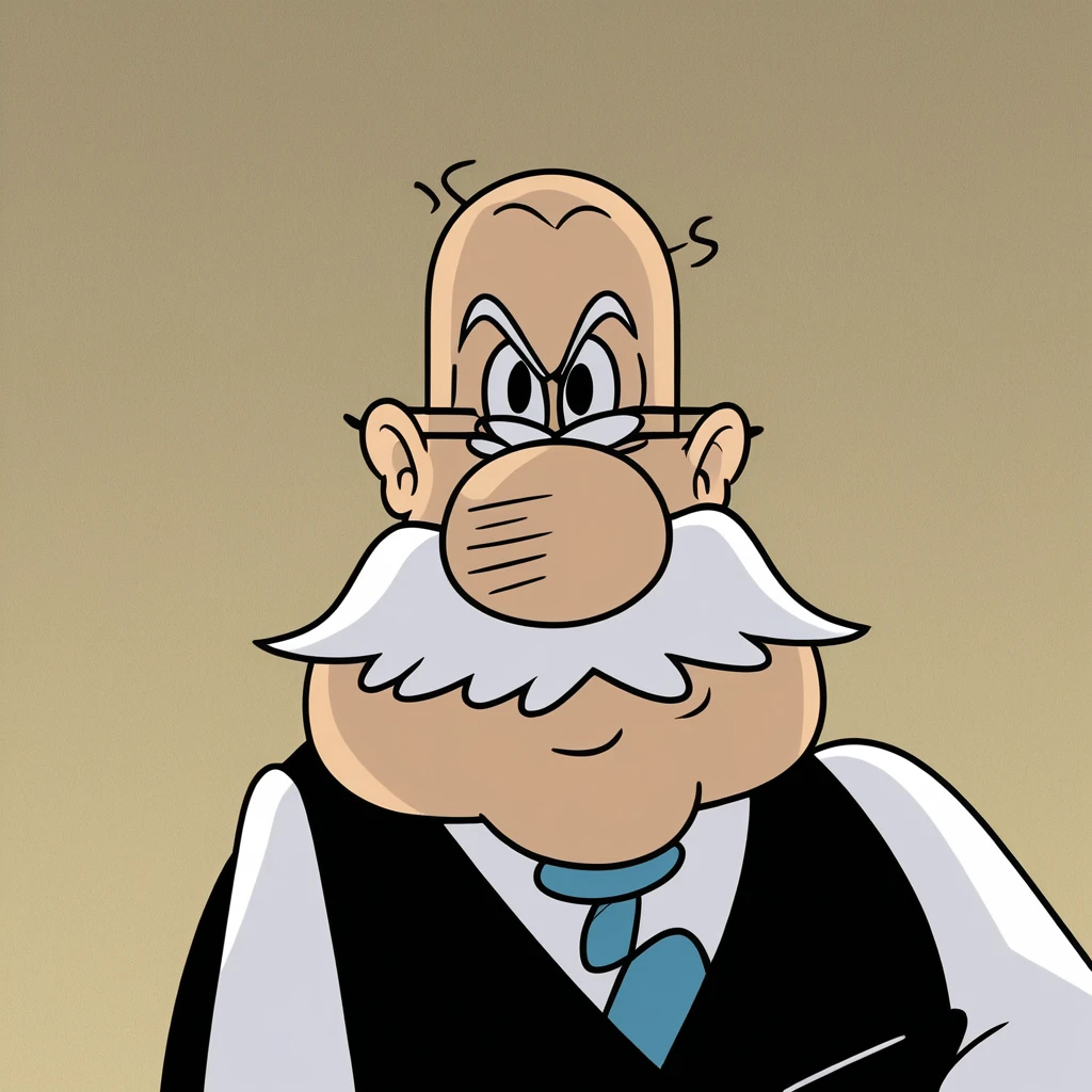 MrGrouse , 1boy, solo, bald , black eyes, mustache, glasses,