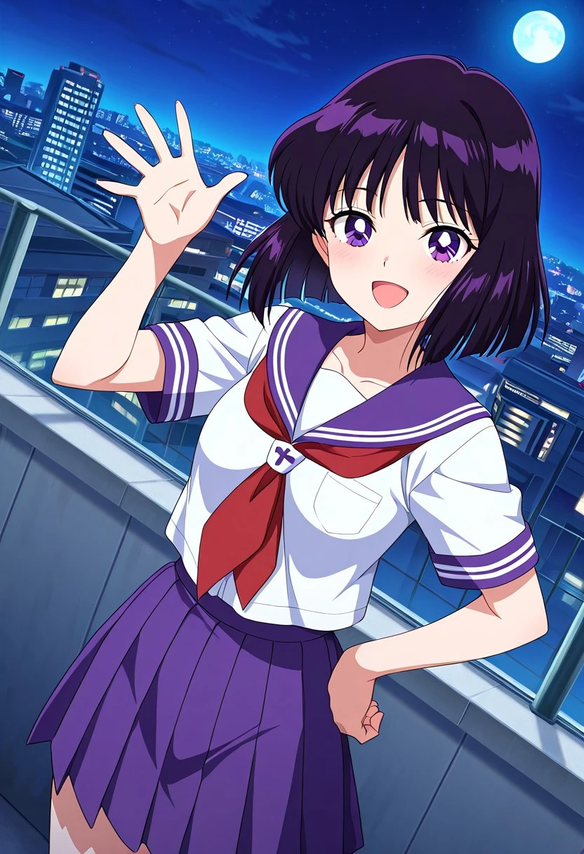 Hotaru Tomoe,dark purple hair, short_hair, purple_eyes, huge_breasts,
