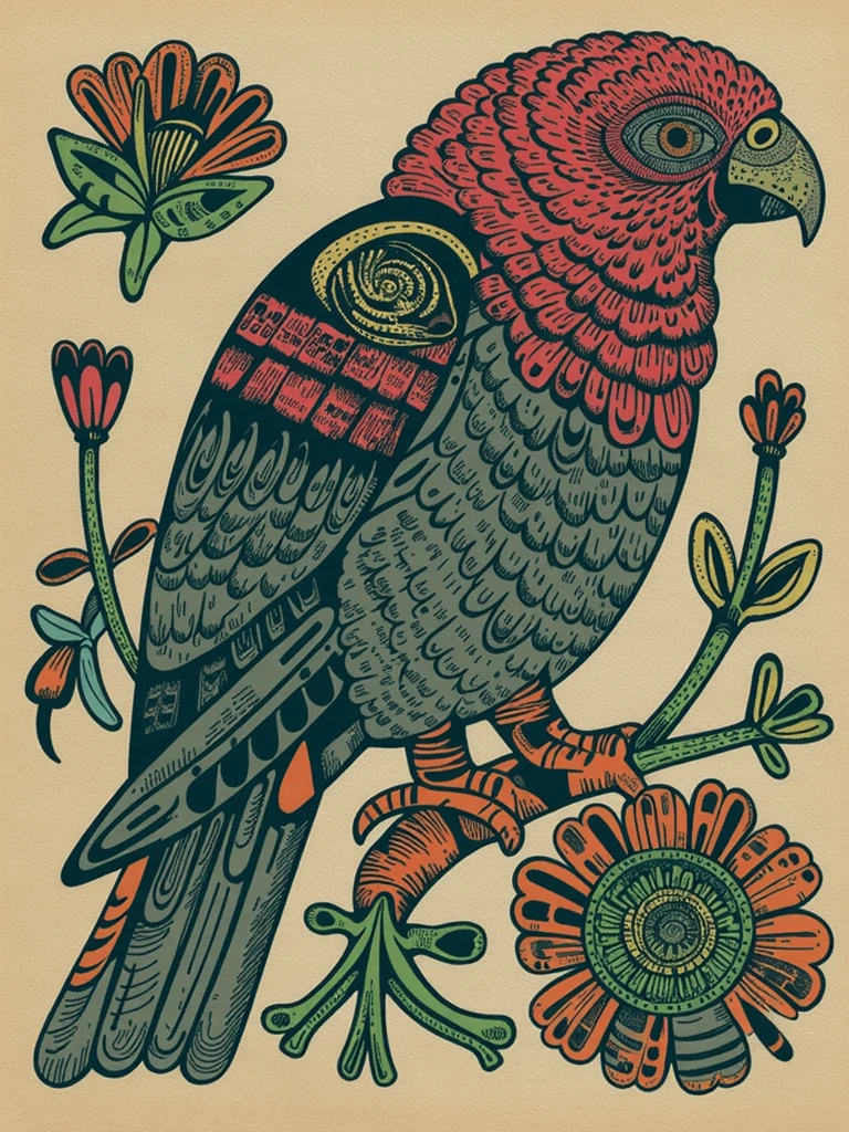 Mexican folk-art meets comic illustration. Great with hand-lettering, mesoamerican mythology, busy posters, florals, animals and faces. Not so great with feet and landscapes.