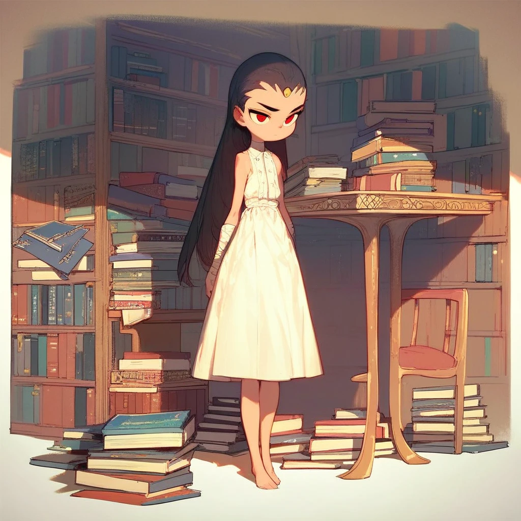 Mimi, 1girl, solo, black hair, long hair, red eyes,