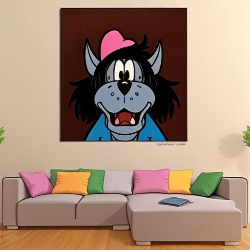 It's a Wolf of the cartoon "Nu, Pogodi! (Well, Just You Wait!)" shows in the save rooms of game The Atomic Heart. The cartoon is a Soviet riff on Tom and Jerry, with the central premise being the Wolf chasing the Hare.