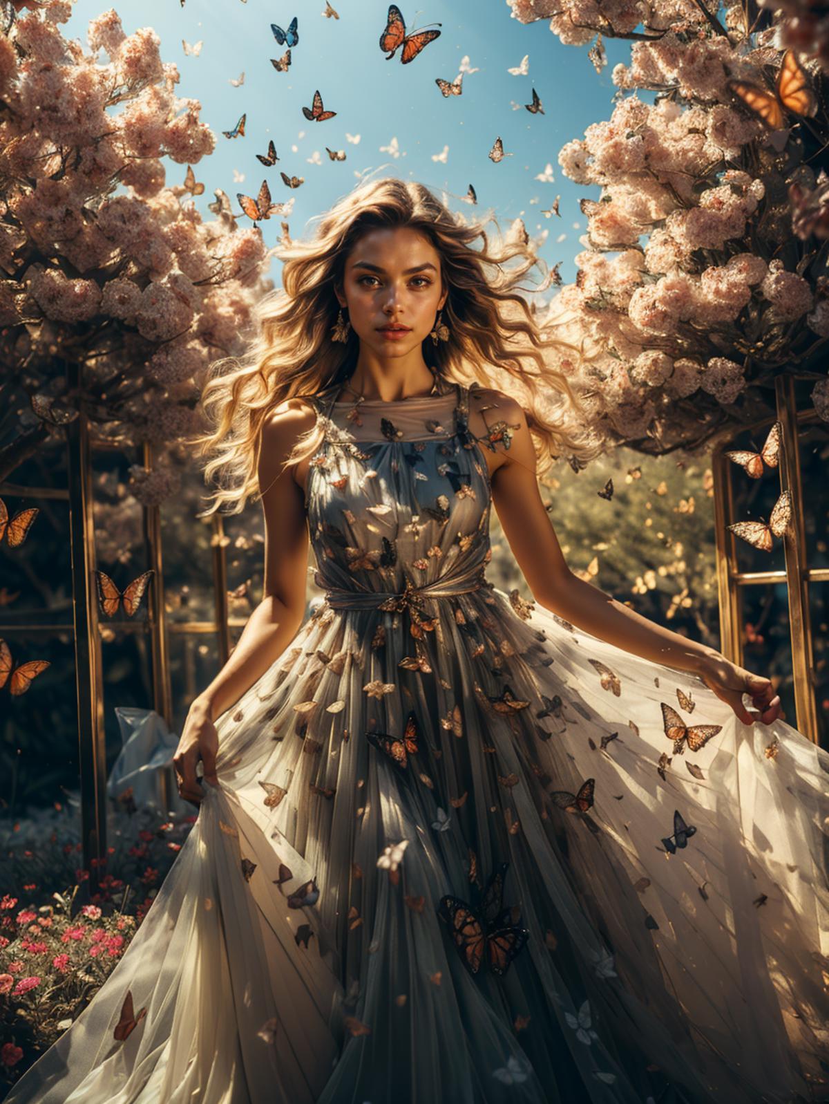 • 模型效果为束光的光效,以及蝴蝶在周围,奇幻的氛围。也可以不打蝴蝶提示词只要光效