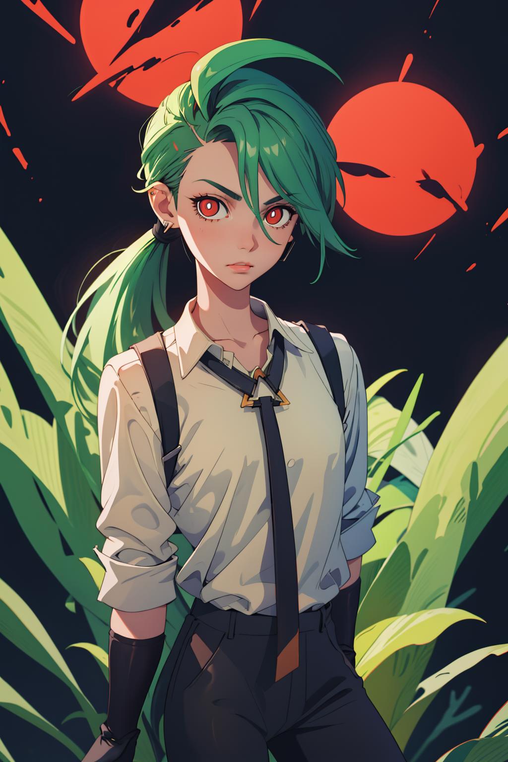 Add green hair and red eyes if necessary.