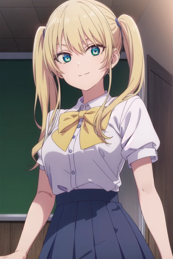 rika hoshizaki, (green eyes:1.3), blonde hair, twintails,