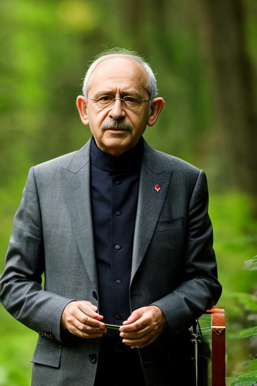 USE "klcdrx person" as a trigger word. You can put a paranthesis and change the value based on how much you want the character to look like Kılıçdaroğlu. If you want more flexibility use lower rates.