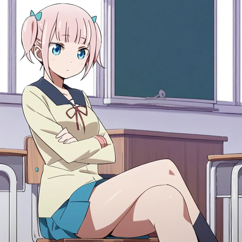 moeha_fujiwara, pink hair, short hair, twintails, blue eyes