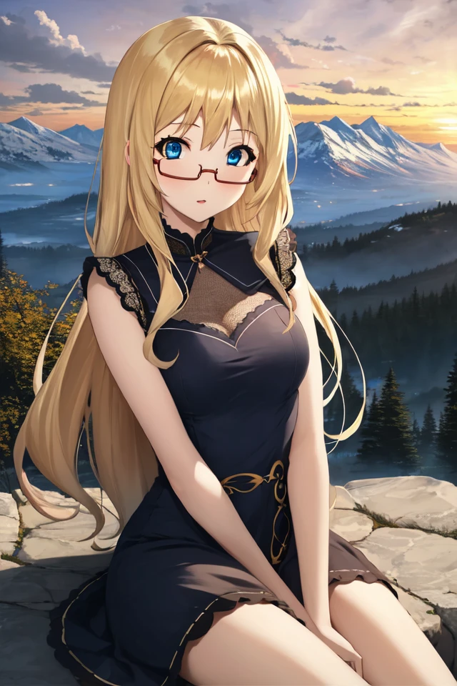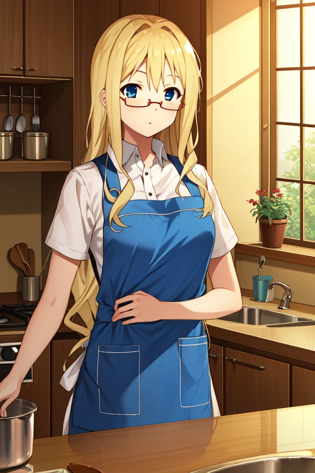 snwfilicia, long hair, blonde hair, glasses, blue eyes, semi-rimless eyewear
