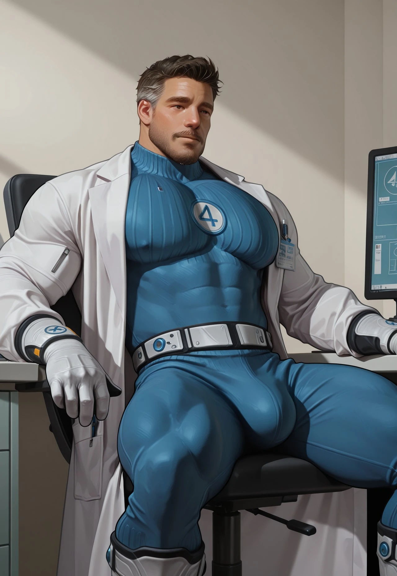 R33D, Facial hair, white gloves, white belt, white boots, blue bodysuit