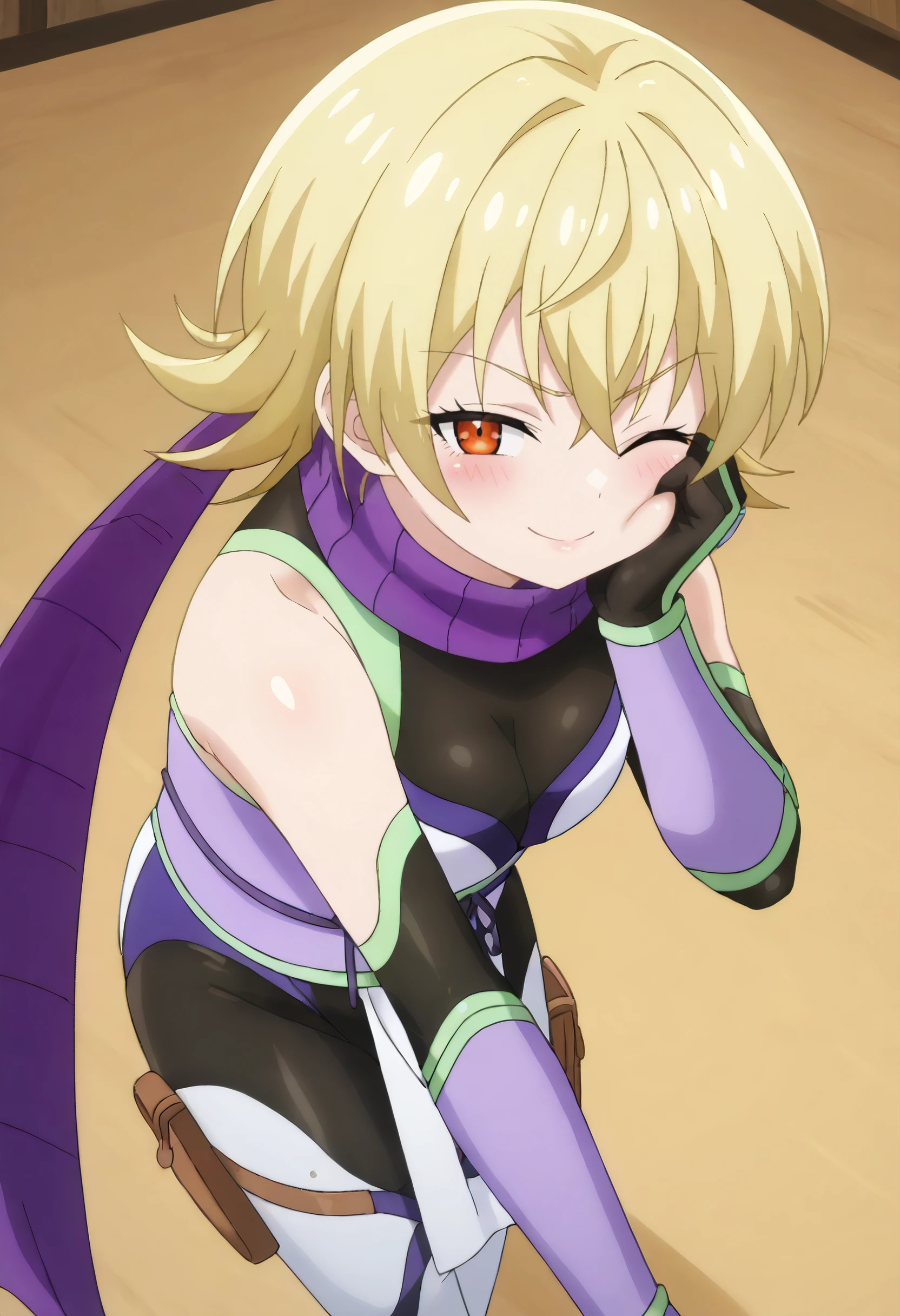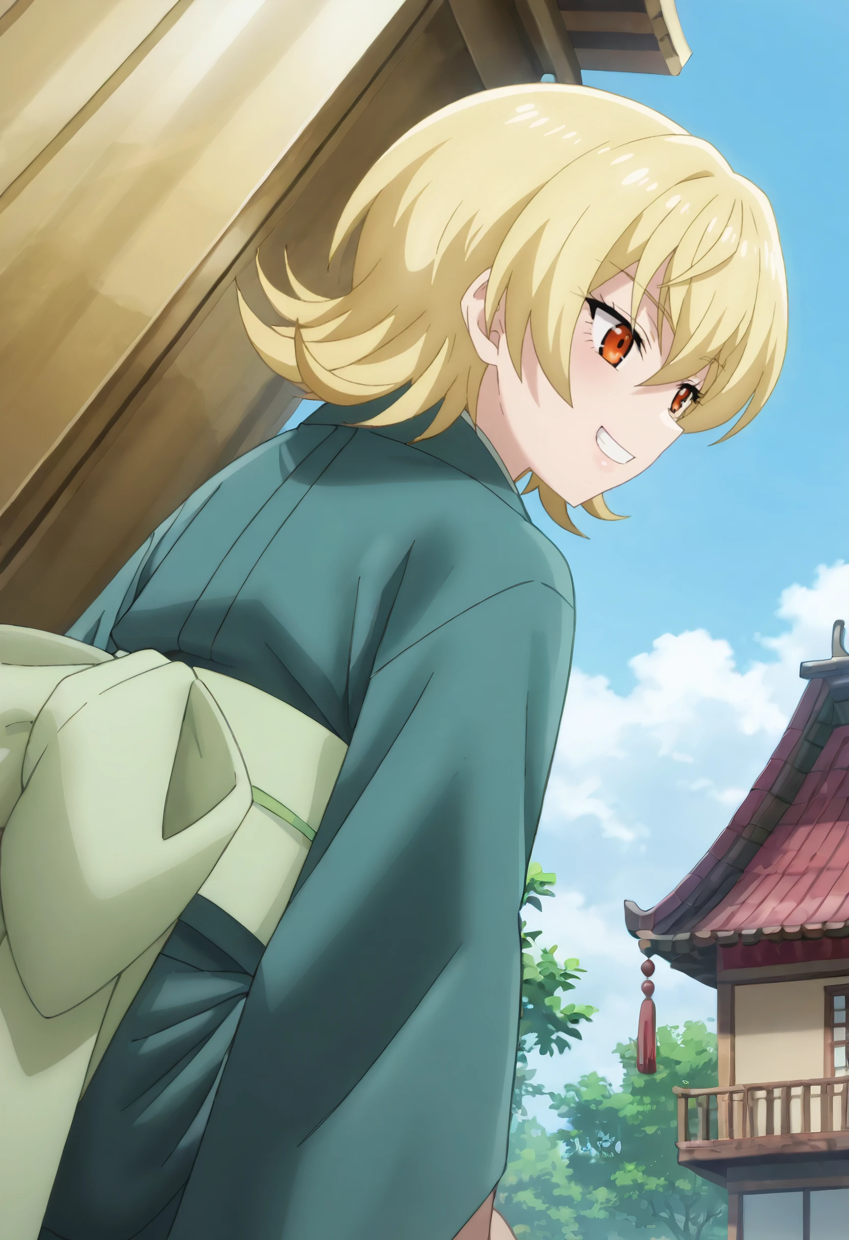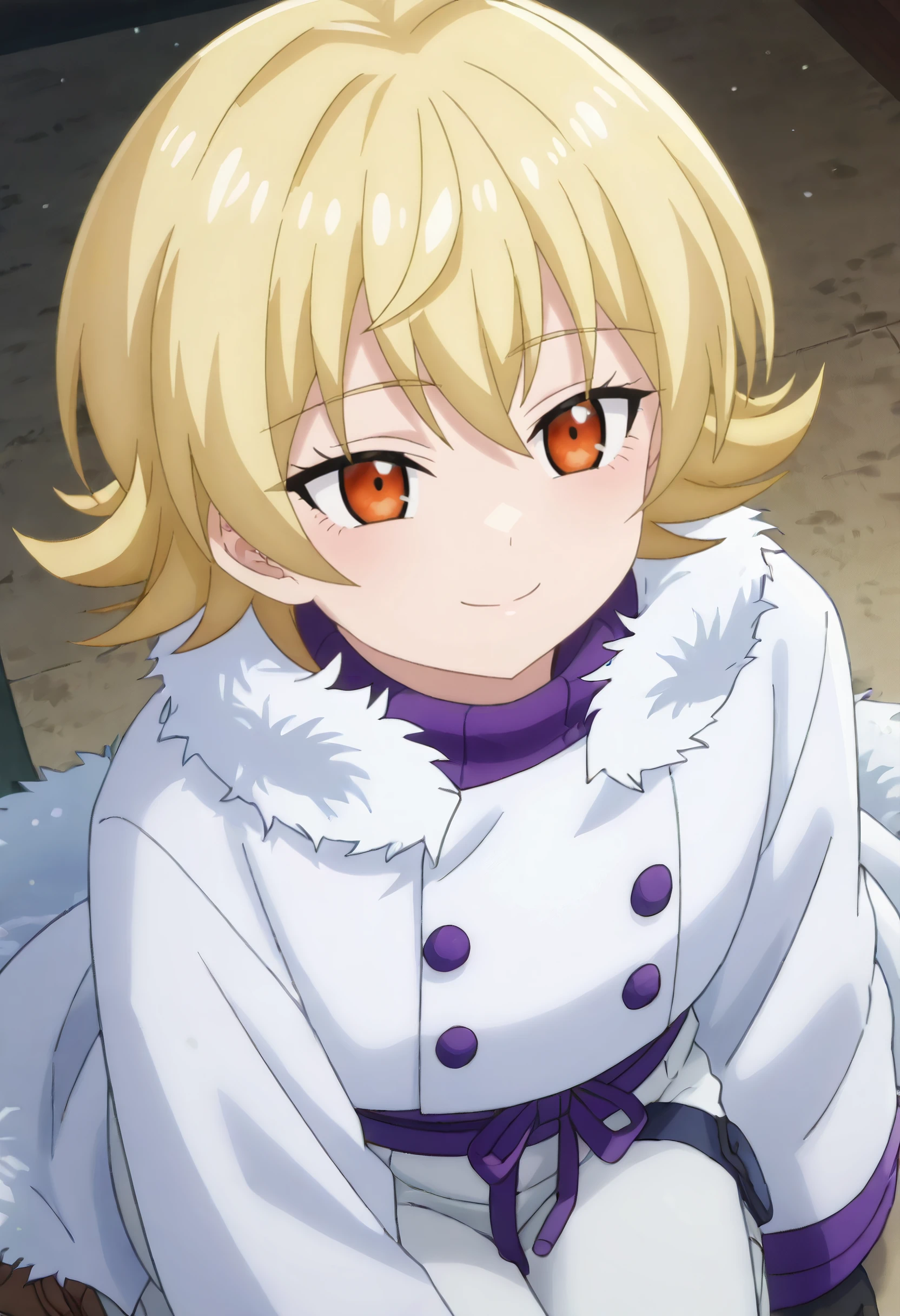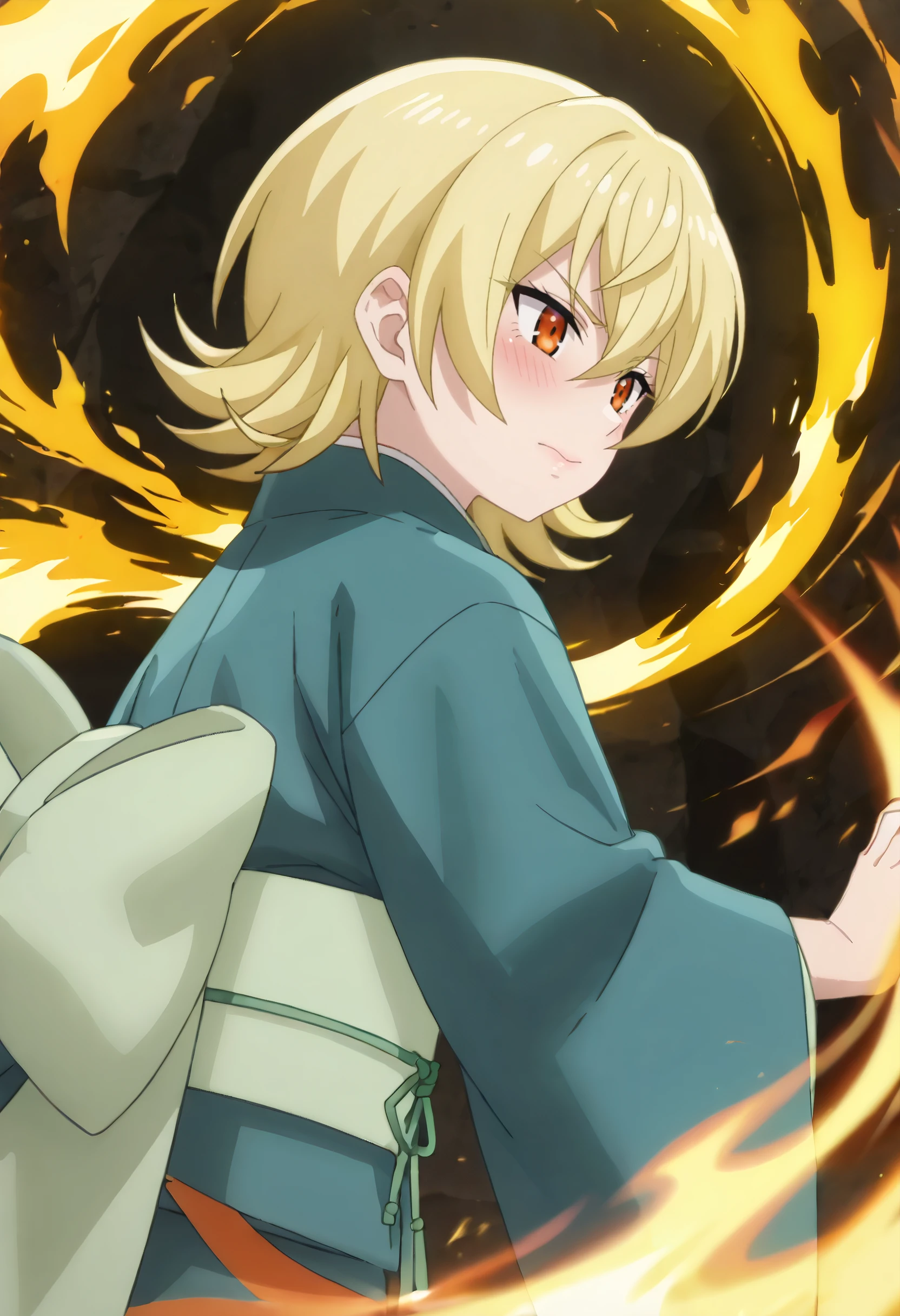 NKTYuzu, blonde hair, short hair, orange eyes, hair between eyes, flipped hair,