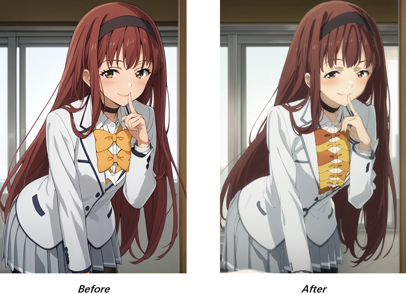 The LoRA is obtained by simply training 30 rounds with 300 images from the animation. The effect will be better when adding it during high-definition restoration.